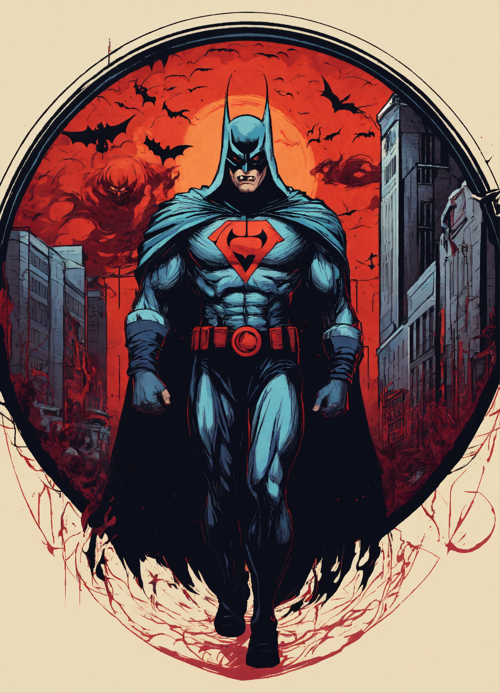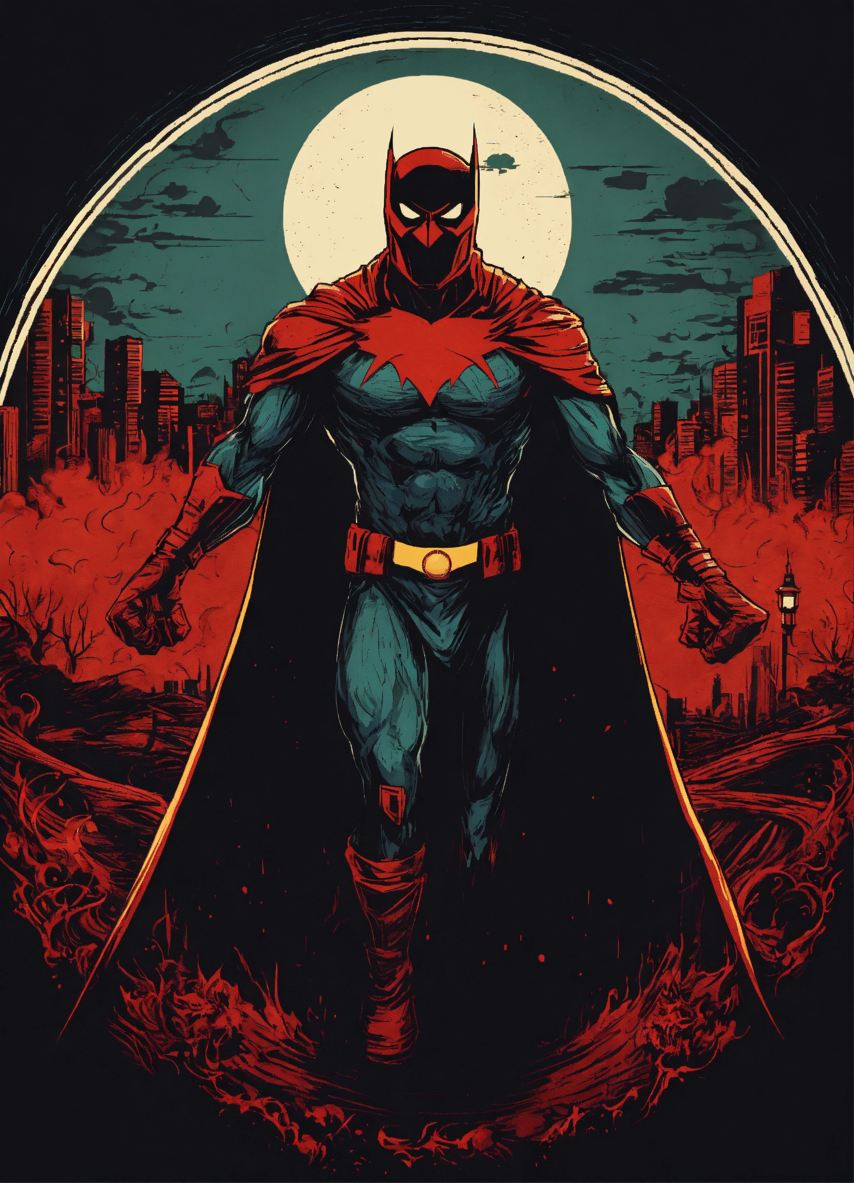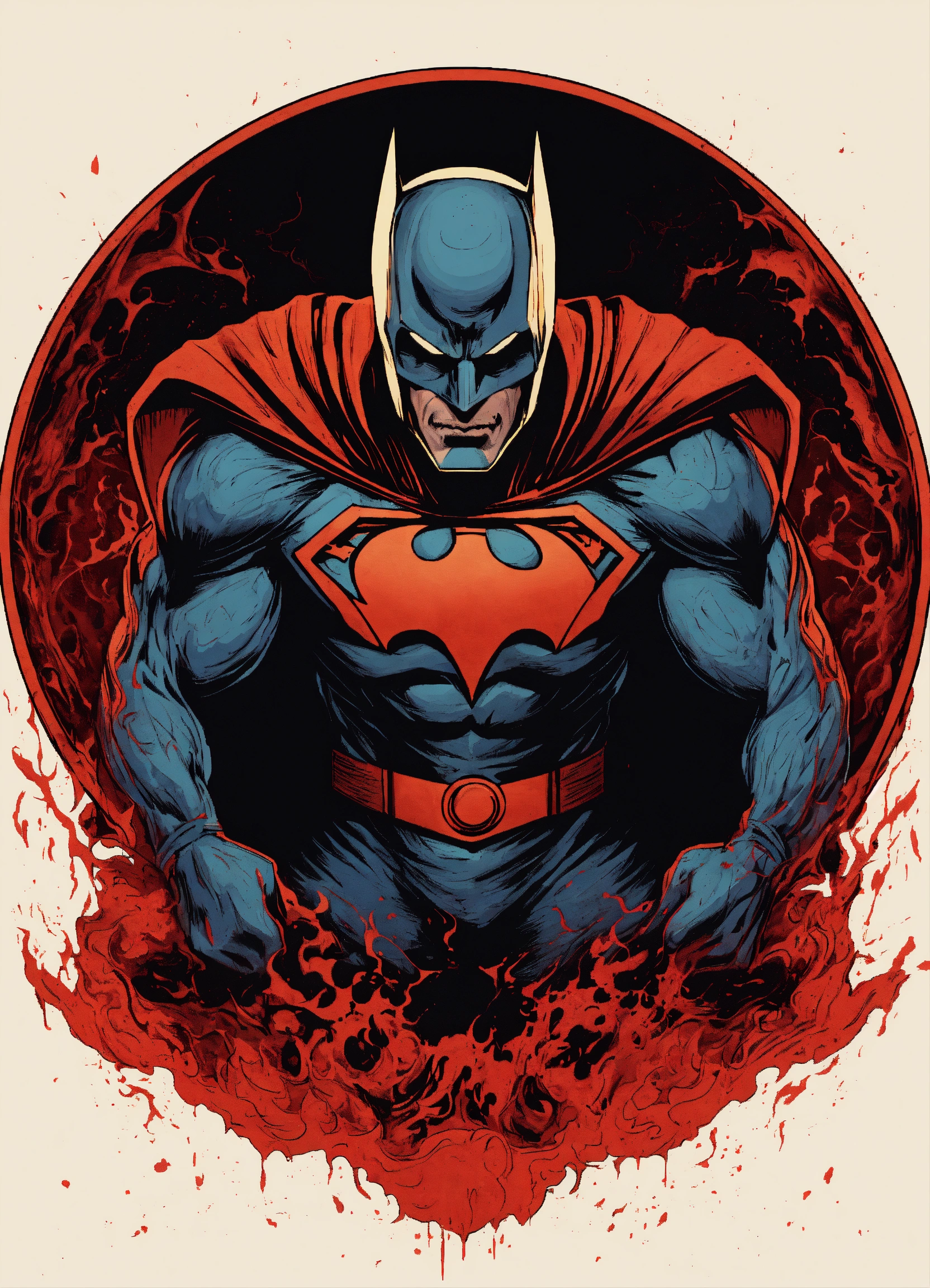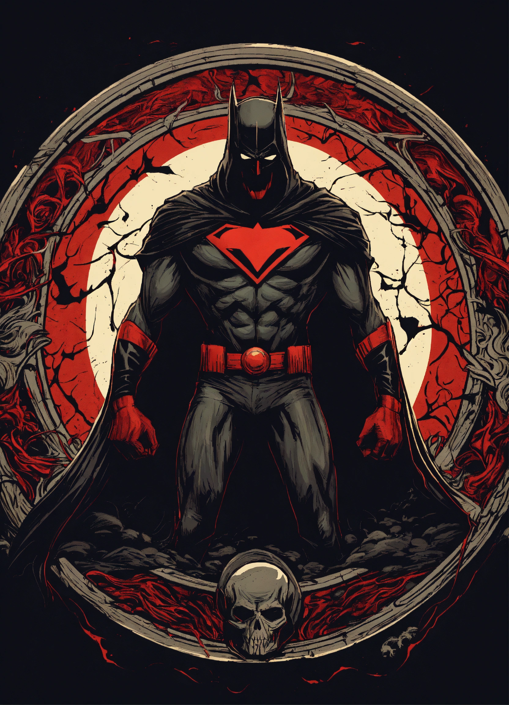 Evil scary ominous superhero in a circle, tshirt design, retro, vector artwork, art by dan mumford, white background