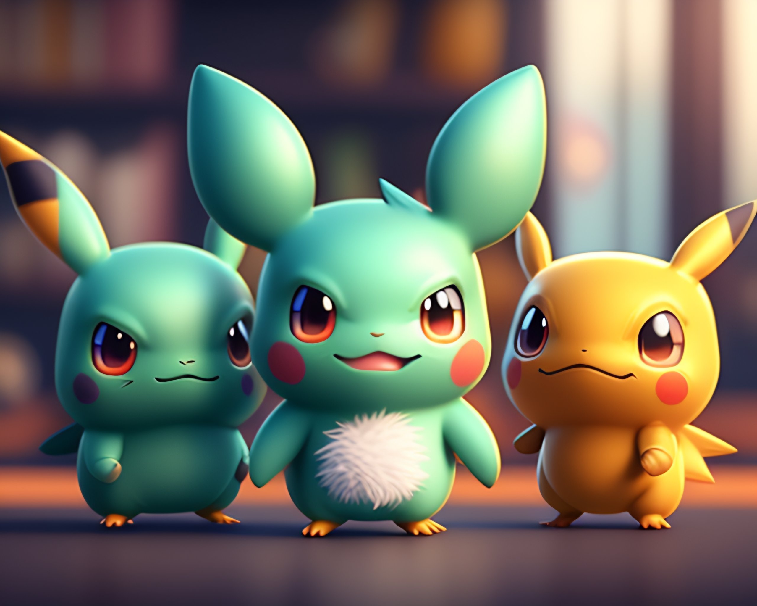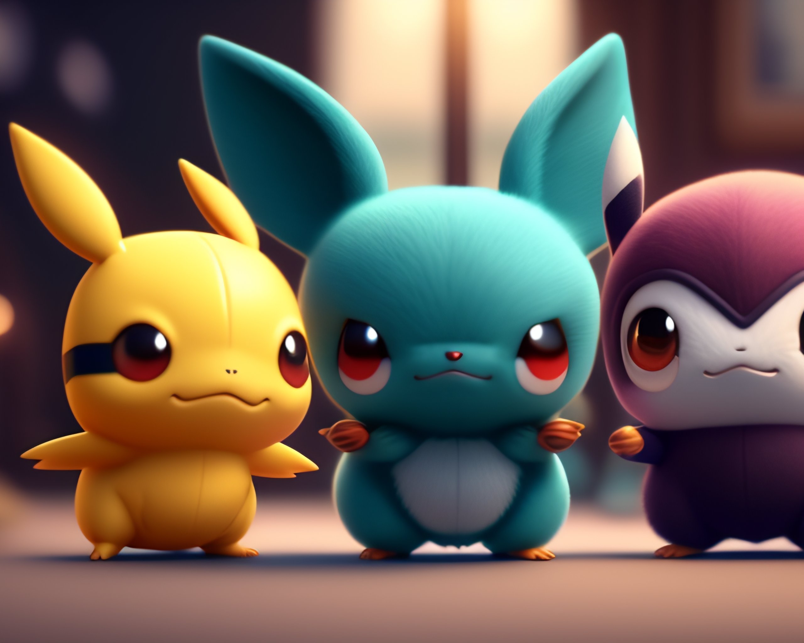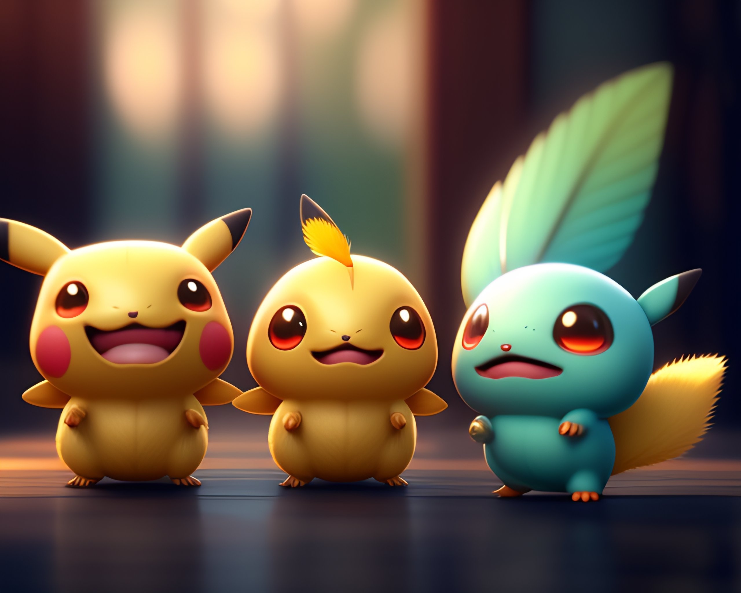 Group of cute small pokemon characters with letharking, big smile, one feather up waving to the camera, unreal engine, cozy indoor lighting, artstation, detailed, digital painting, cinematic, character design by mark ryden and pixar, octane render