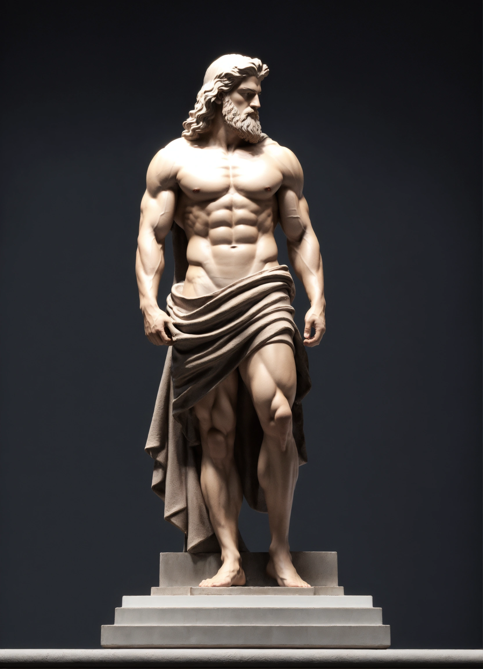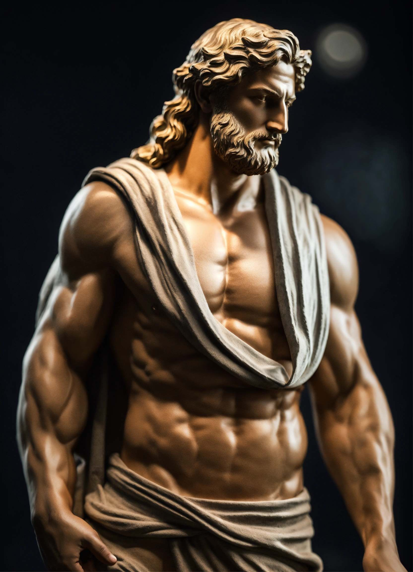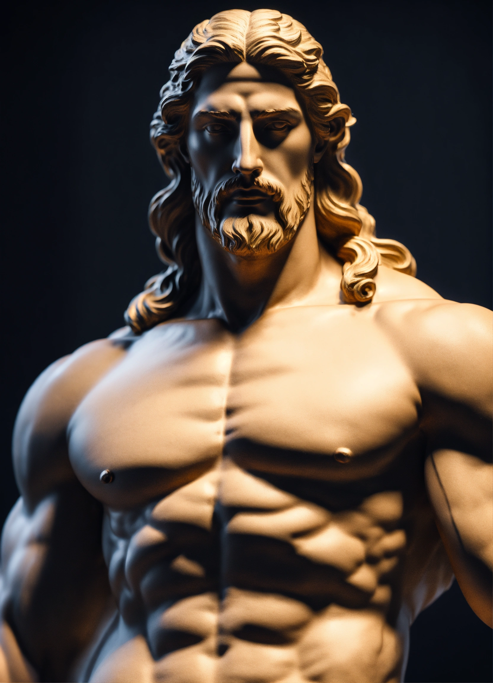 Simple muscular greek god statue with middelparting hair with white boddy with dark backround 8k wearing a hoodie