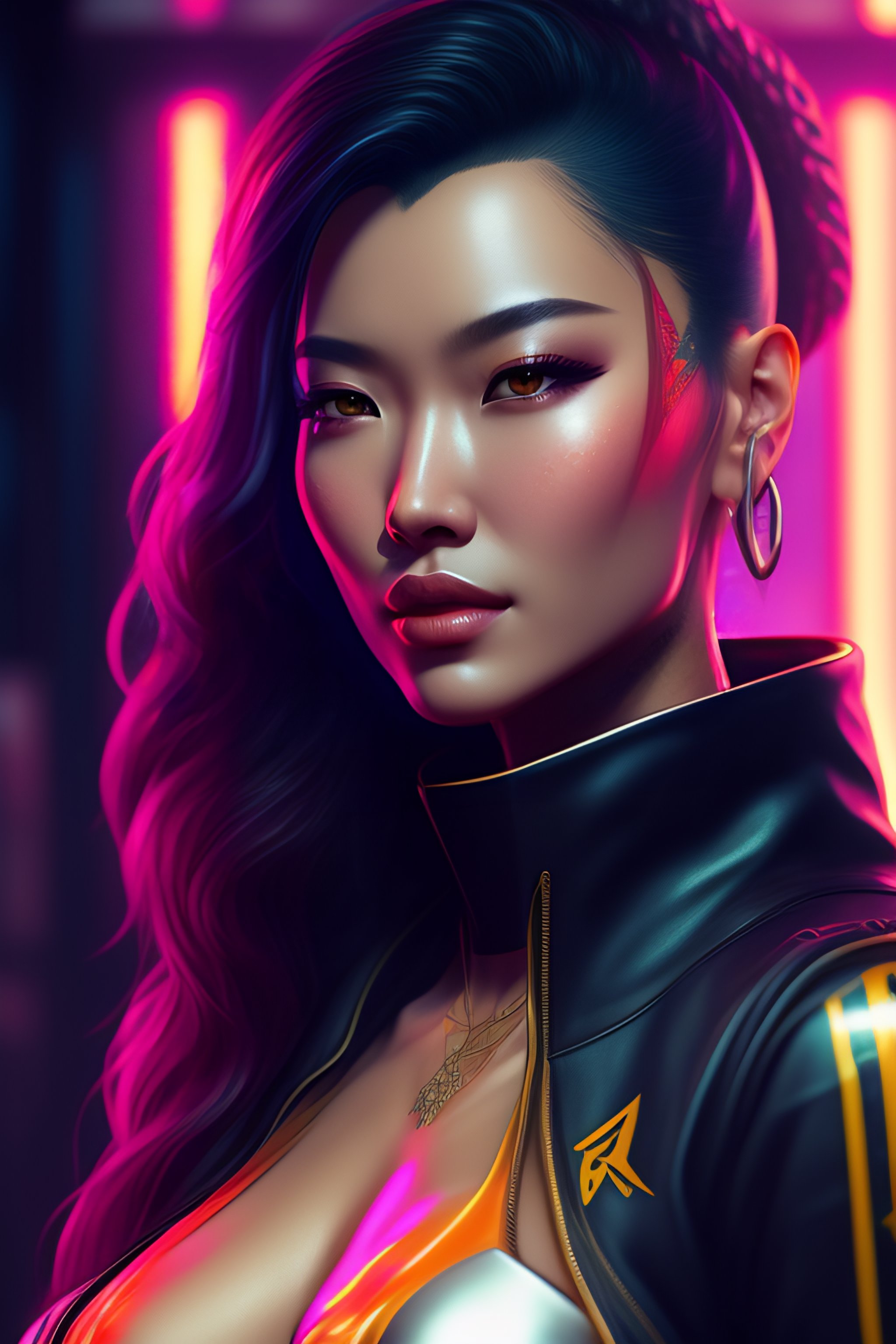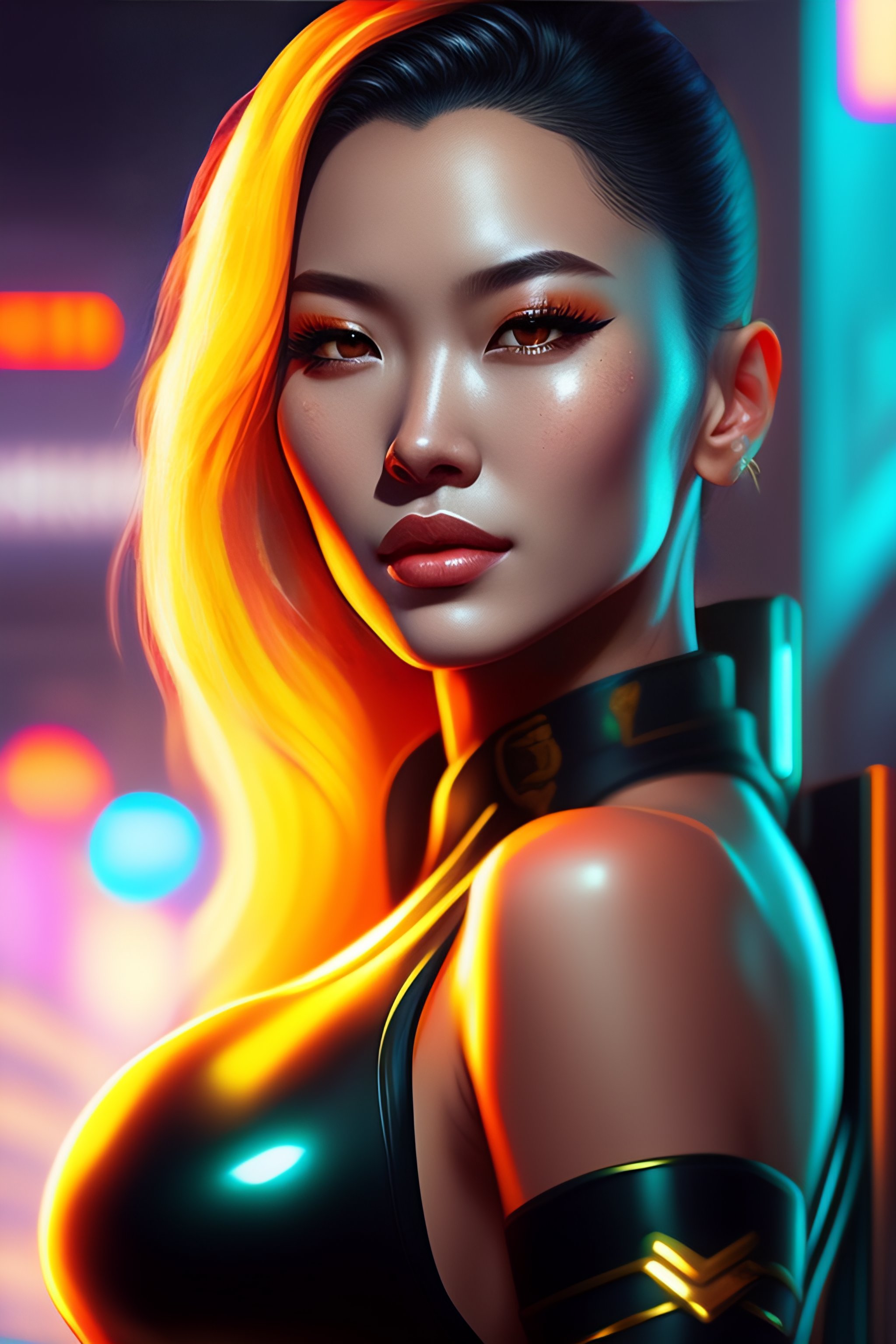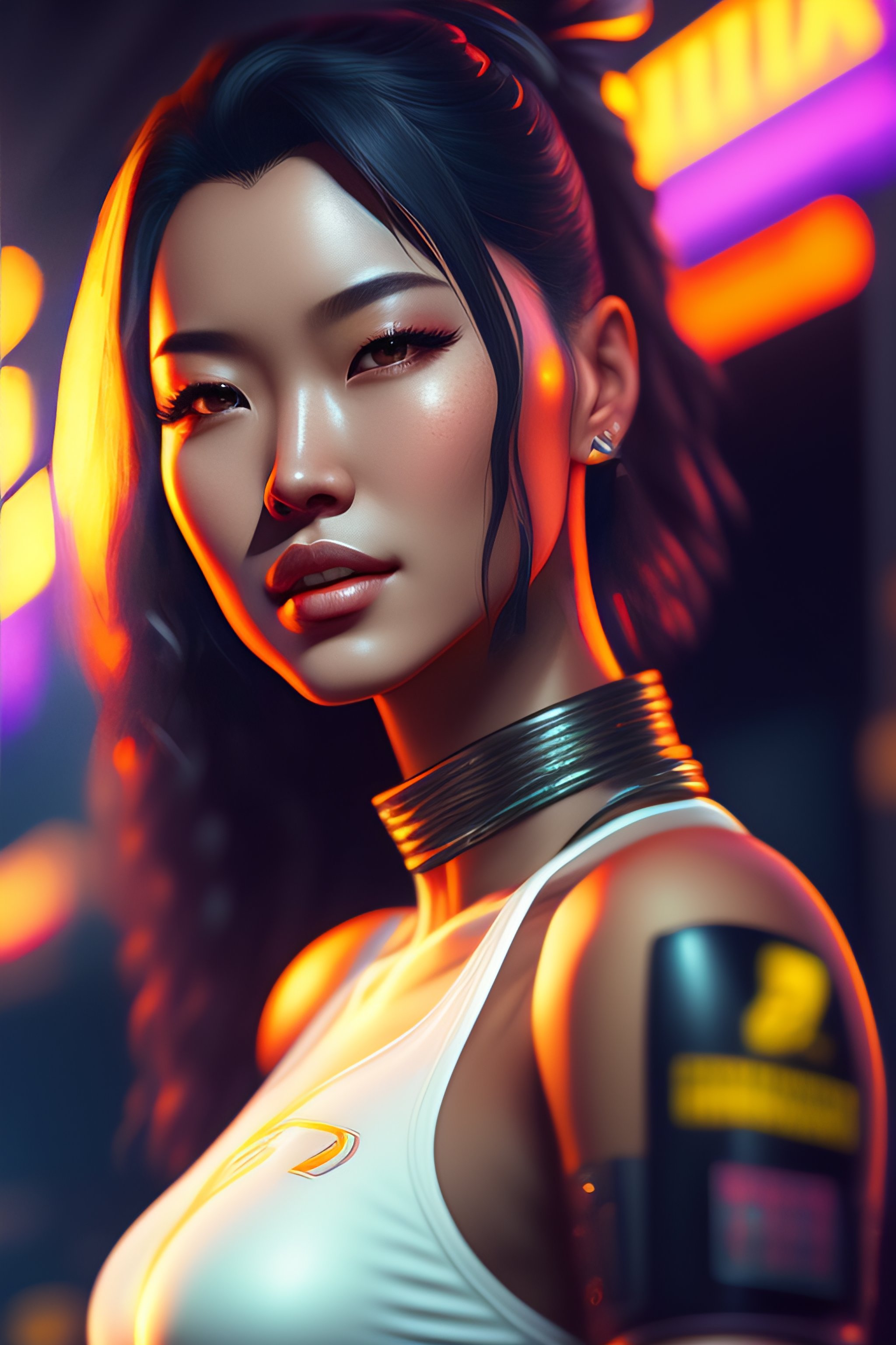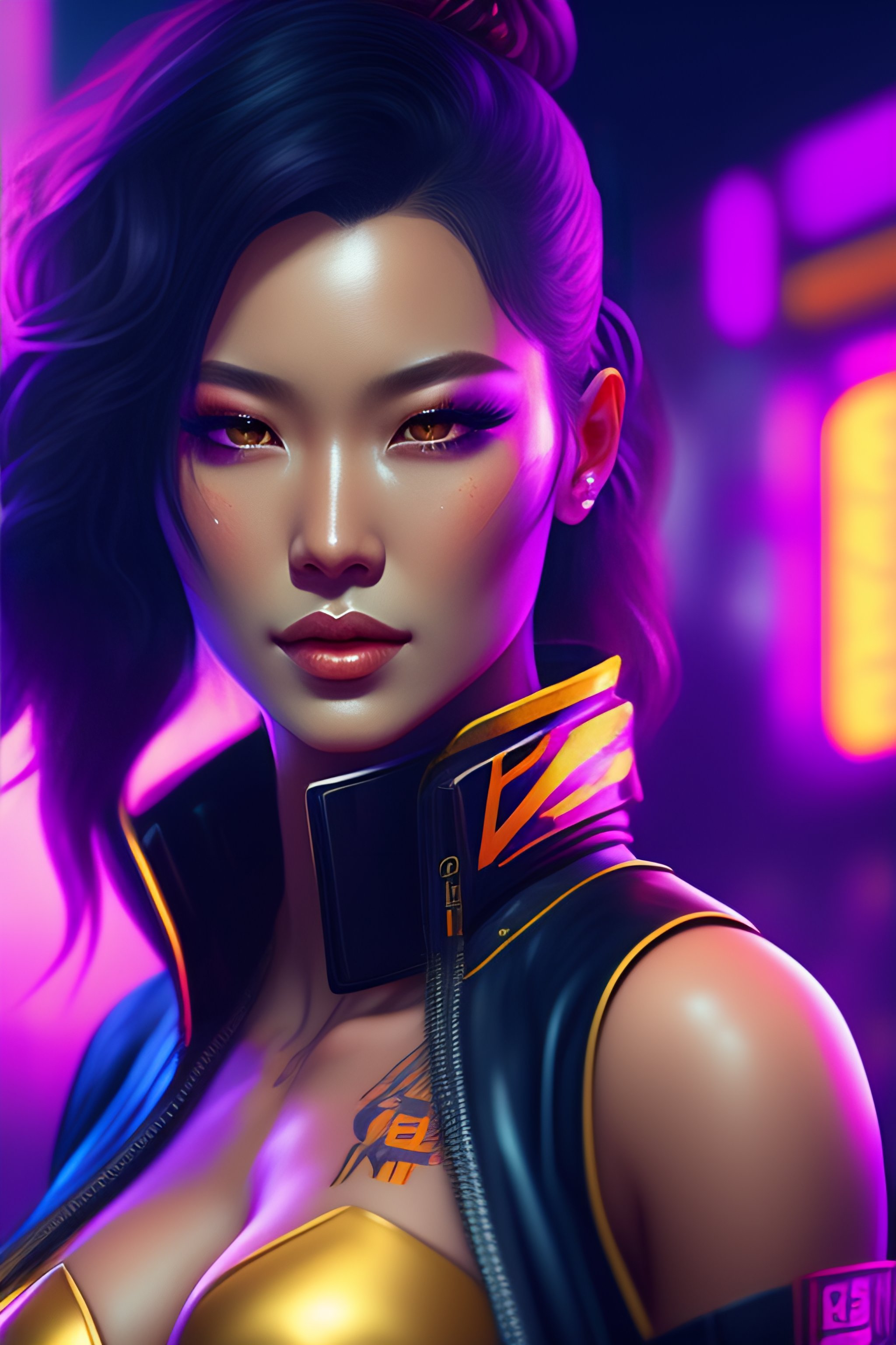 Beautiful, full body, character concept art, cyberpunk 2077, girl, digital art, portrait, highly detailed, sexy, asian