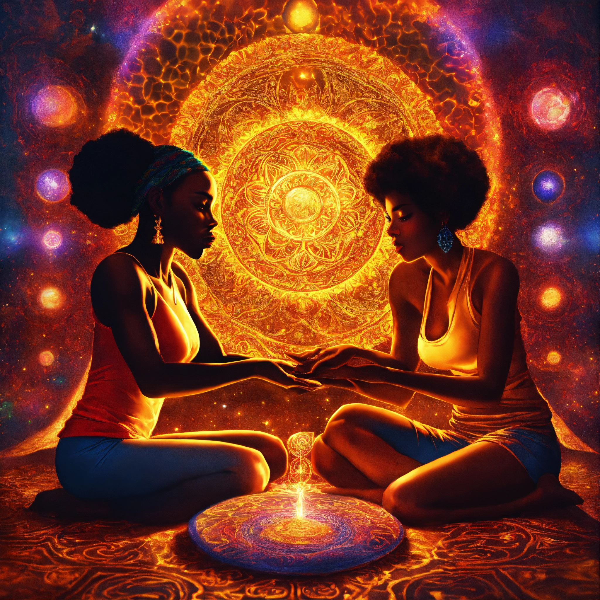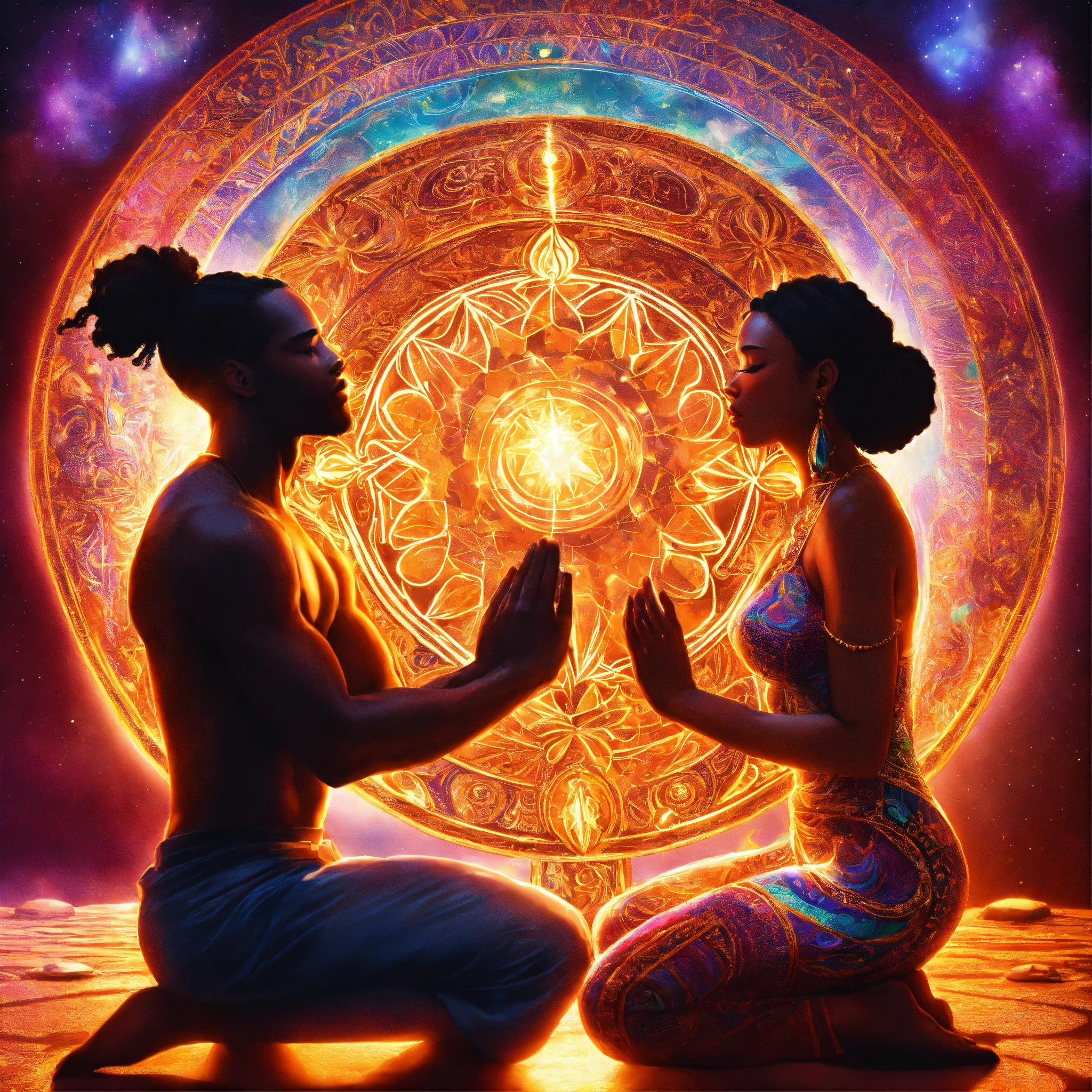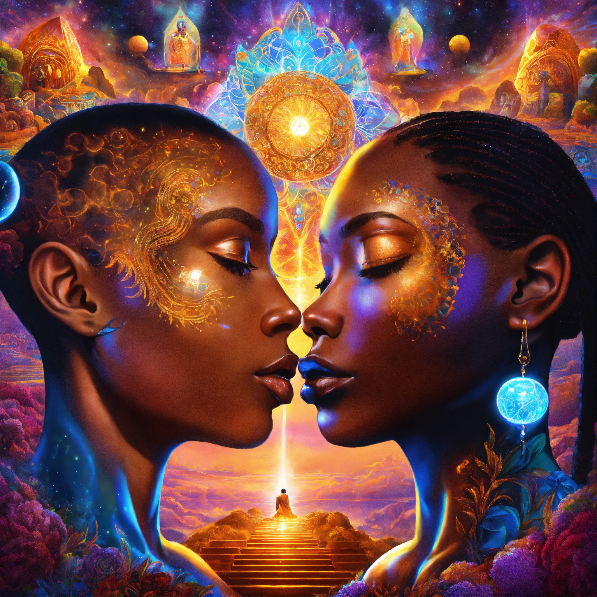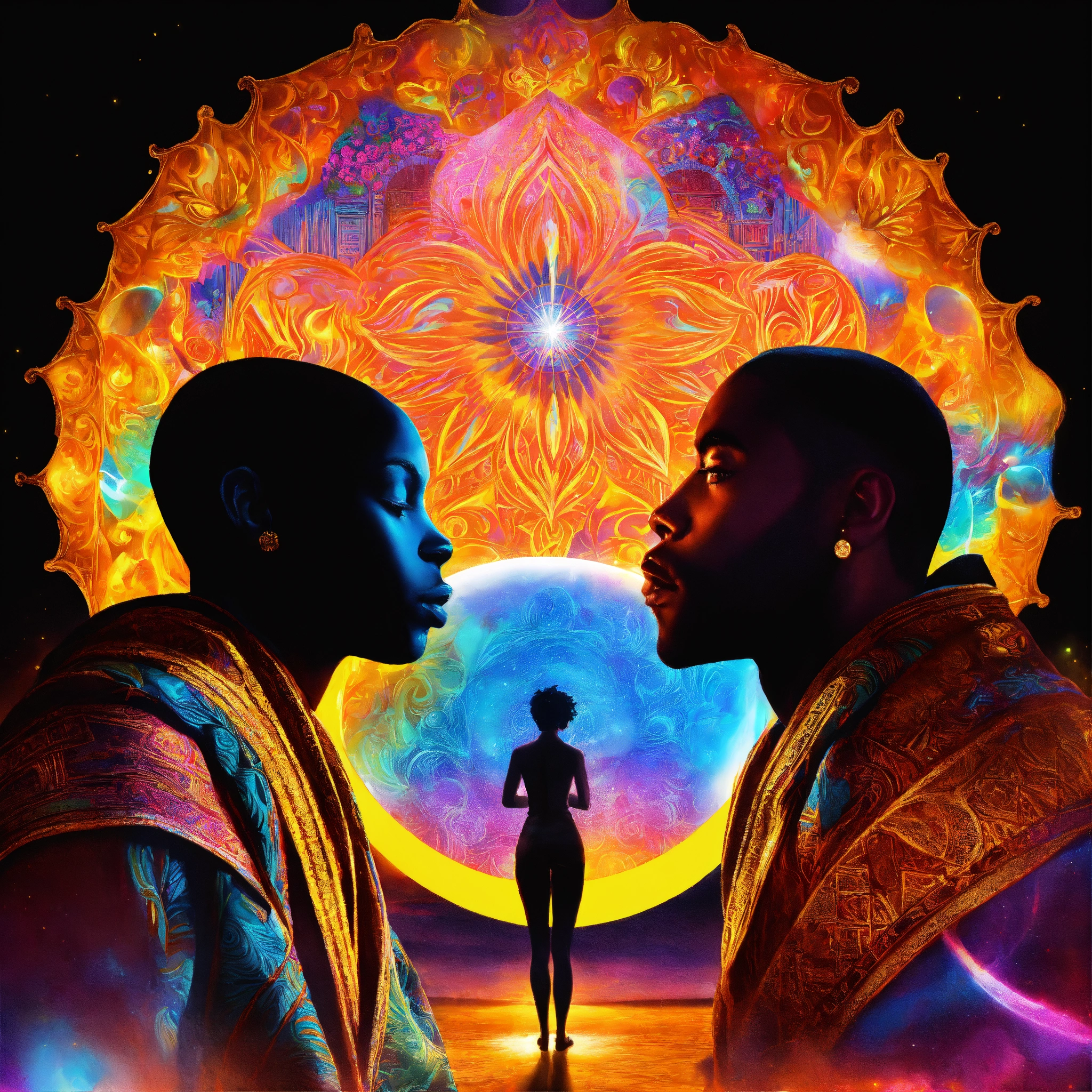 Dmt art image of black man and woman receiving spiritual enlightenment