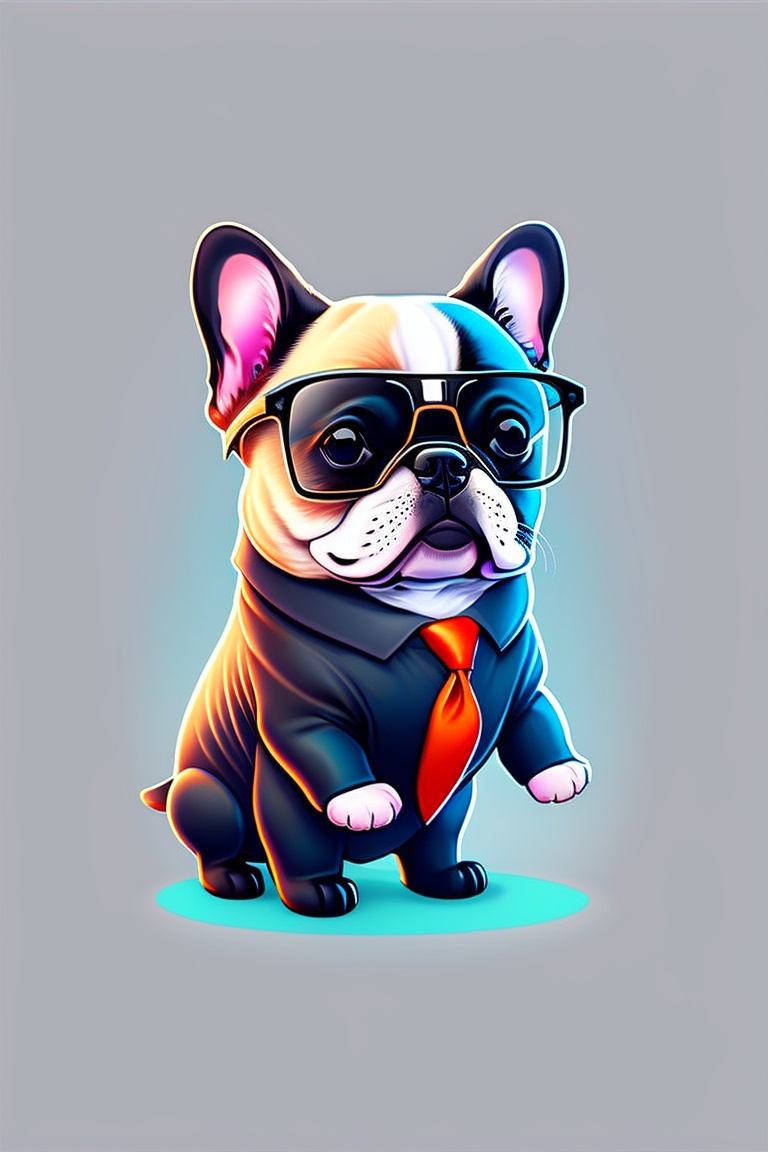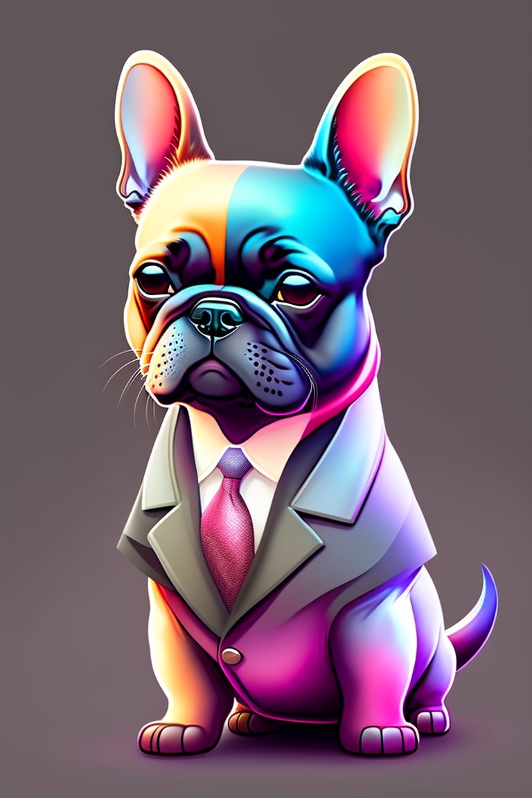 Cute and adorable cartoon mafia french bulldog, fantasy, dreamlike, surrealism, super cute, trending on artstation, vector art style, t-shirt design, white background