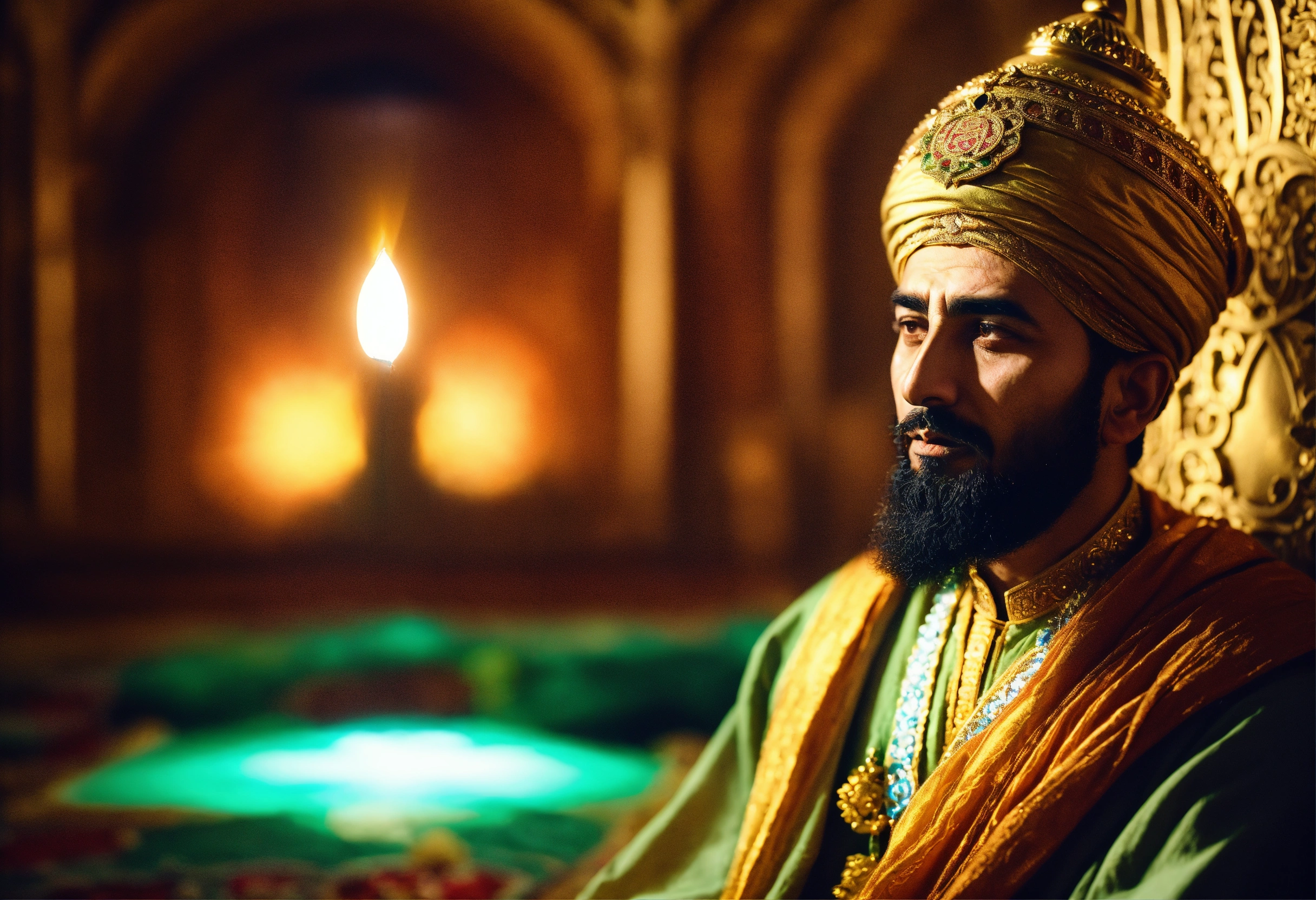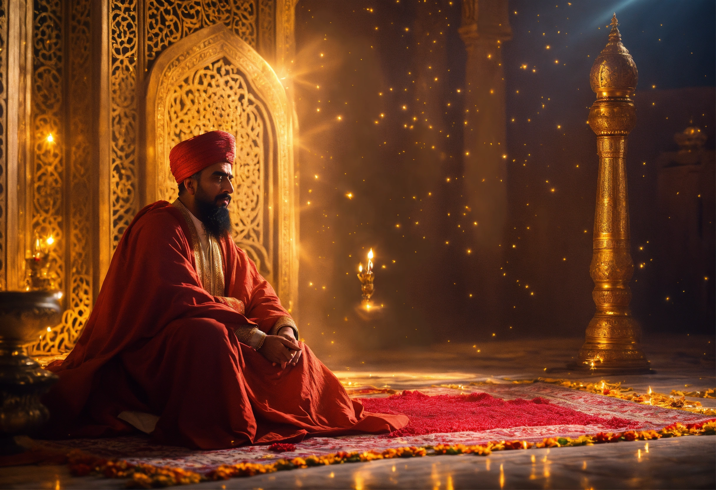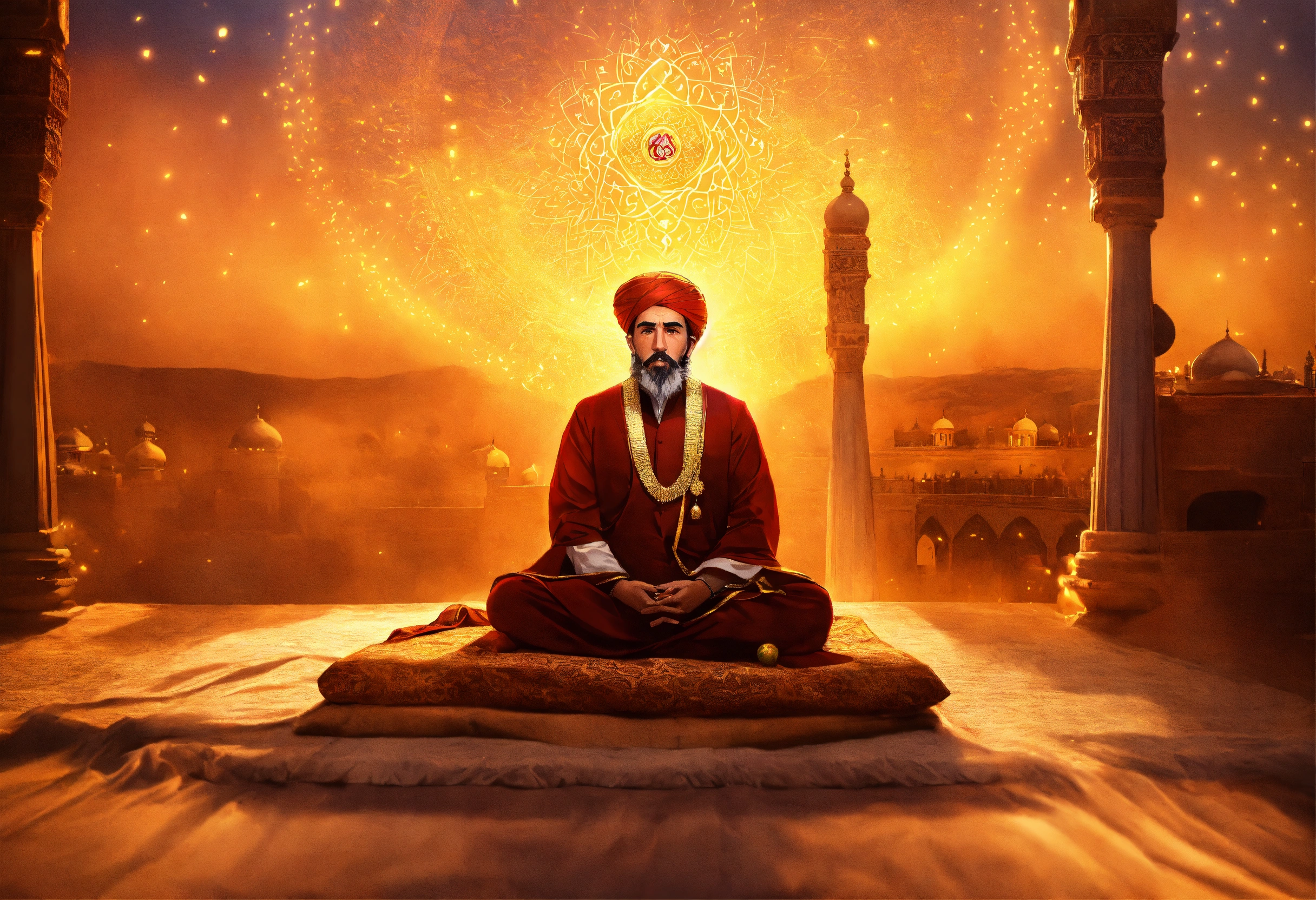 Create a video scene that portrays the face of hazrat imam jafar sadiq (peace be upon him) illuminated with divine radiance (light). his face should be enveloped in a gentle, ethereal light, symbolizing his spiritual significance and wisdom. this radiant glow should convey the idea of enlightenment and divine grace. the video scene should inspire a sense of reverence and awe."