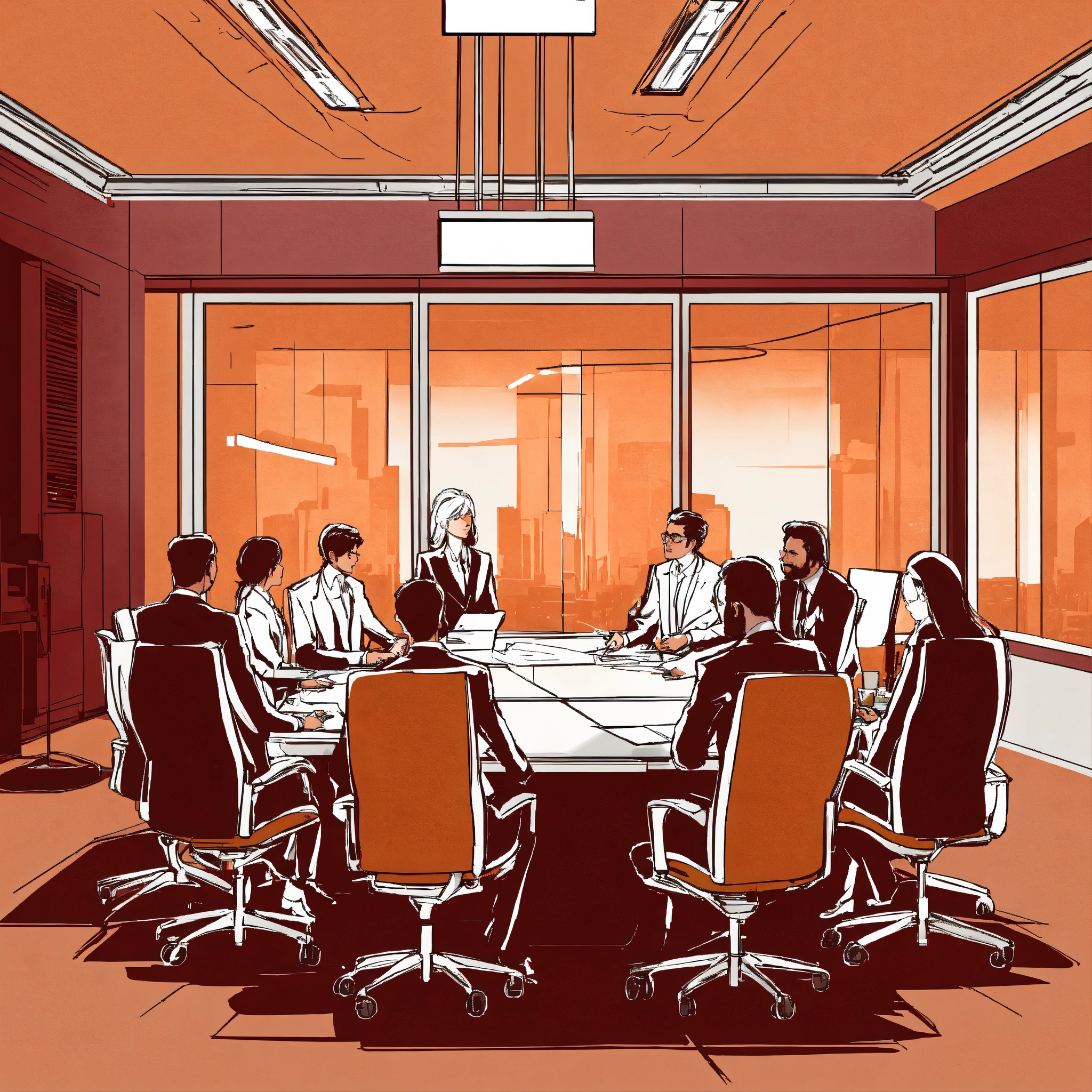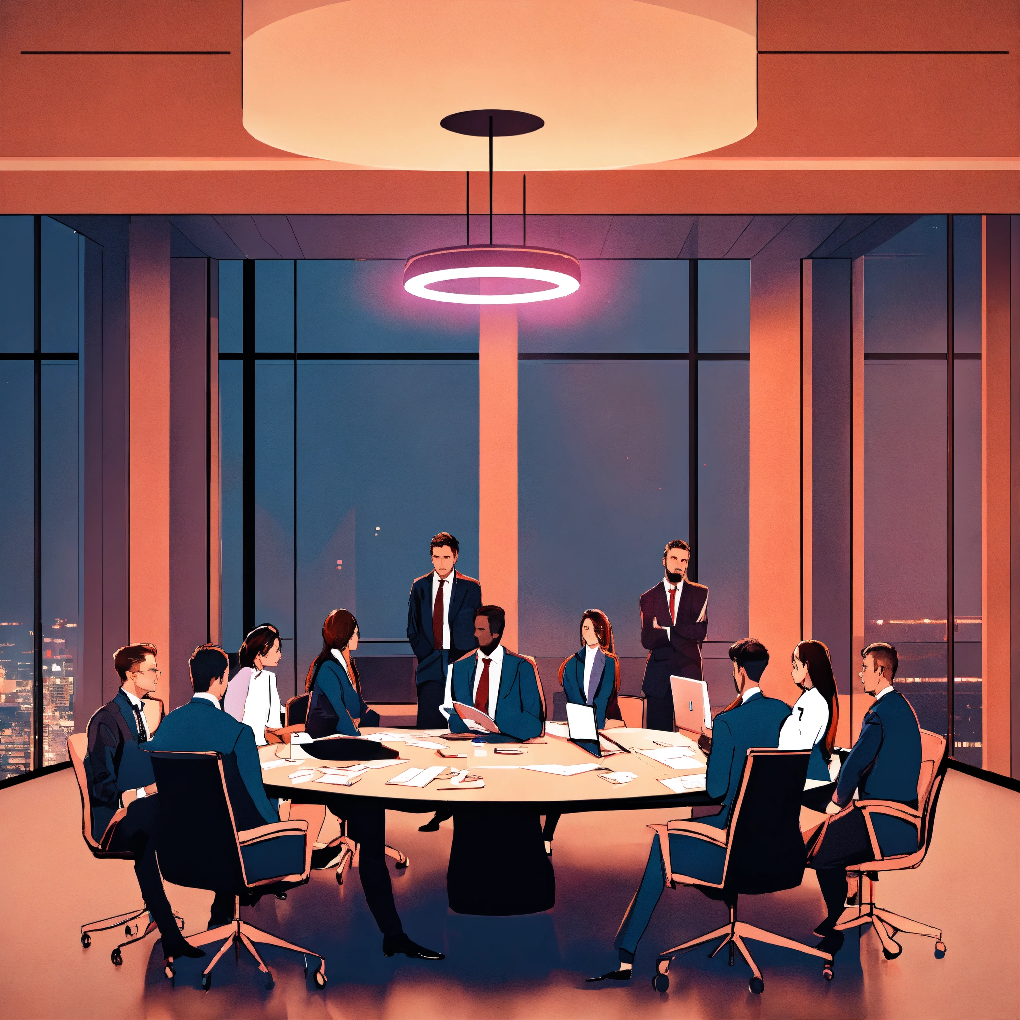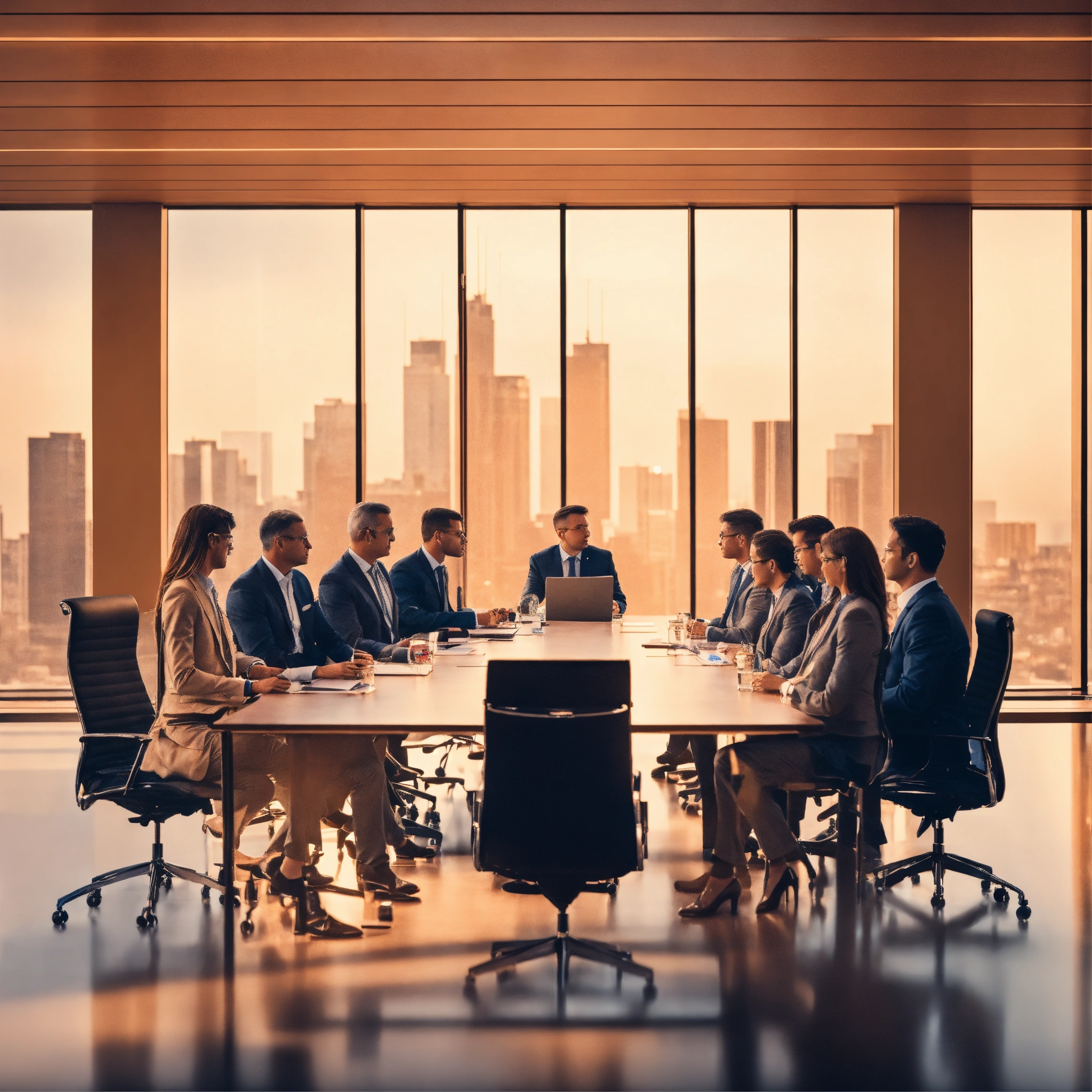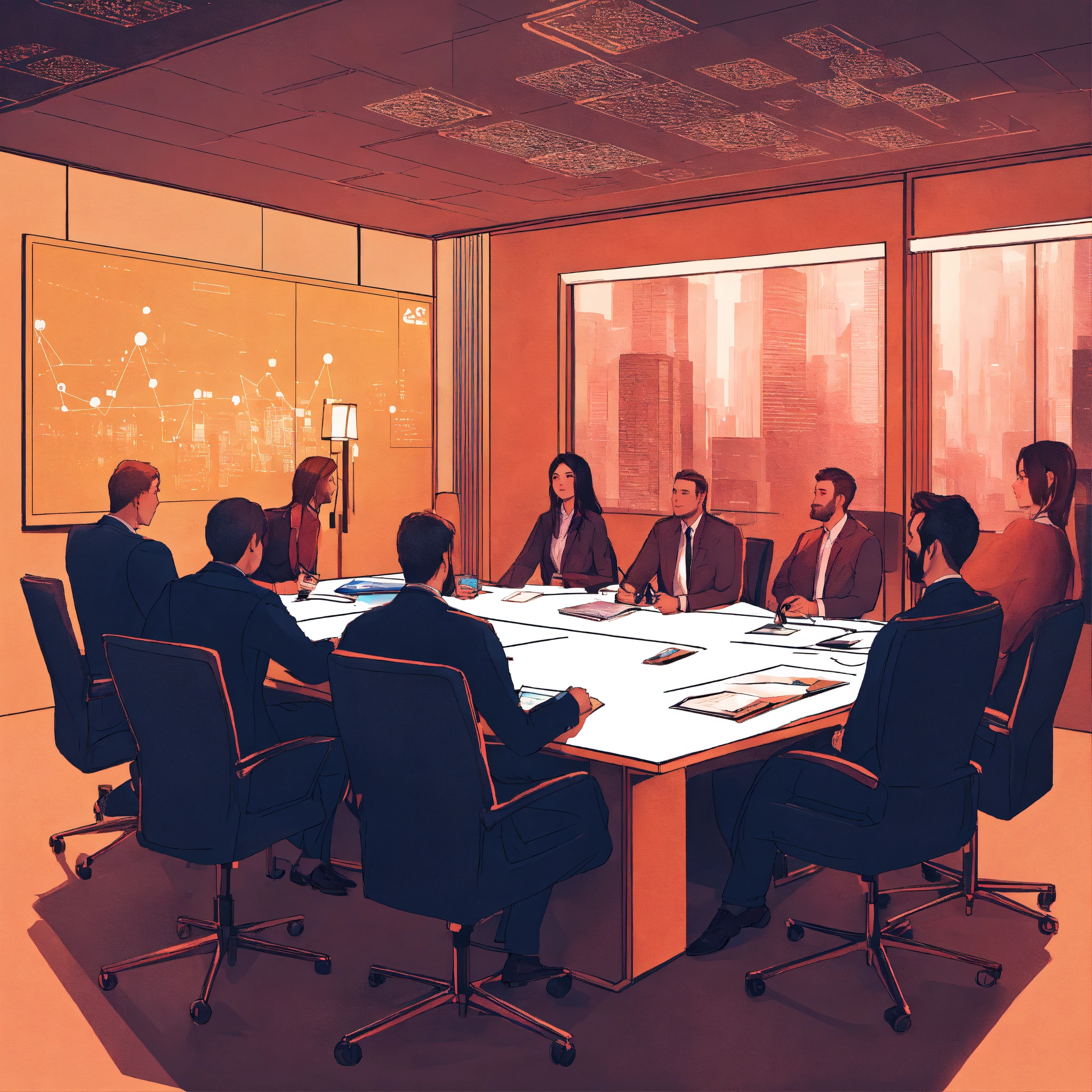 Several c suite executives (men and women) sitting in the board room planning ai strategy