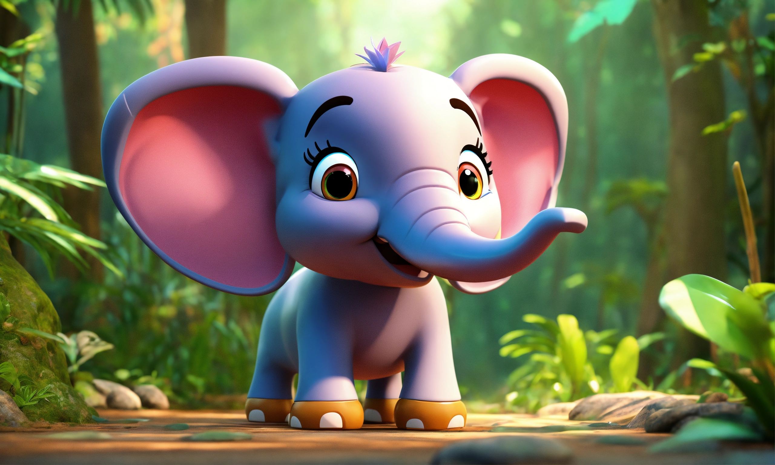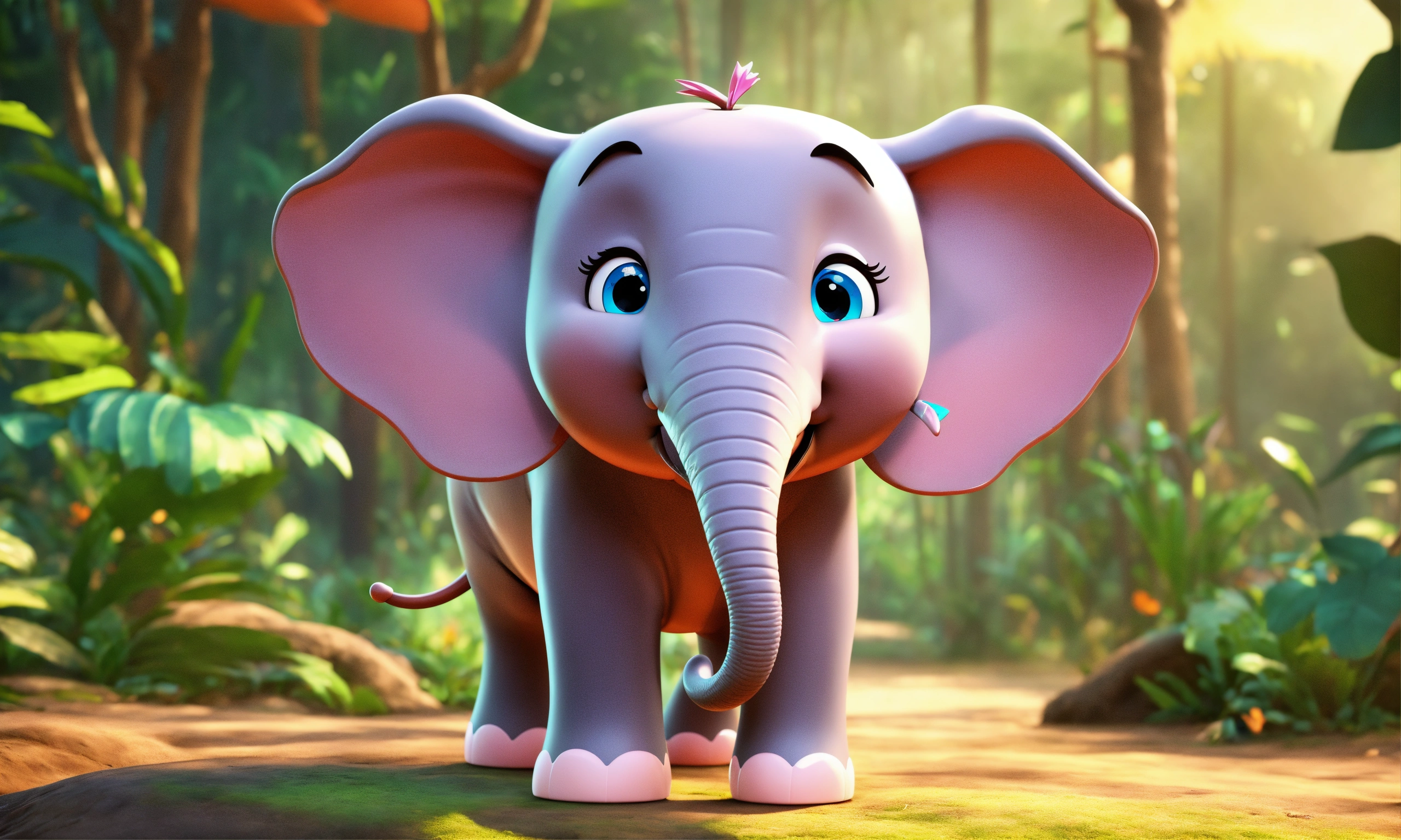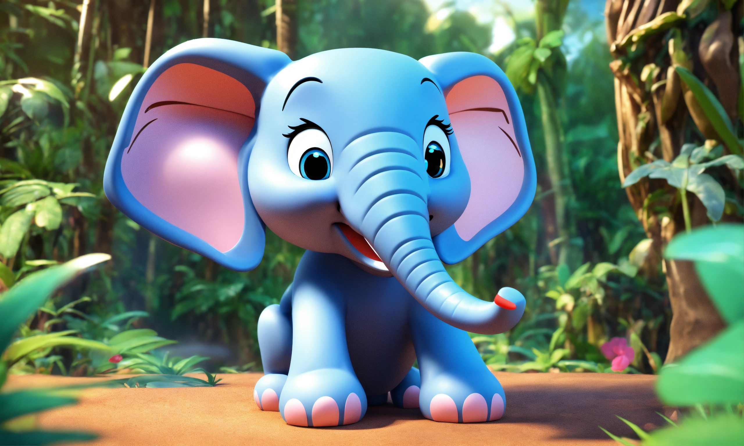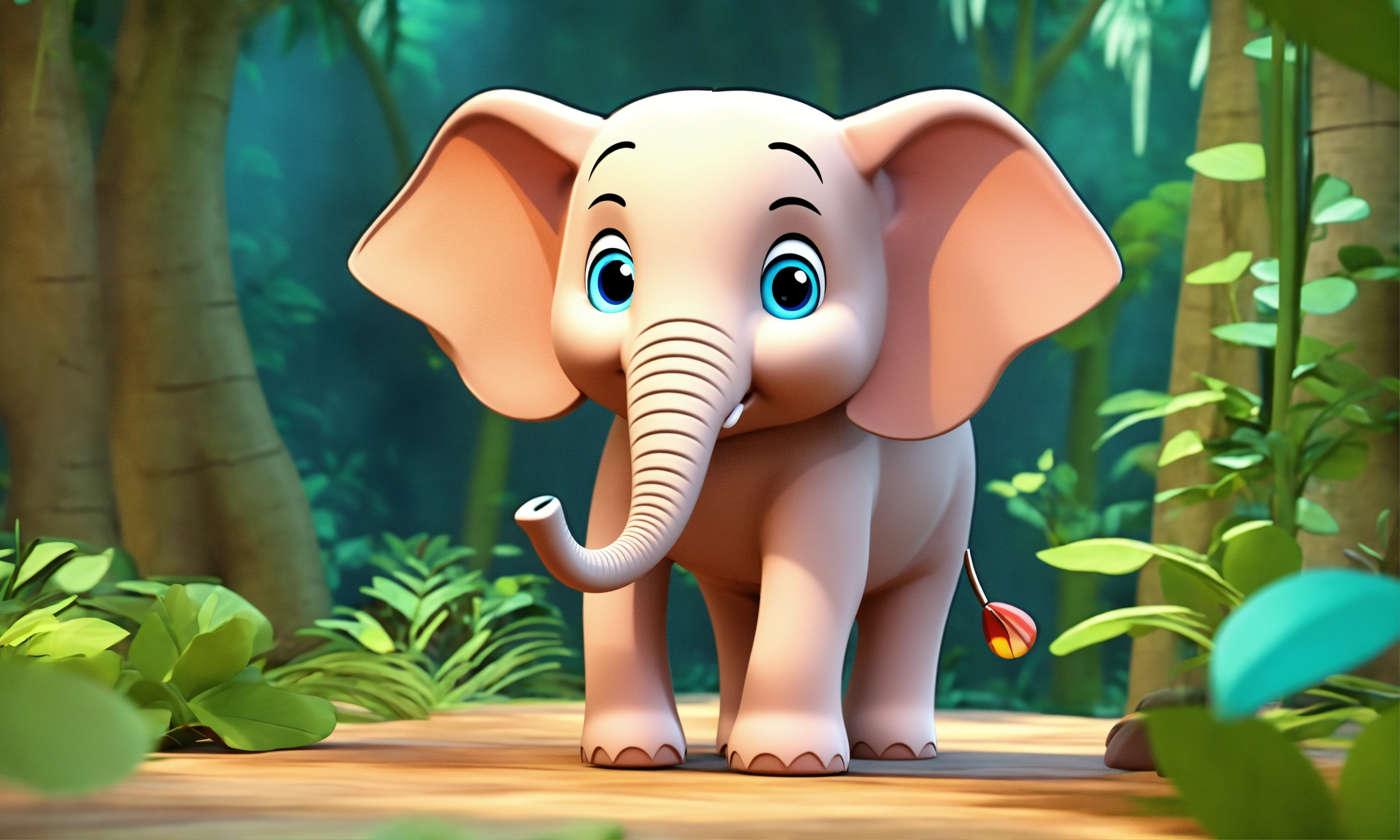 Cartoon cute 3d style elephant talking in jungle