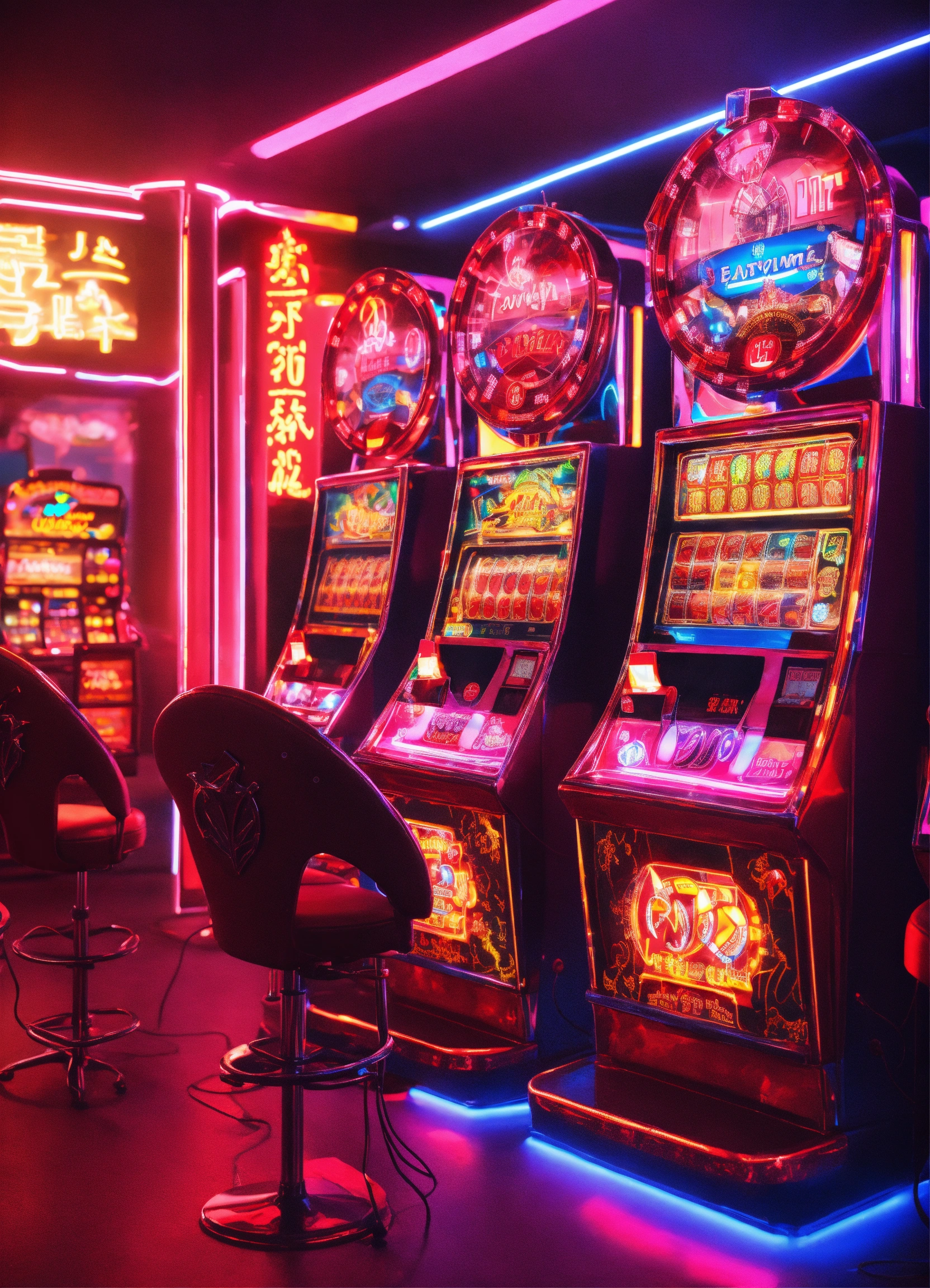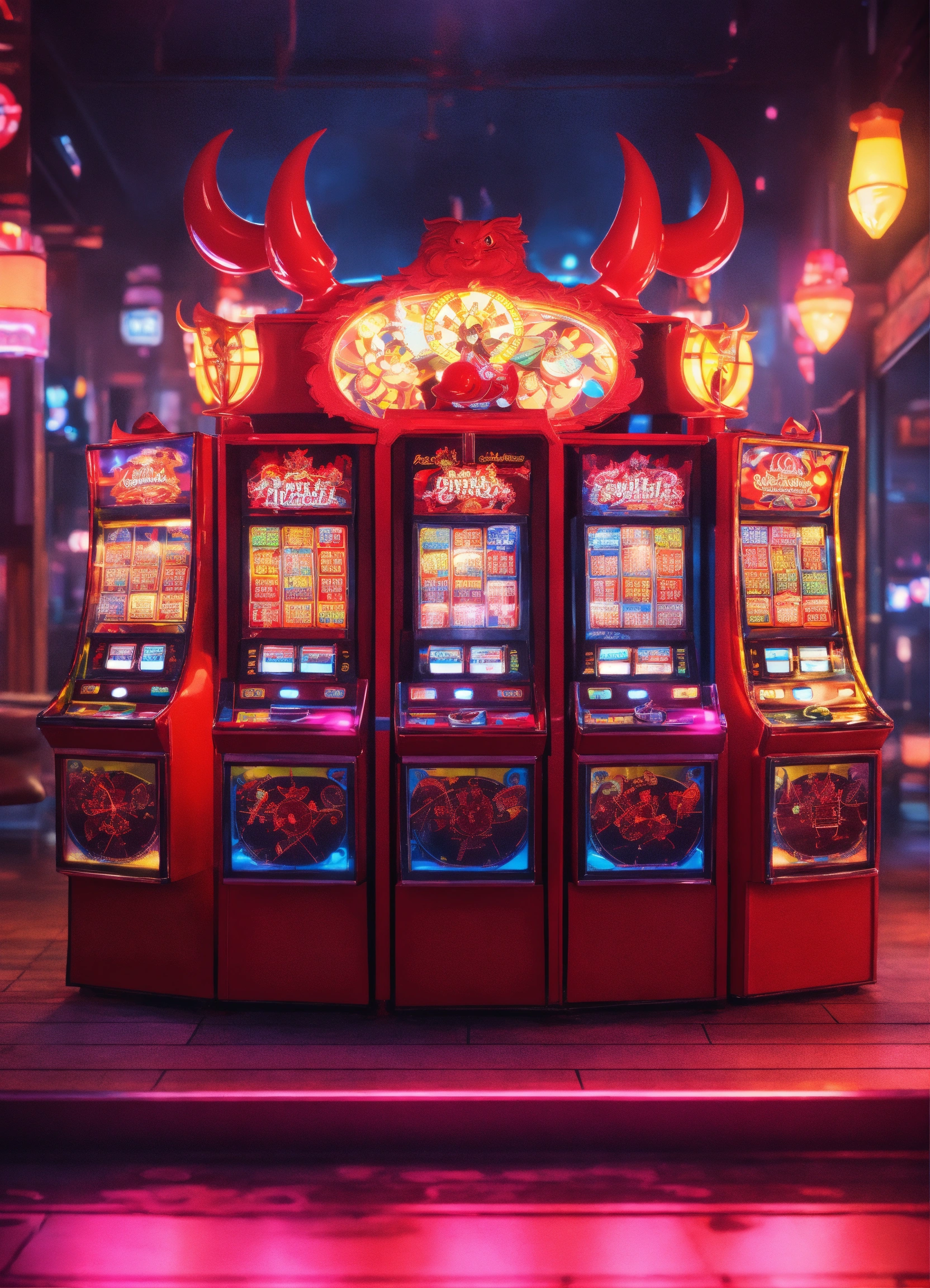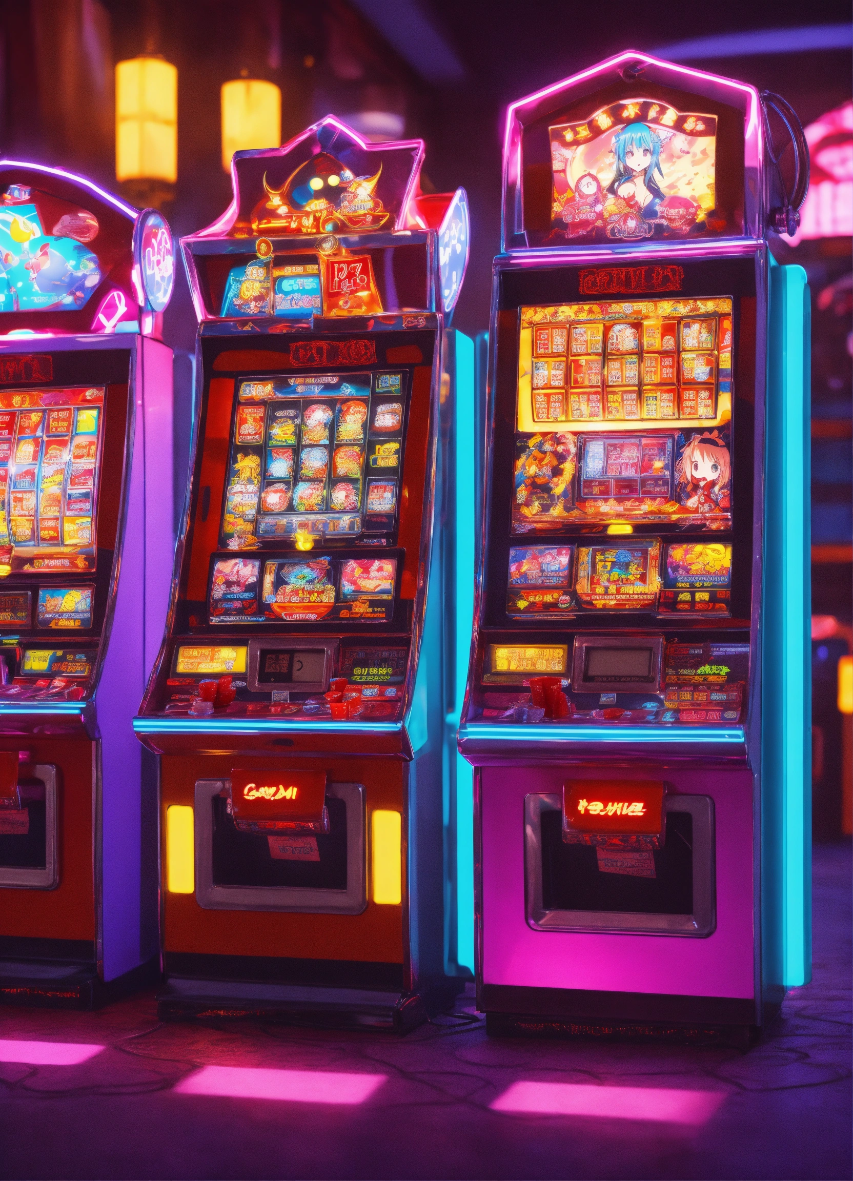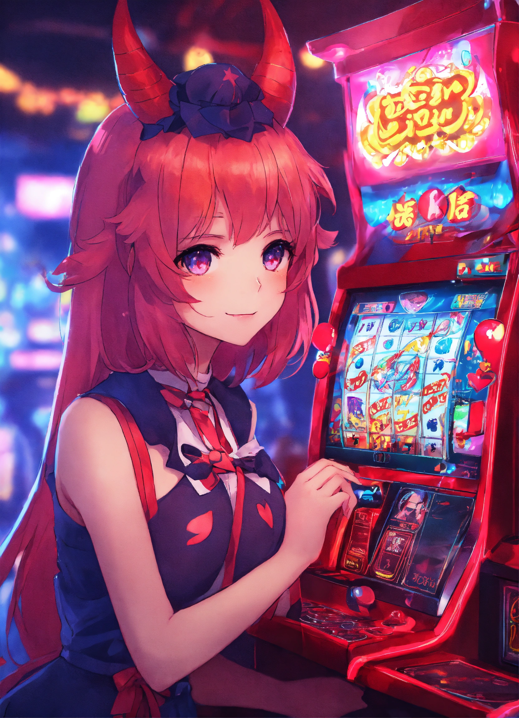 Cutie anime characters devil slotmachine location,8k and neonlight