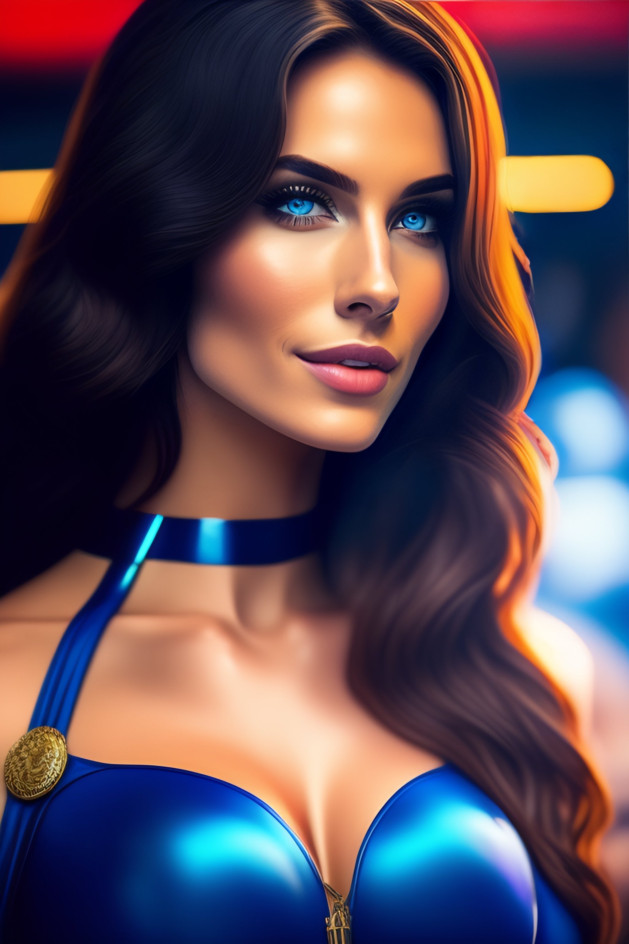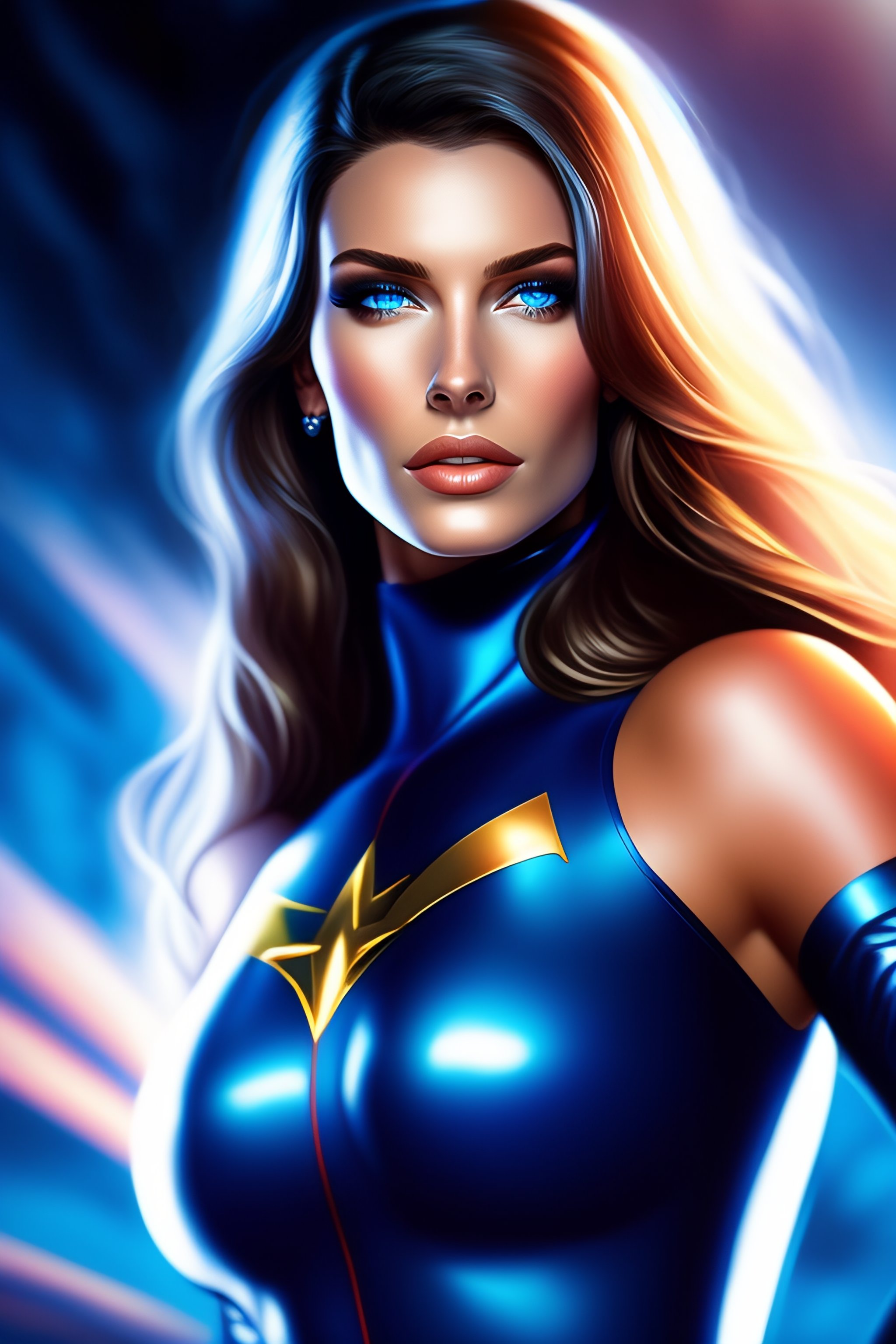 Sexy tall girl marvel style burnette with blue eyes