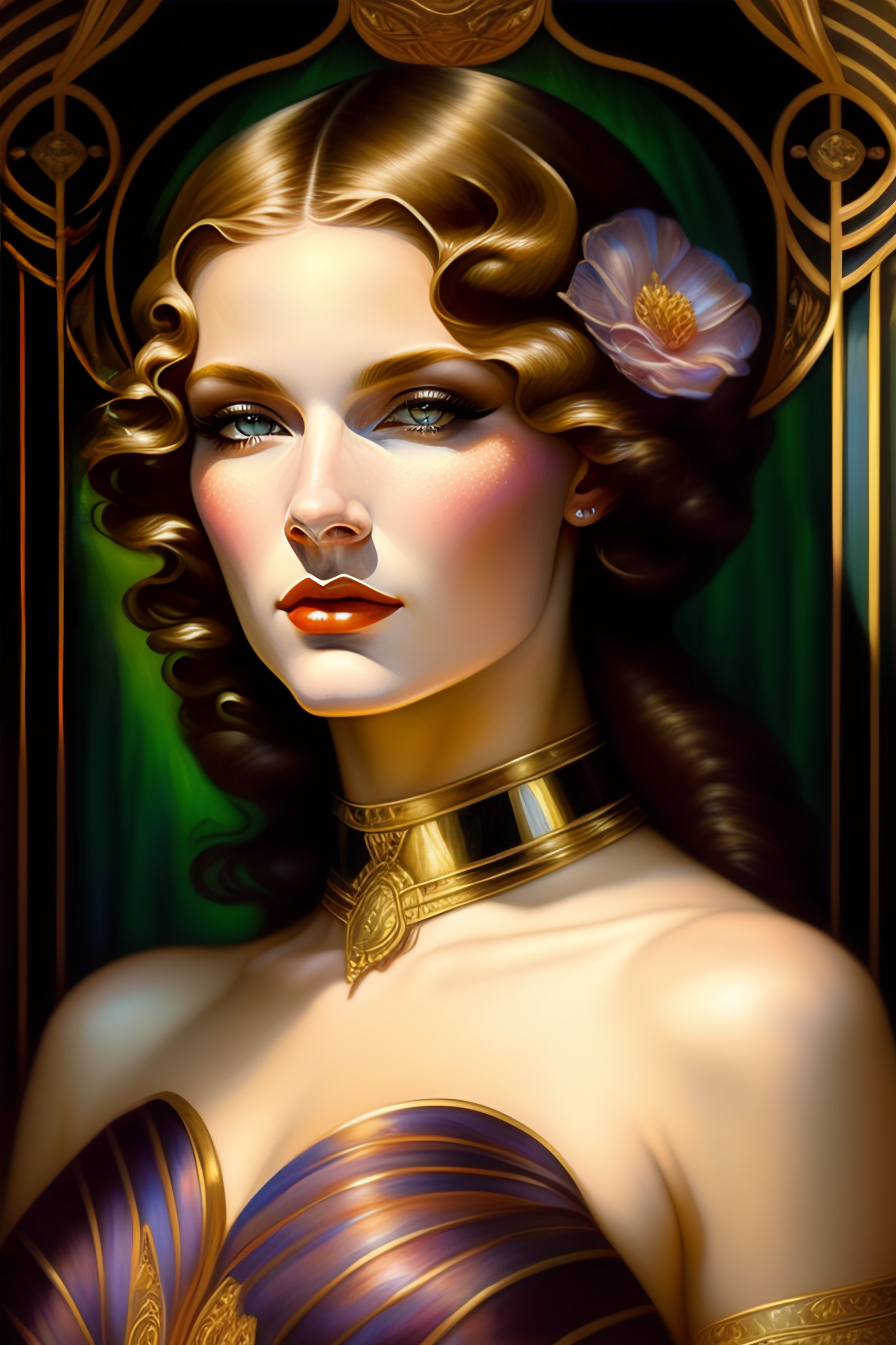 An art deco painting in the style of donato giancola, and in the style of charlie bowater, and in the style of alphonse mucha. symmetry, smooth, sharp focus, semi - realism, intricate detail.
