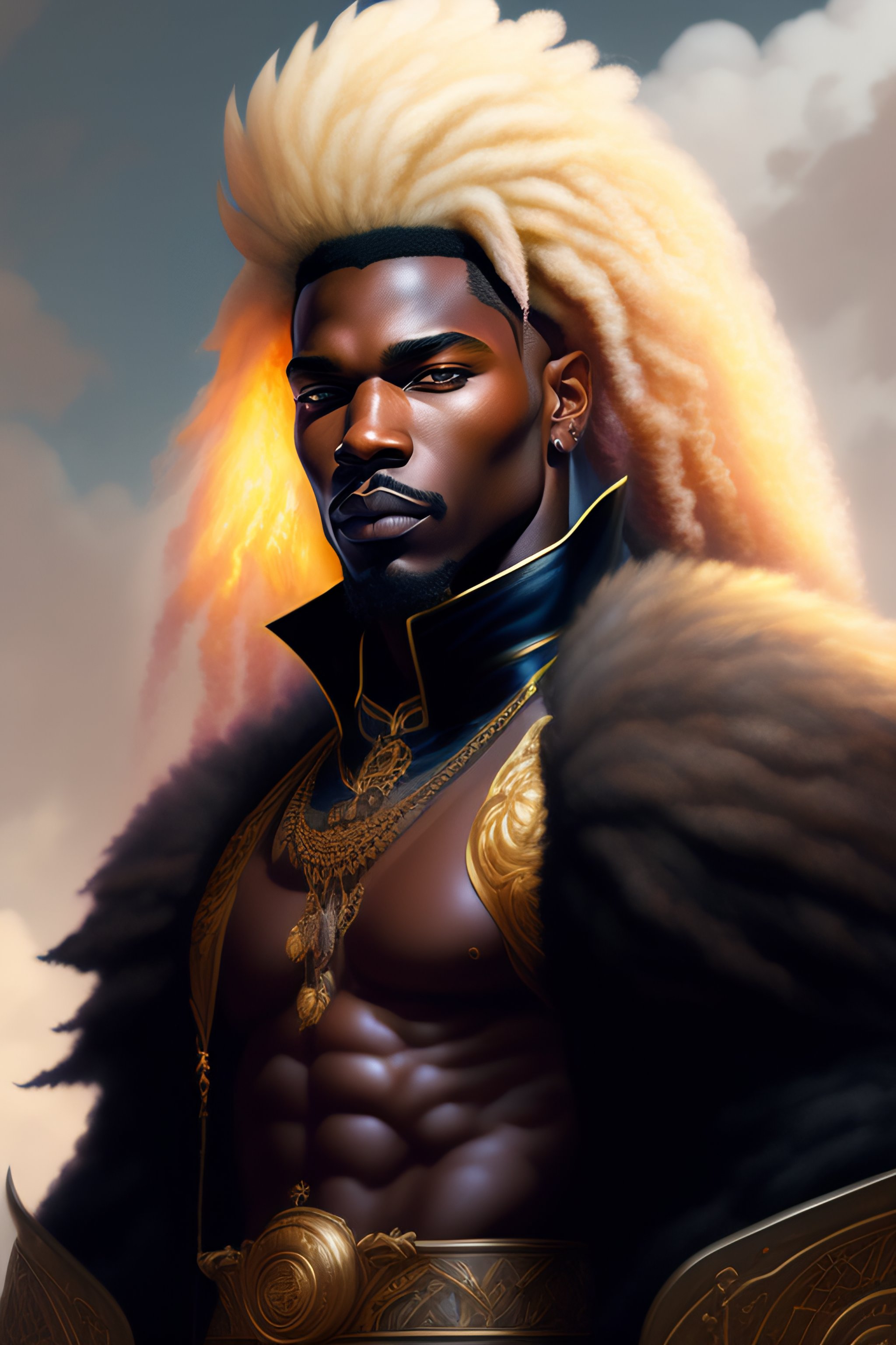 Black man, aesthetic portrait commission of a albino muscular and attractive anthro lion as a greek steampunk god overlord with mane fur turning into industrial revolution smoke in the british clouds, fantasy art, hyperdetailed. character design by charlie bowater, ross tran, artgerm, and makoto shinkai, detailed, inked, western comic book art, 2021 award winning painting