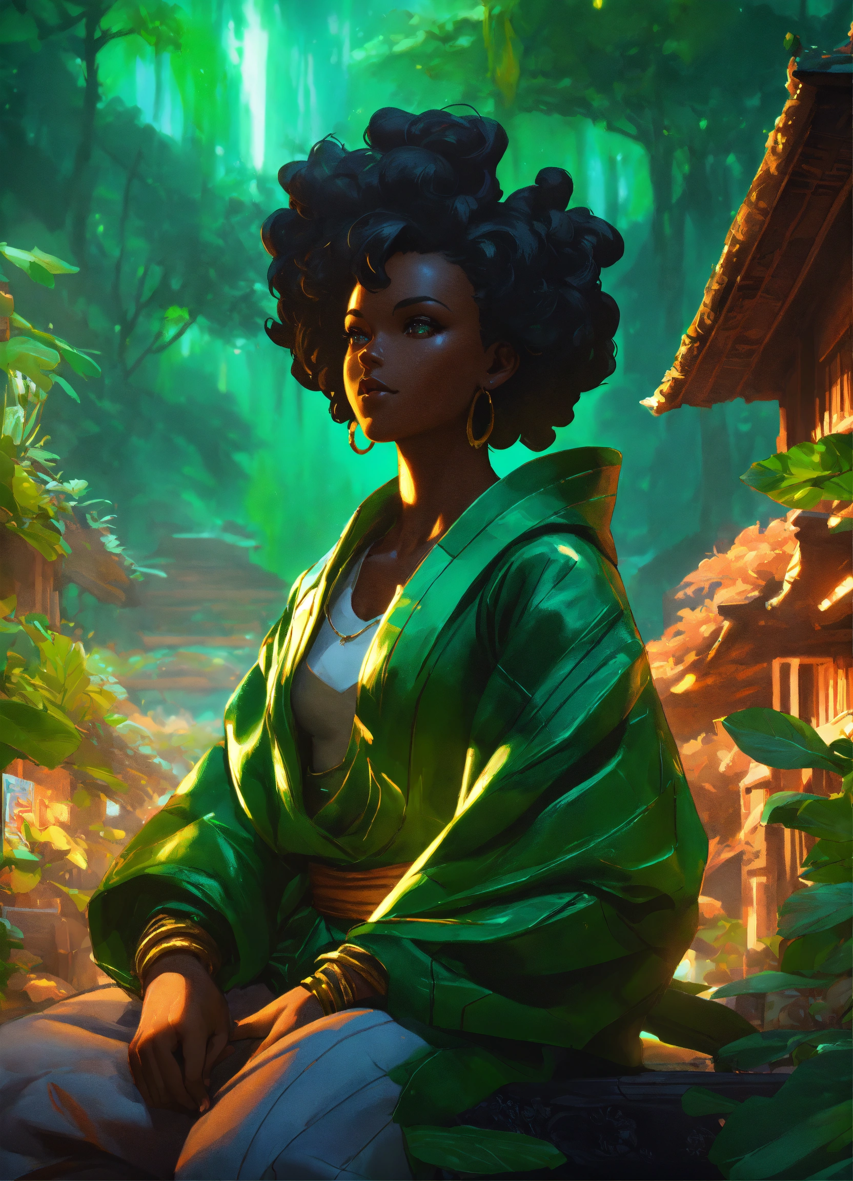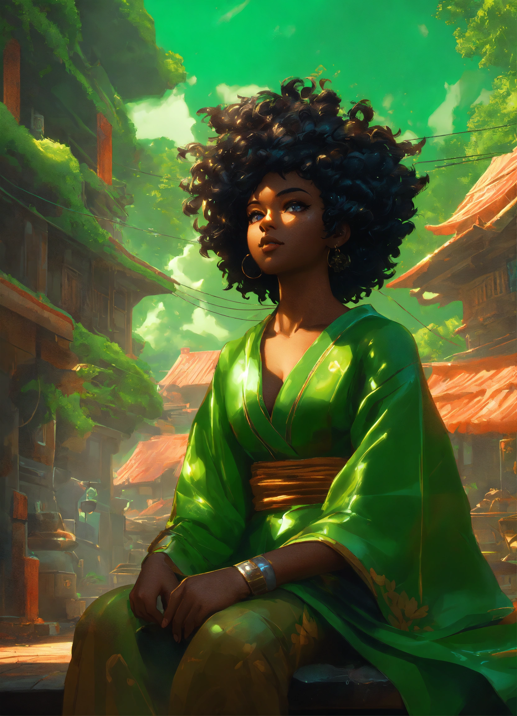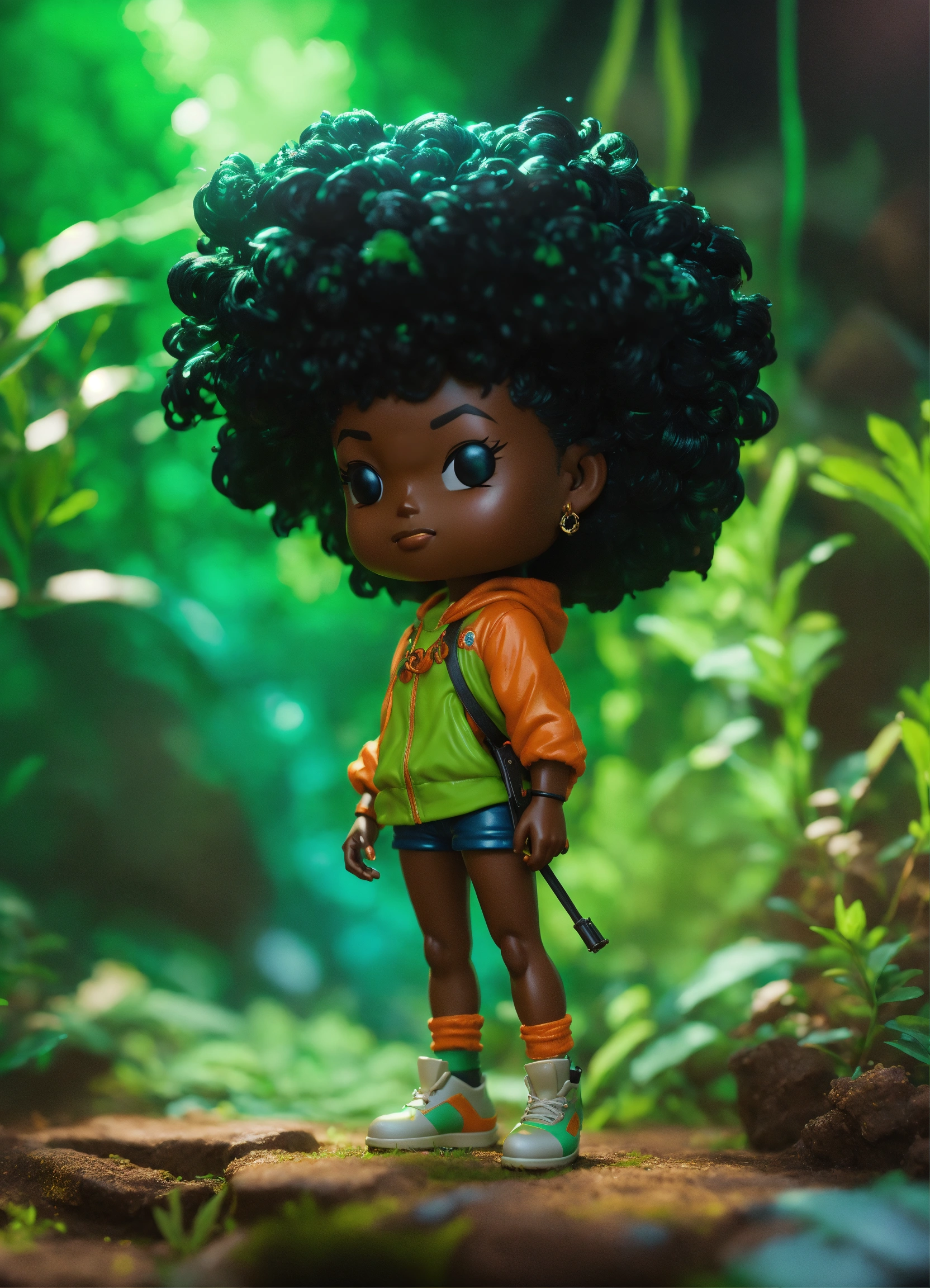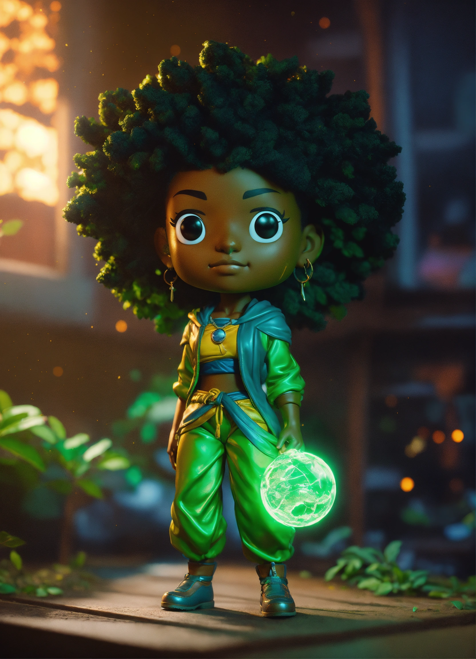 Highly detailed funko pop of dark skinned black mother of goku in green, unreal engine, fantasy art by greg rutkowski, loish, rhads, makoto shinkai and lois van baarle, ilya kuvshinov, rossdraws global illumination, radiant light, detailed and intricate environment