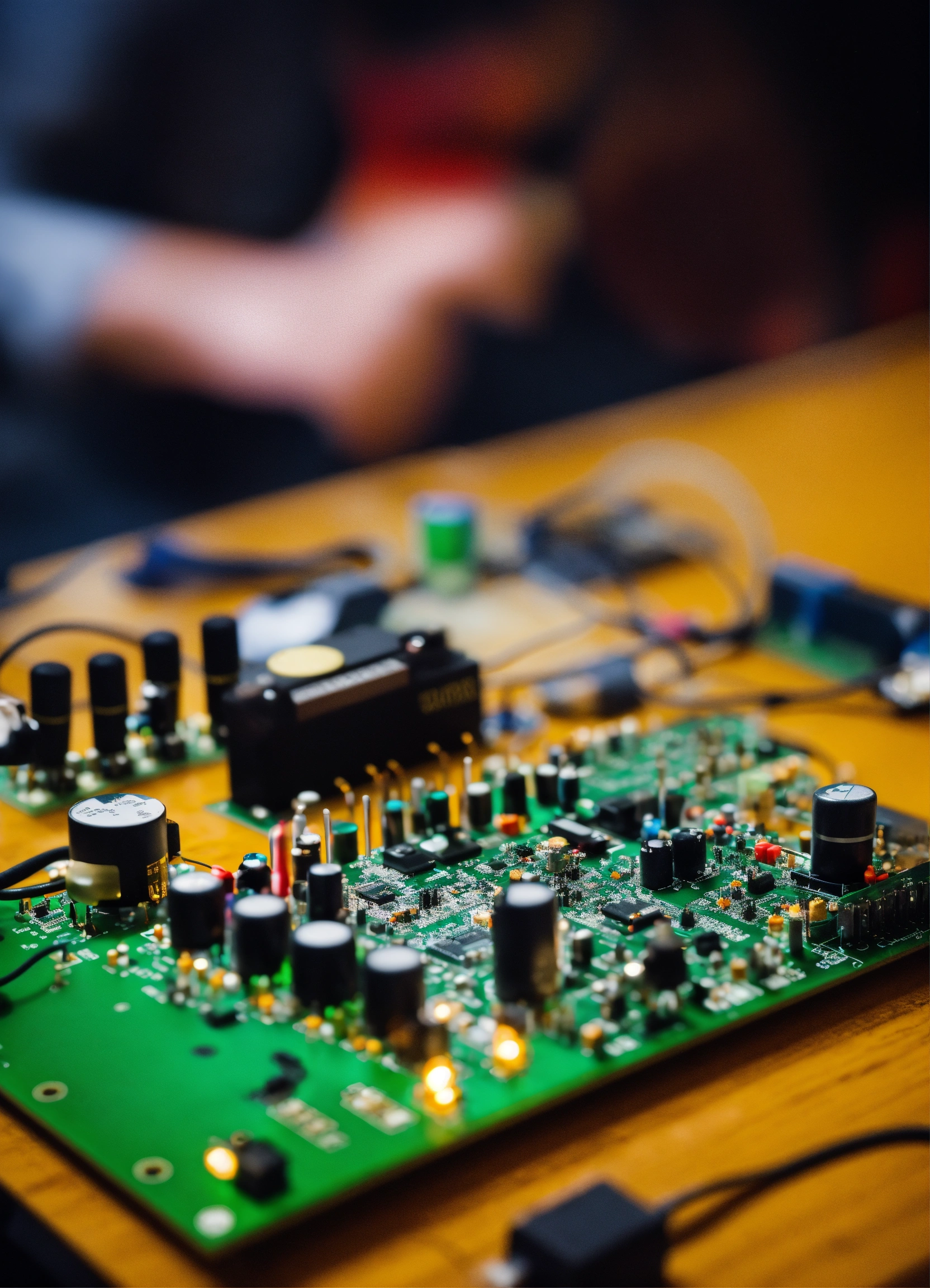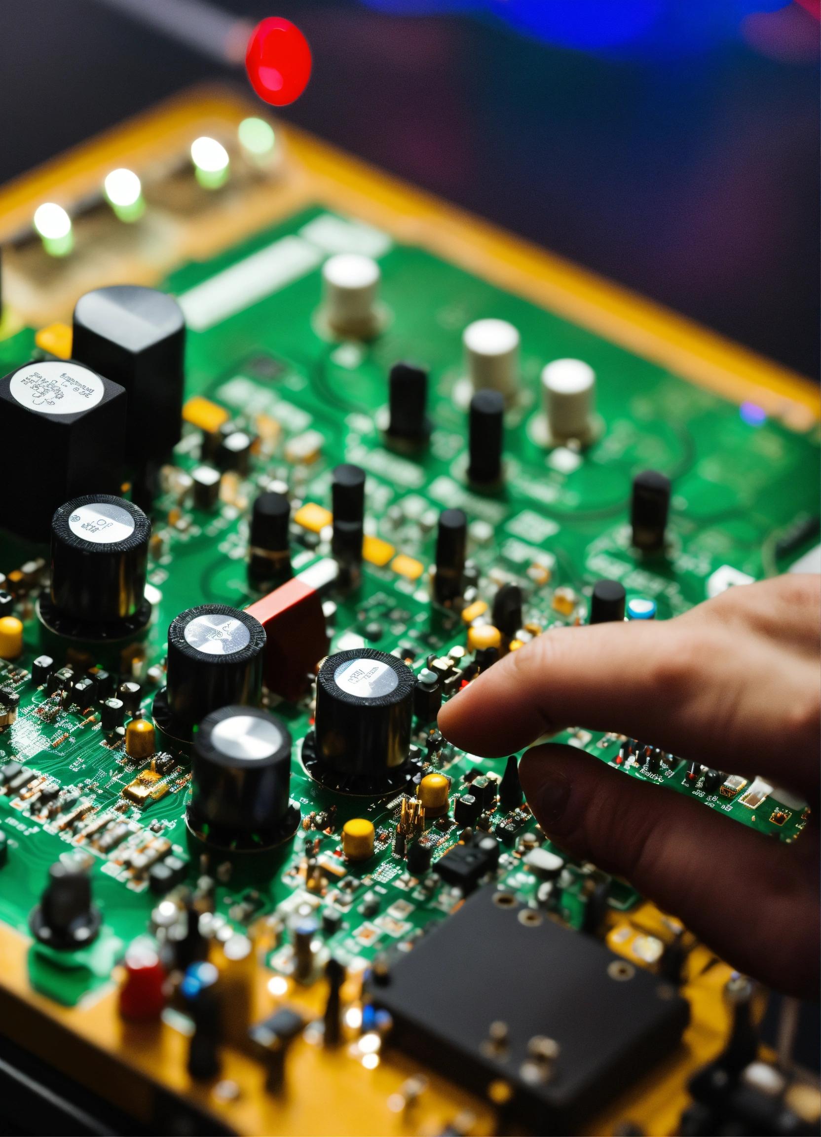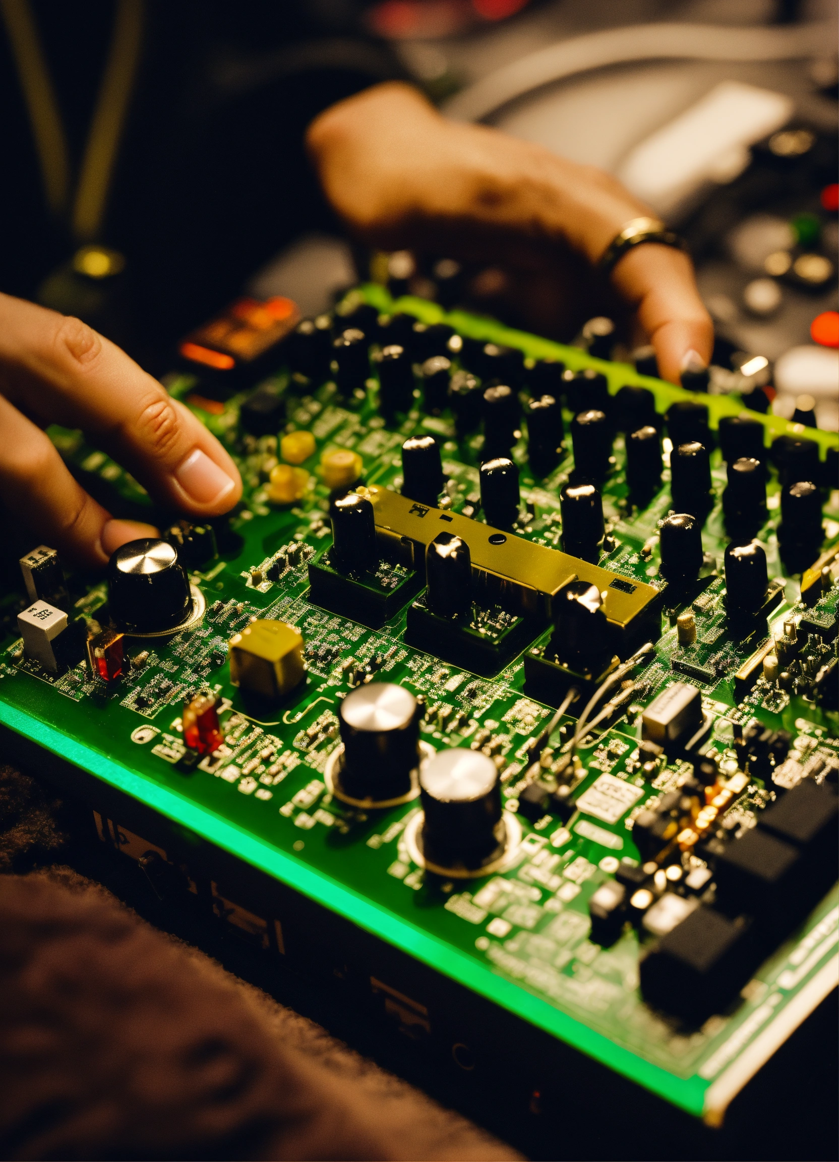 A noise synth on a pcb board with a musician playing on it