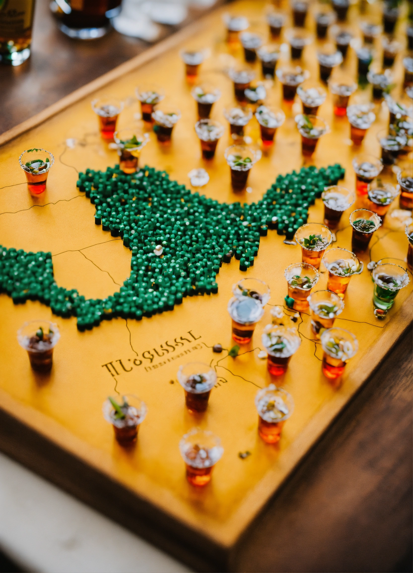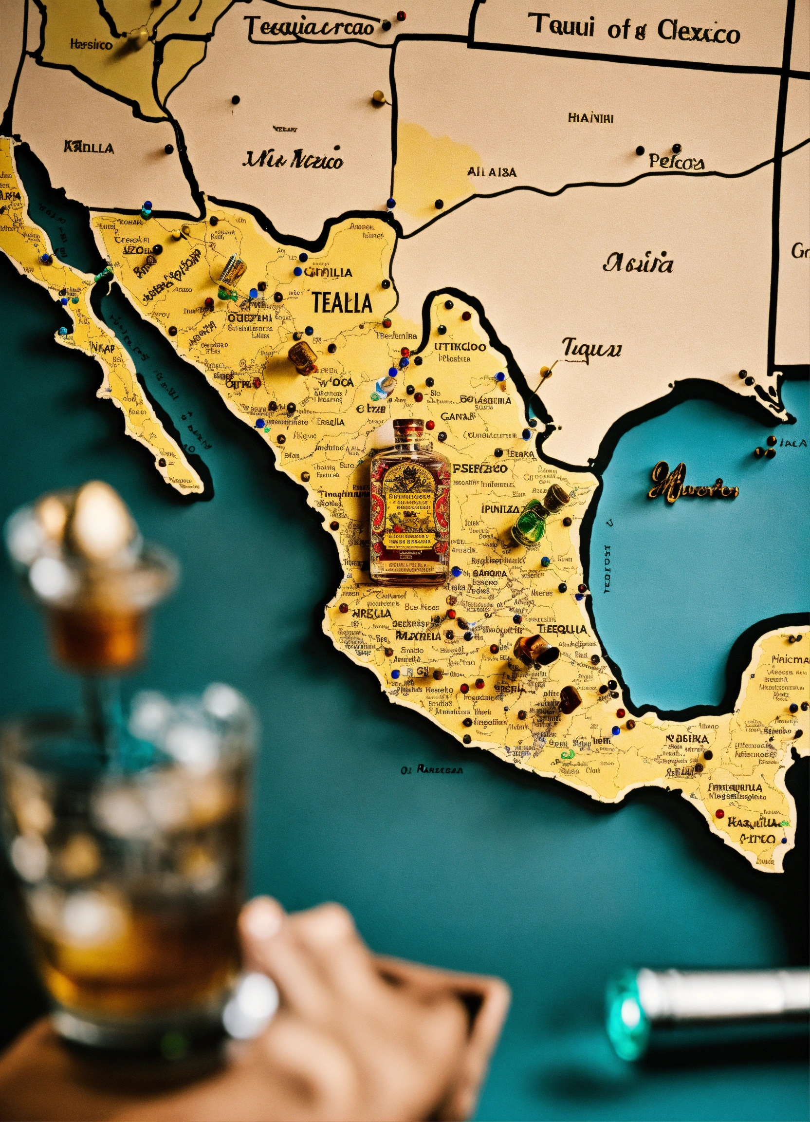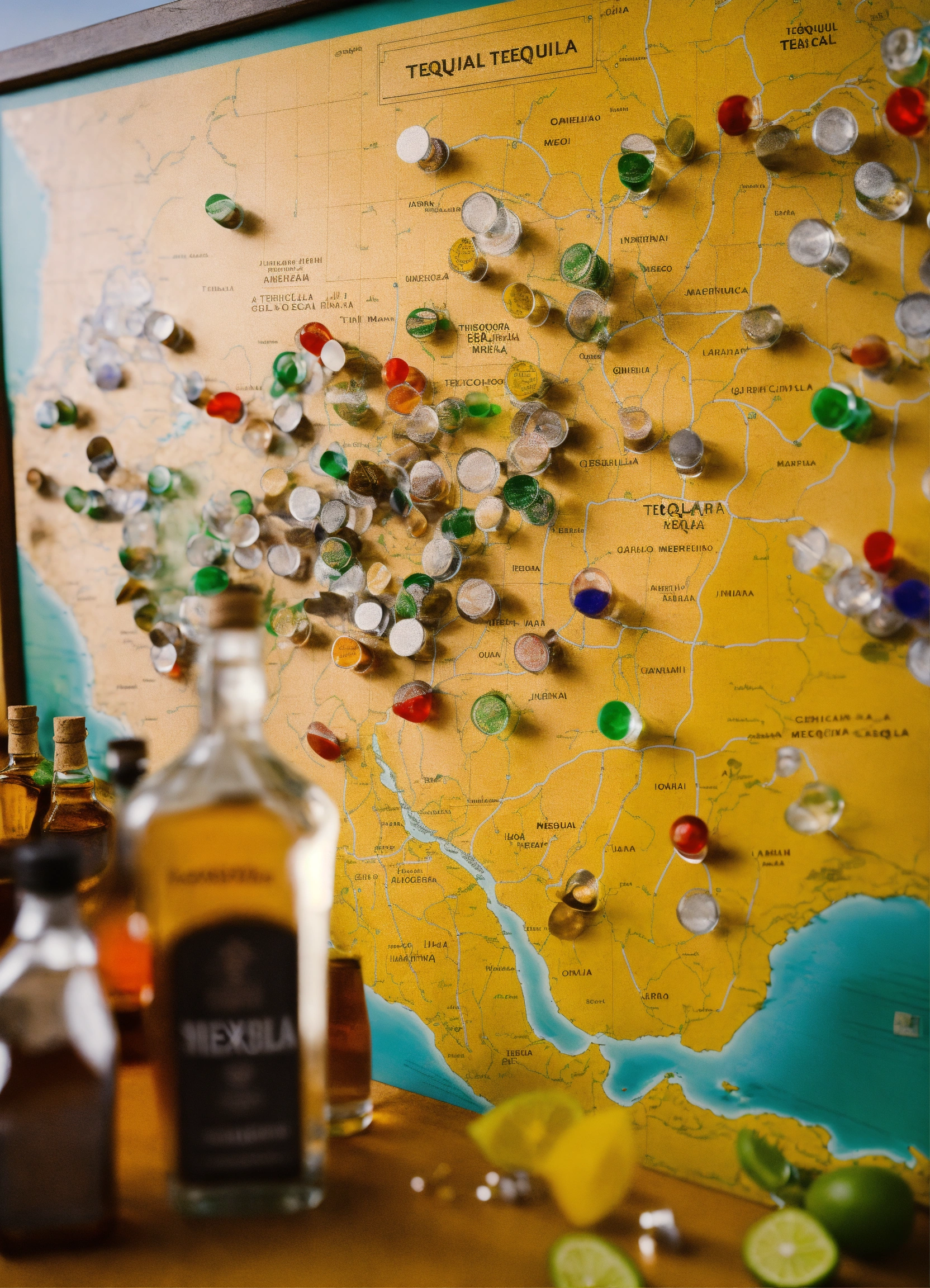 Create map of mexico with push pins as tequila shots of where tequila is grown
