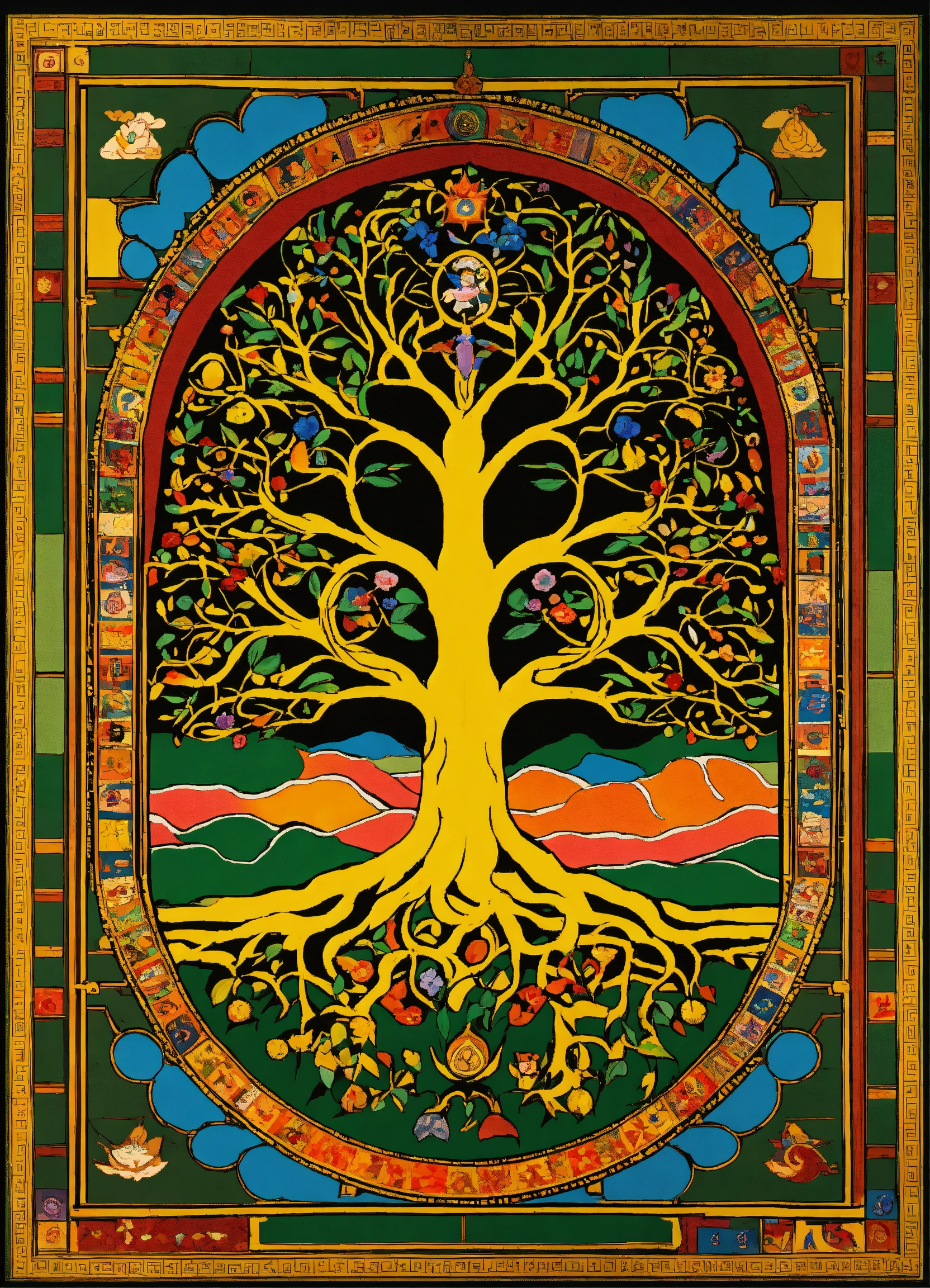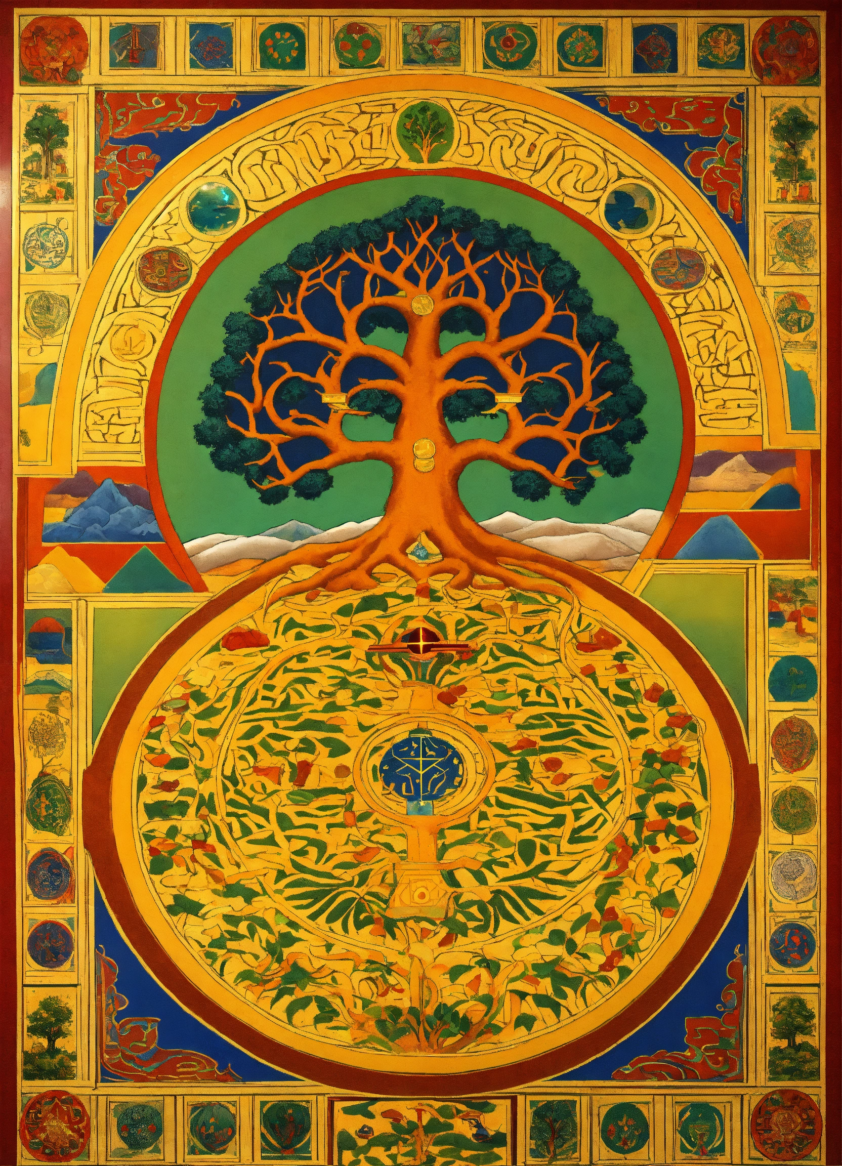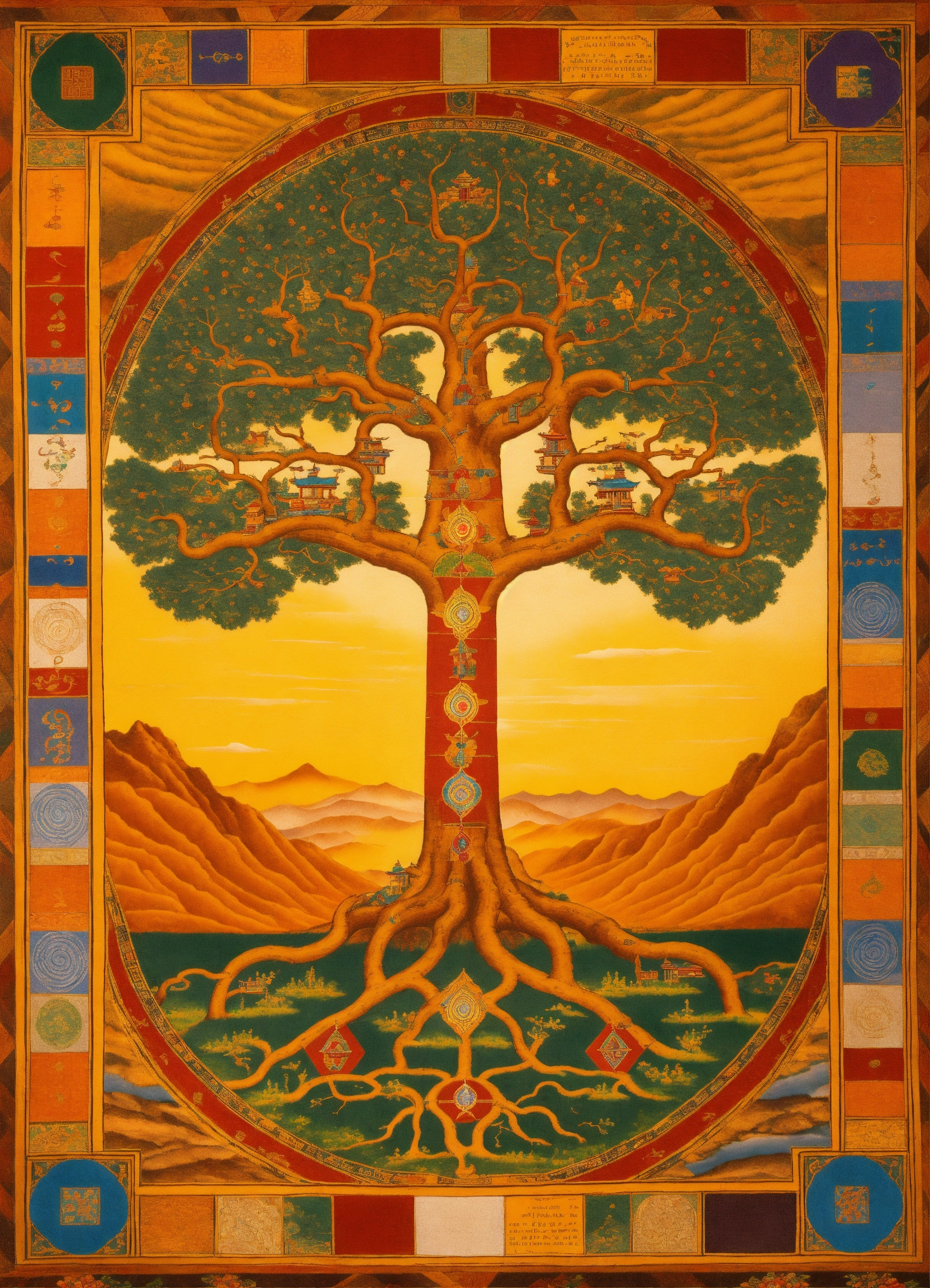 The tree of life in tibet with geometrical shape flooring