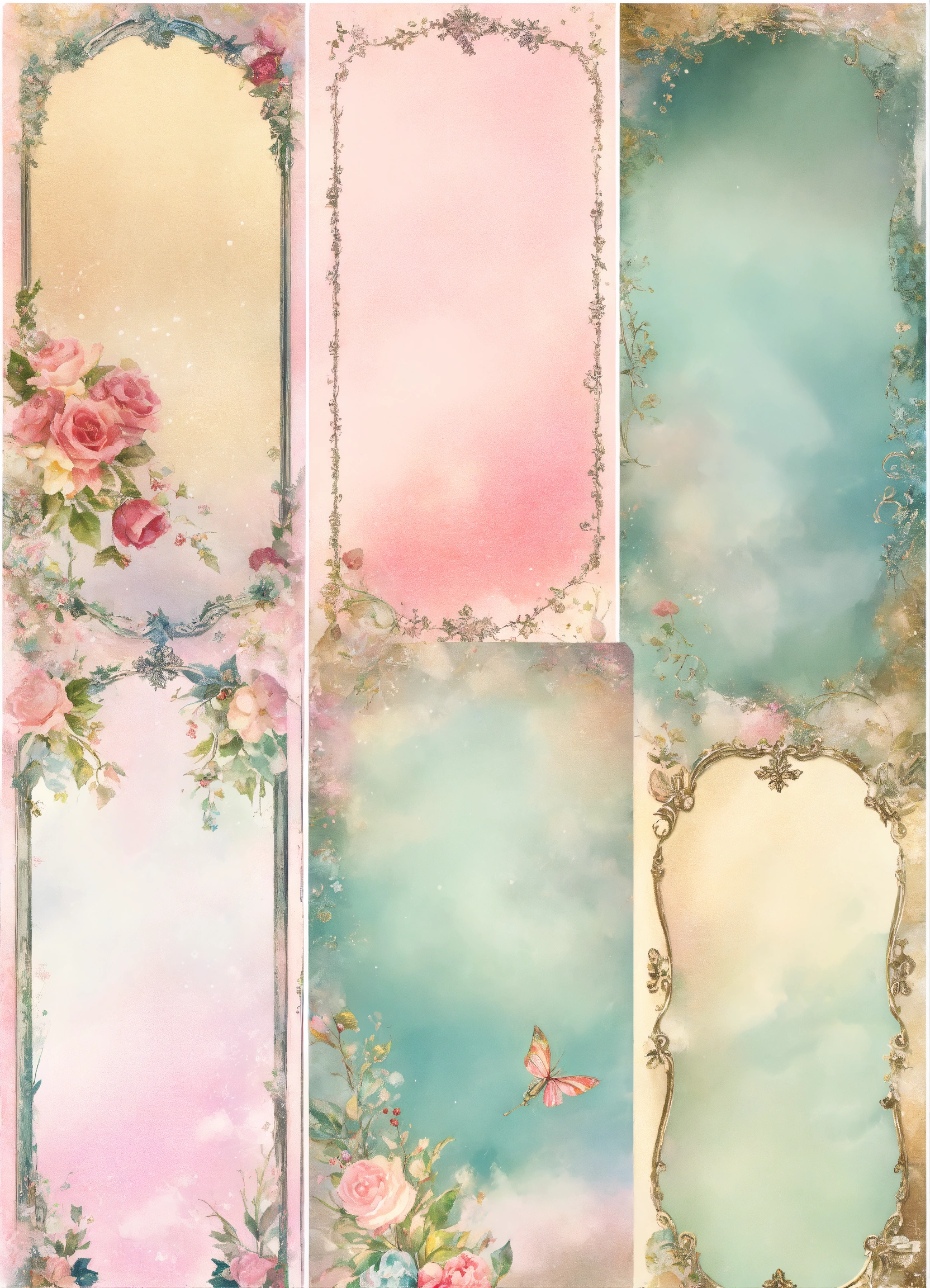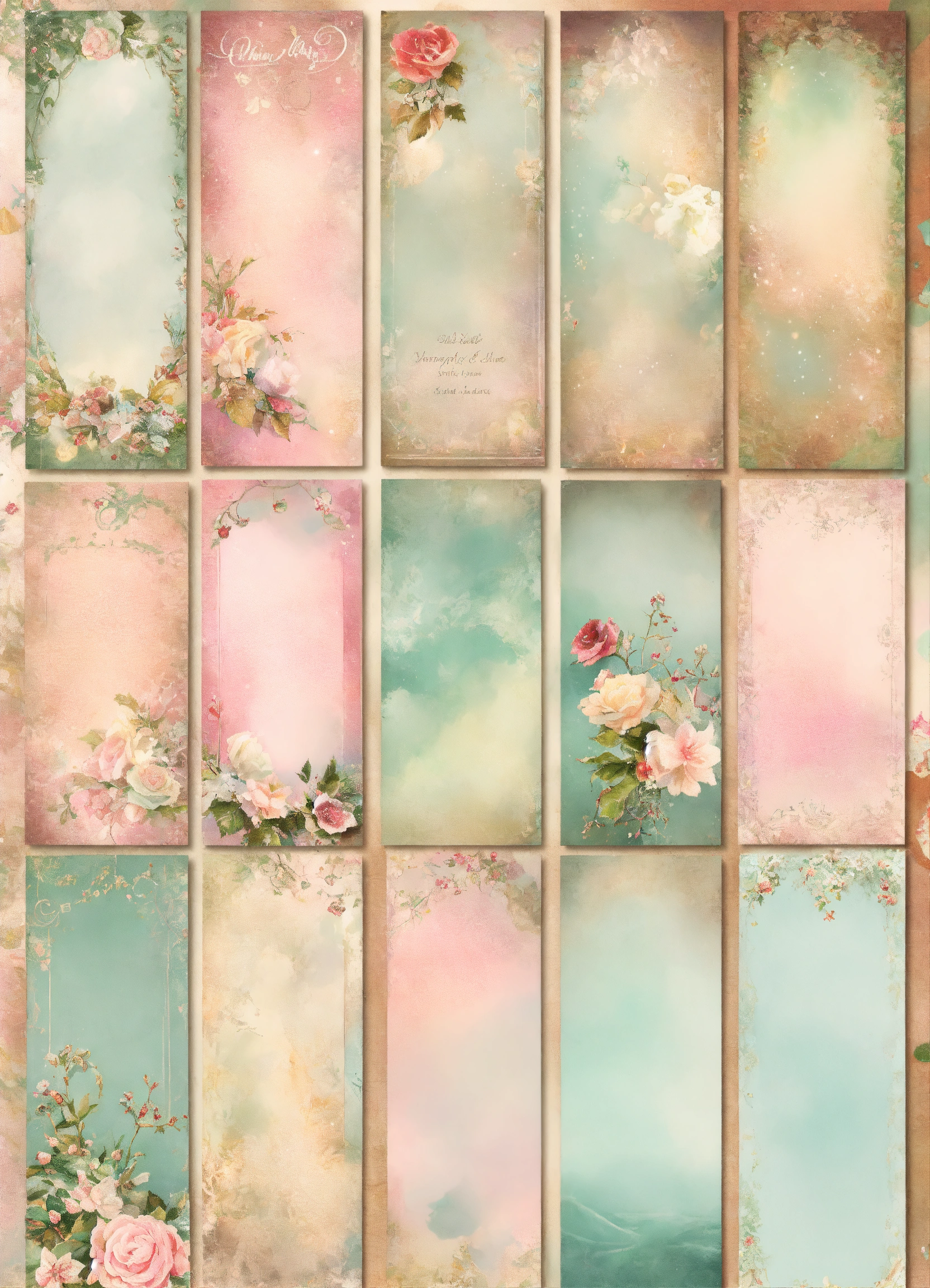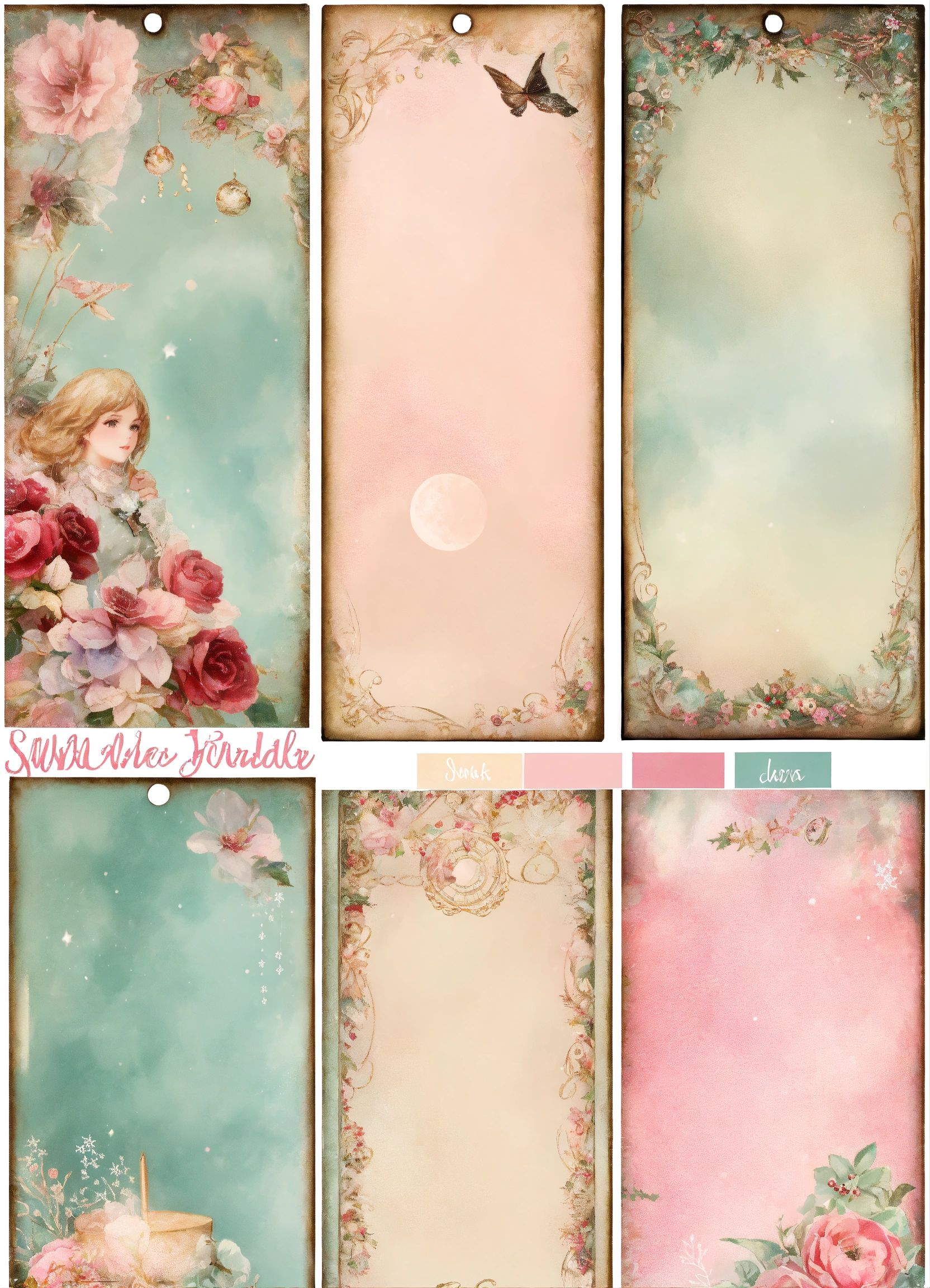 Shabby chic dreamy mist pastel junk journals winter printable bookmarks, digital collage sheet, scrapbook paper kit, vintage ephemera tags, festive holiday label, santa junk journal swirling magical fairytale abstract art style