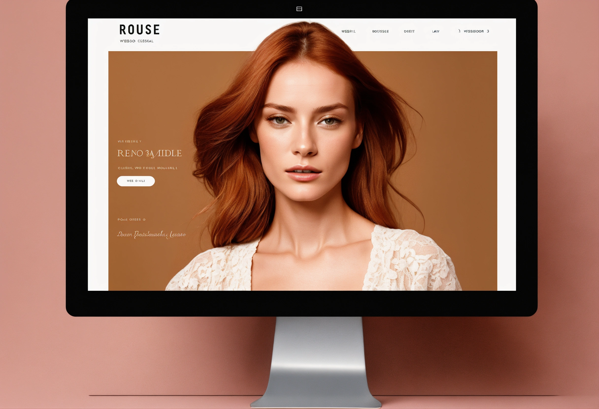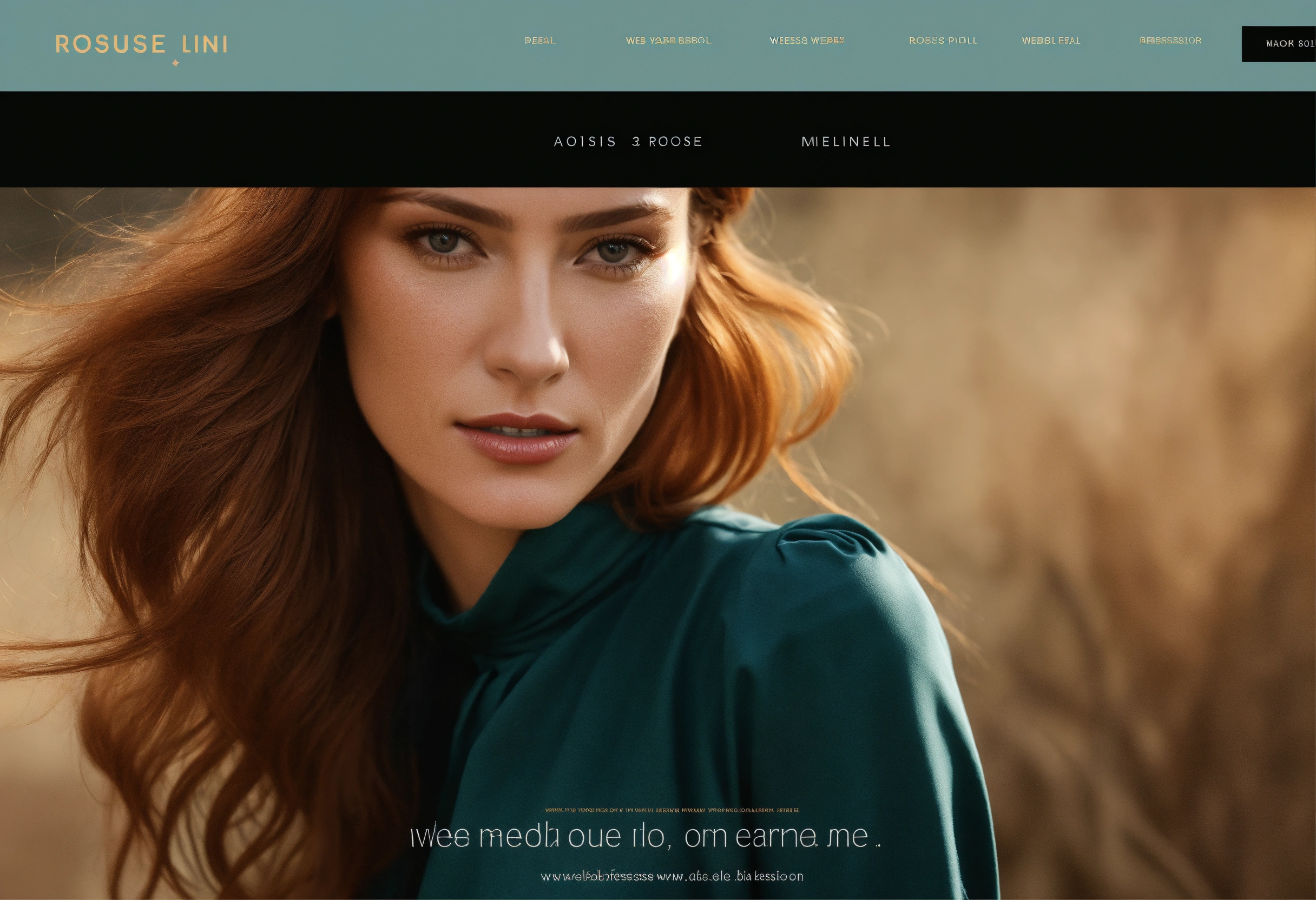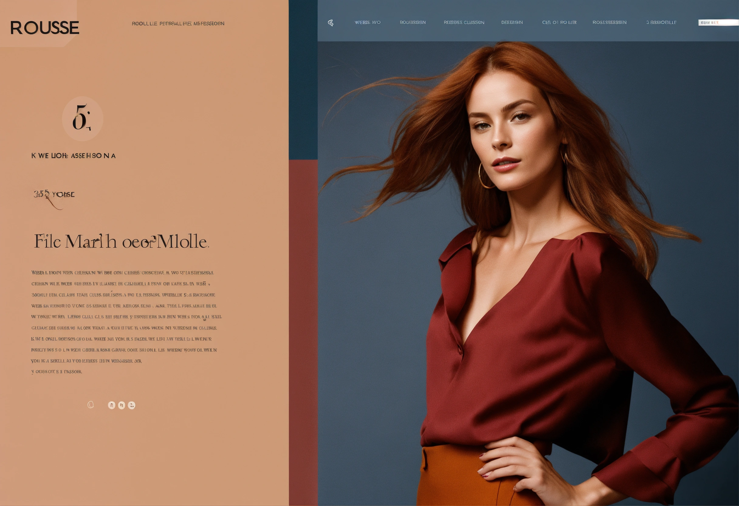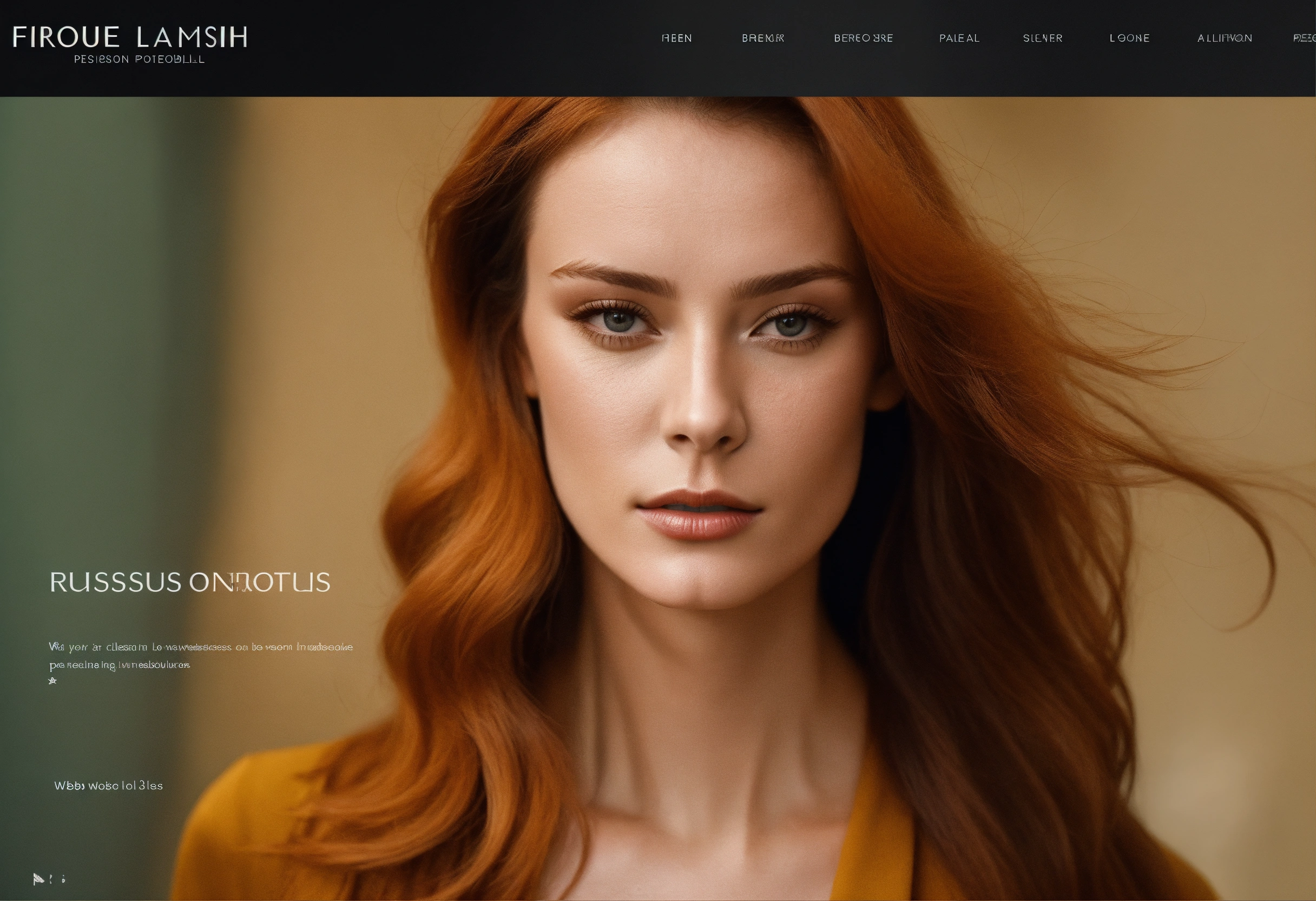 Website template, online portfolio in colors, with very classy 35 year old french actress rousse fashion model, web design model representation