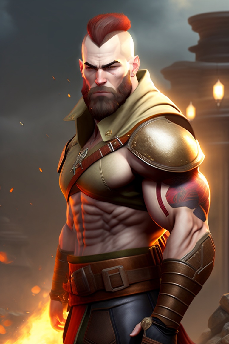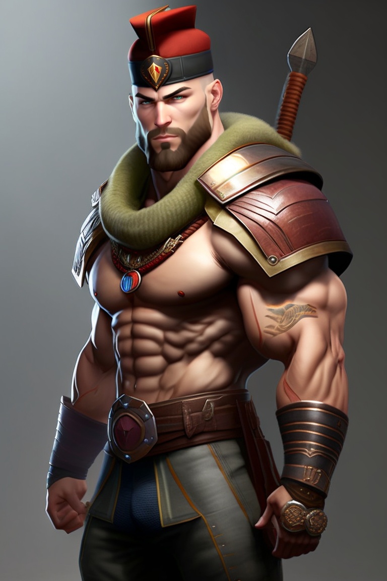 God of war, body full, forward, muscular, military hat, military shirt, military pants, military boots