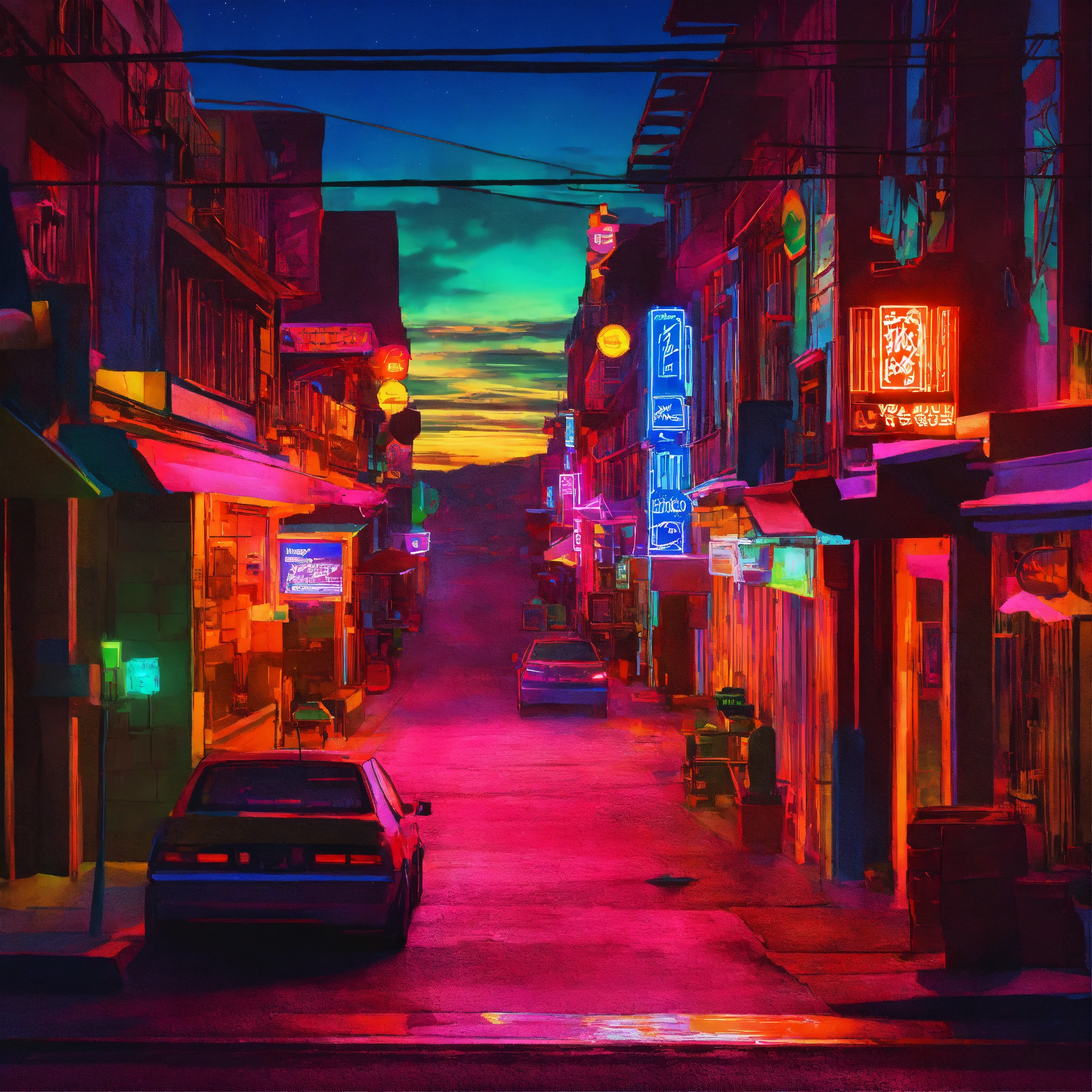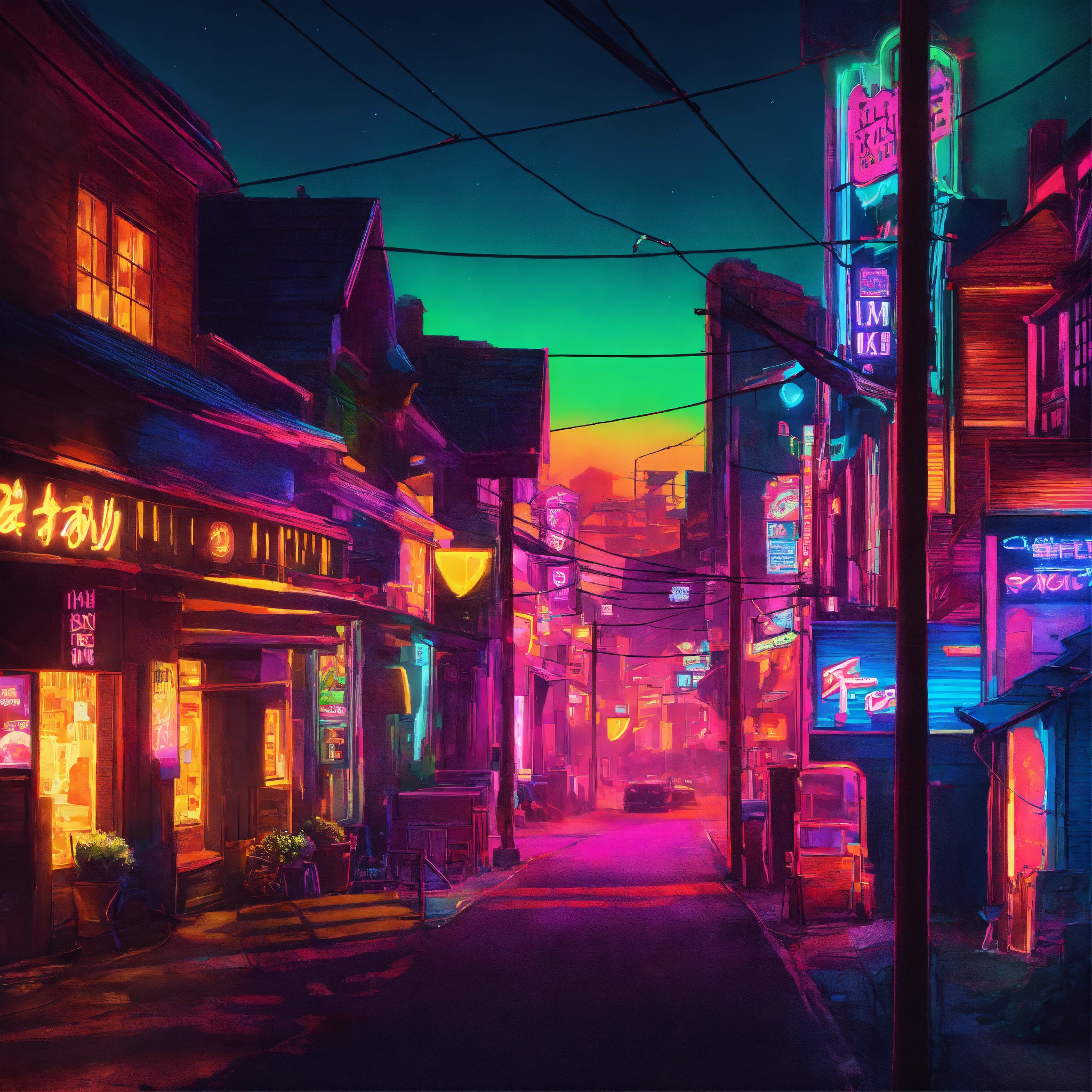 Neon-lit town