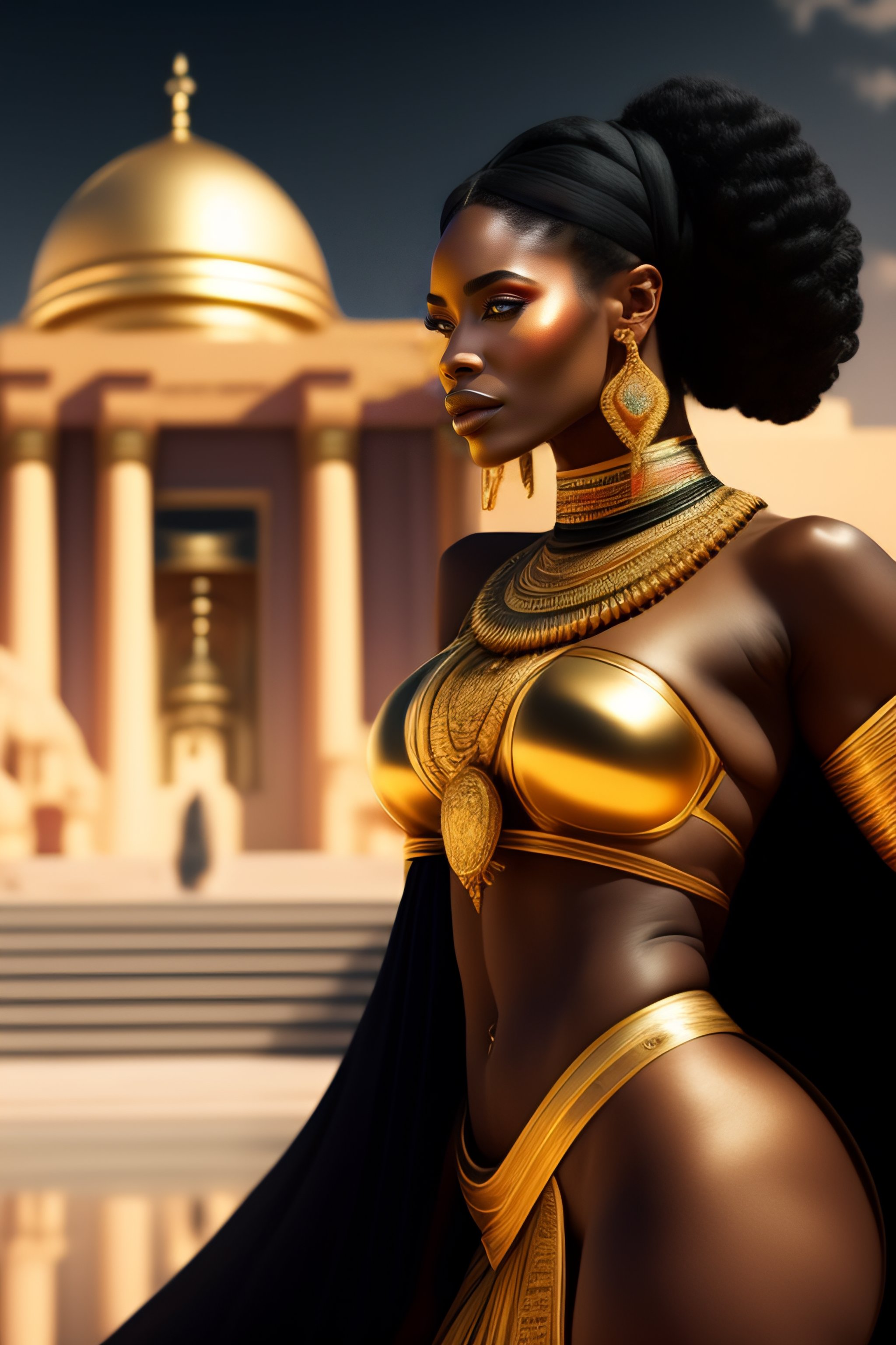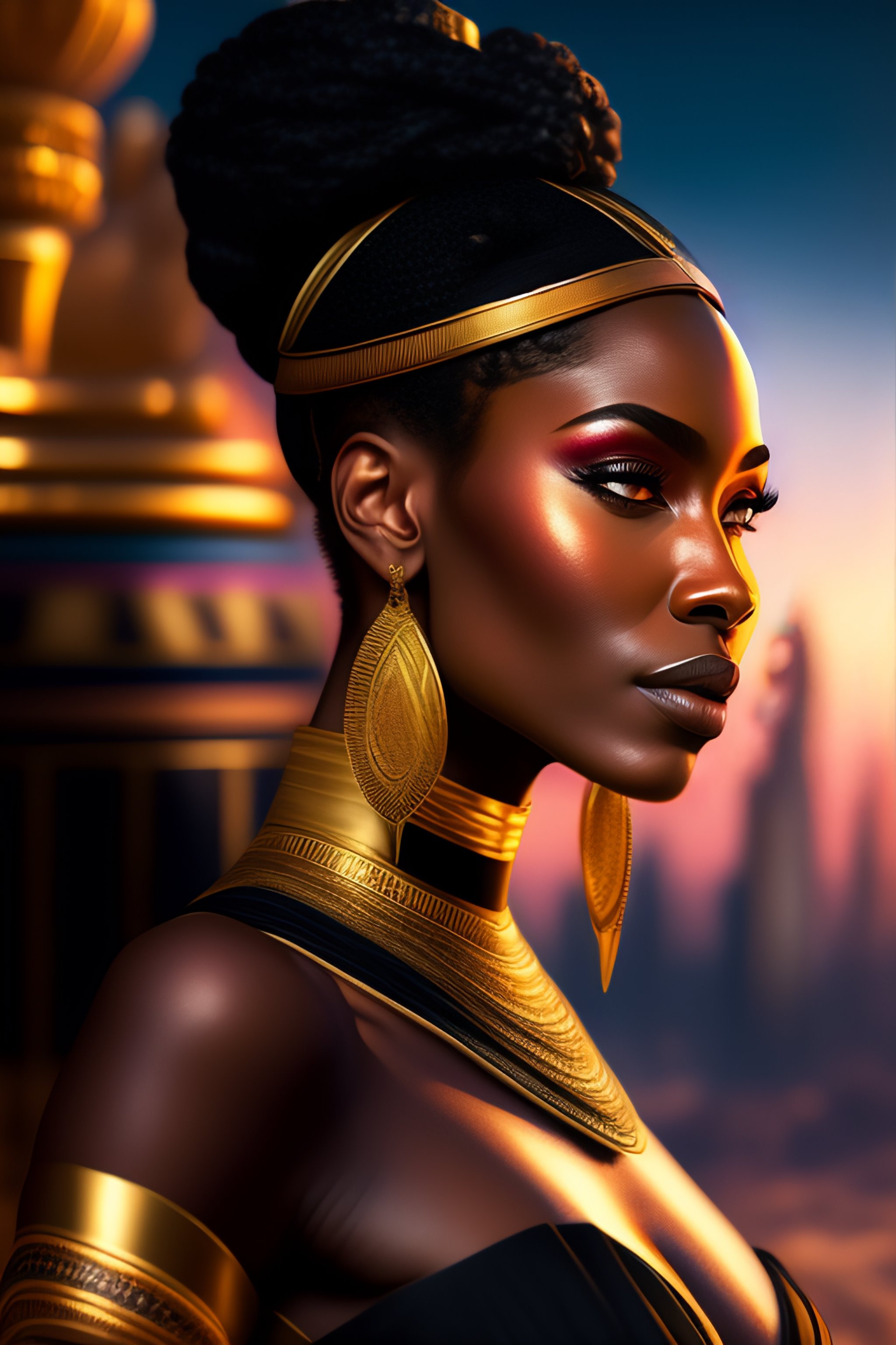 Cinematic scene of realistic cinematic, 8k, intricate, beautiful black egyptian queen embracing handsome black eyptian king with ancient egyptian city in the background, low angle, highly detailed, digital painting, artstation, concept art, smooth, sharp focus, illustration art by artgerm, and greg rutkowski and alphonse mucha and gustav klimt and ilya kuvshinov