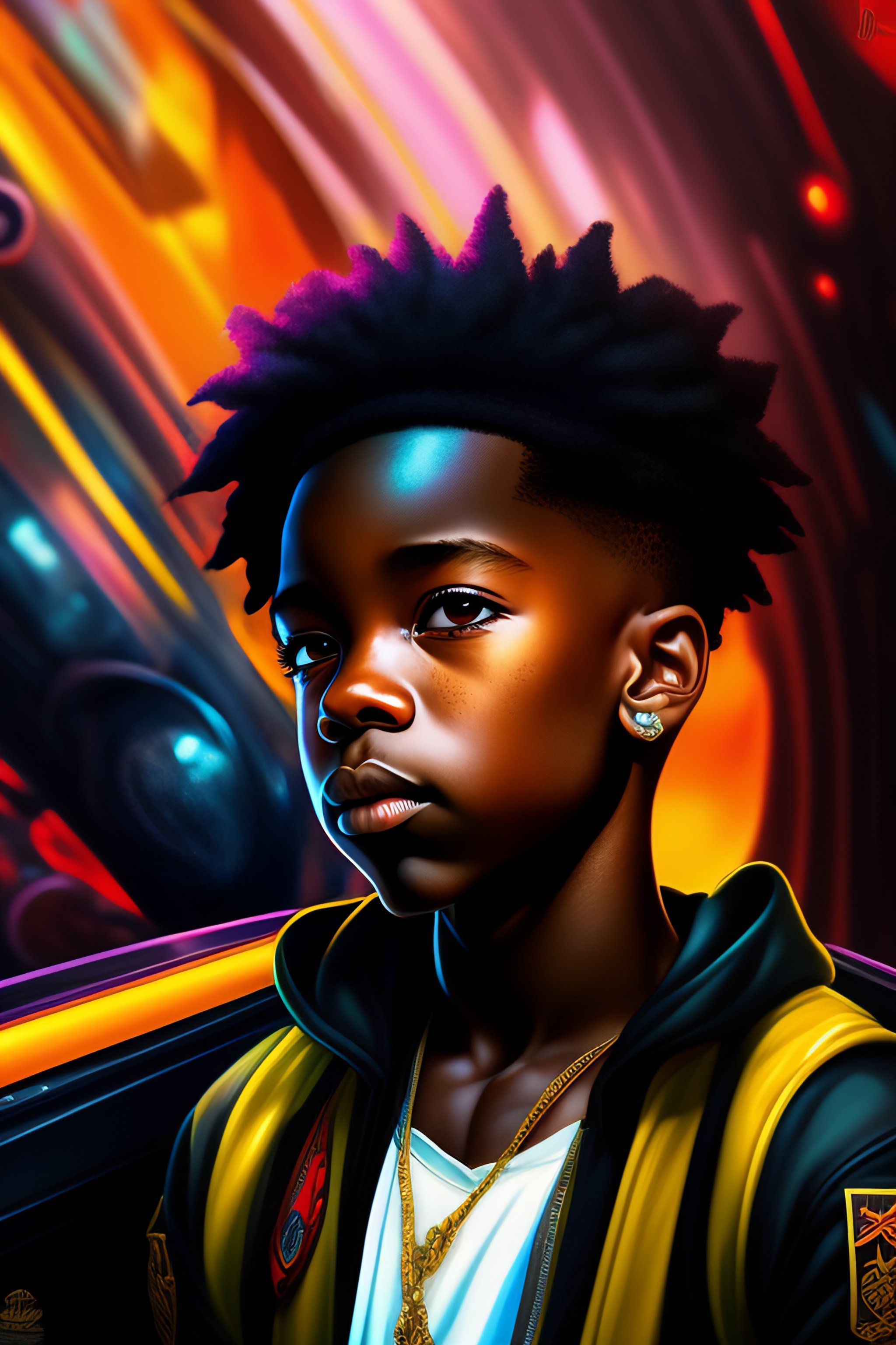 A boondocks style art of very black skin anime darkest boy, detailed maximalist interior cockpit, hyperdetailed, by john blanche