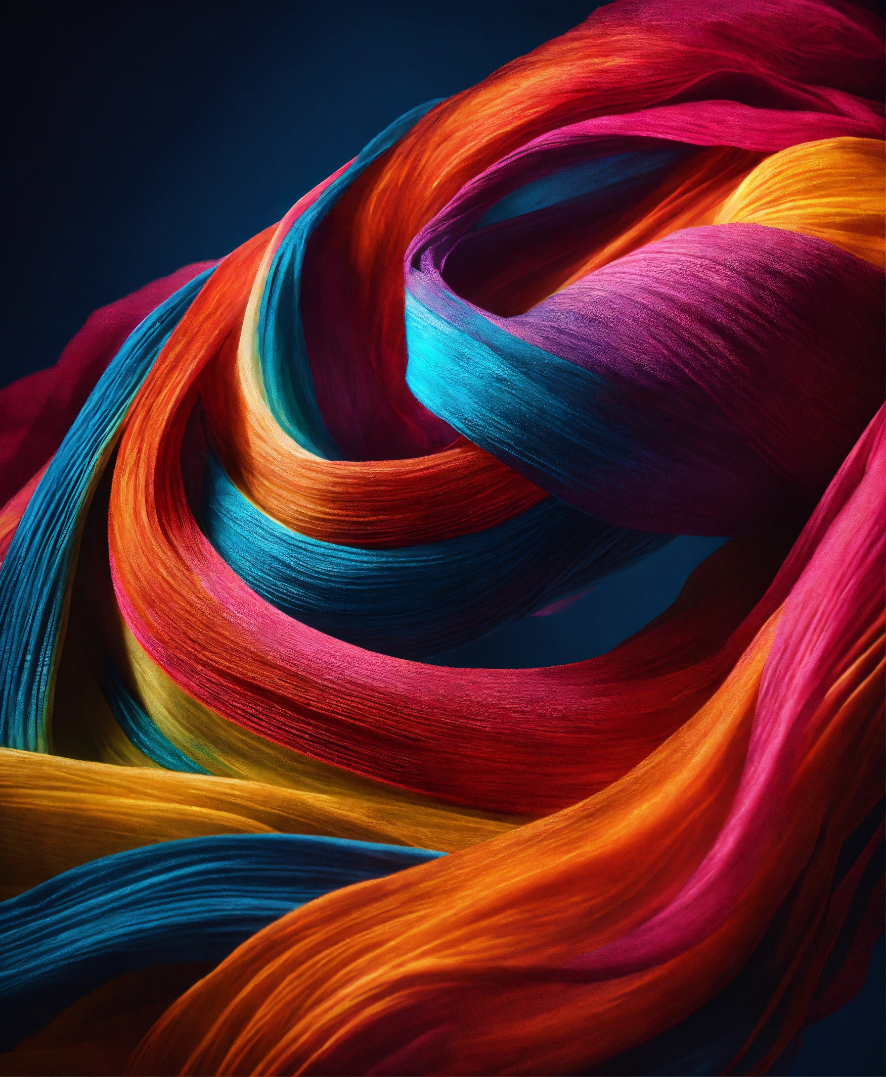 Create a close-up image of clothing items with a visualized trail of scent represented by wavy, glowing lines emanating from them, with soft studio lighting that accentuates the textures and vibrant colors.