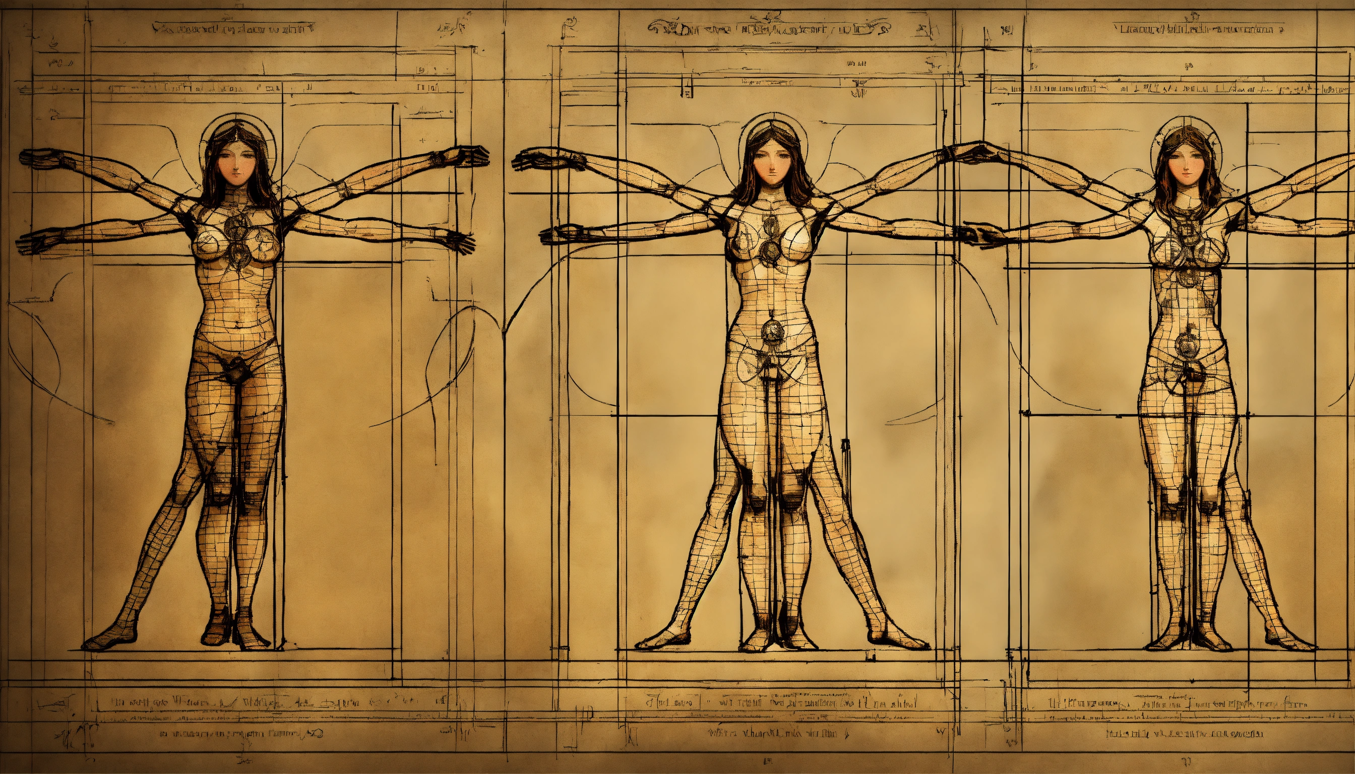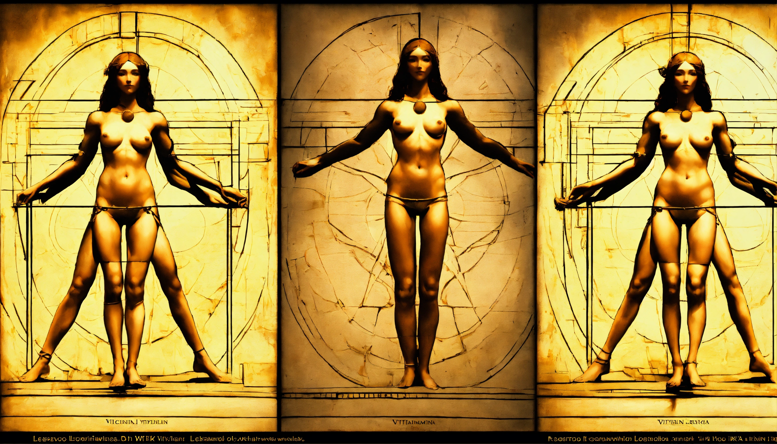 Vitruvian women, leonardo da vinci style, very close to the original but with a woman, lot of details, 8k, detailed body