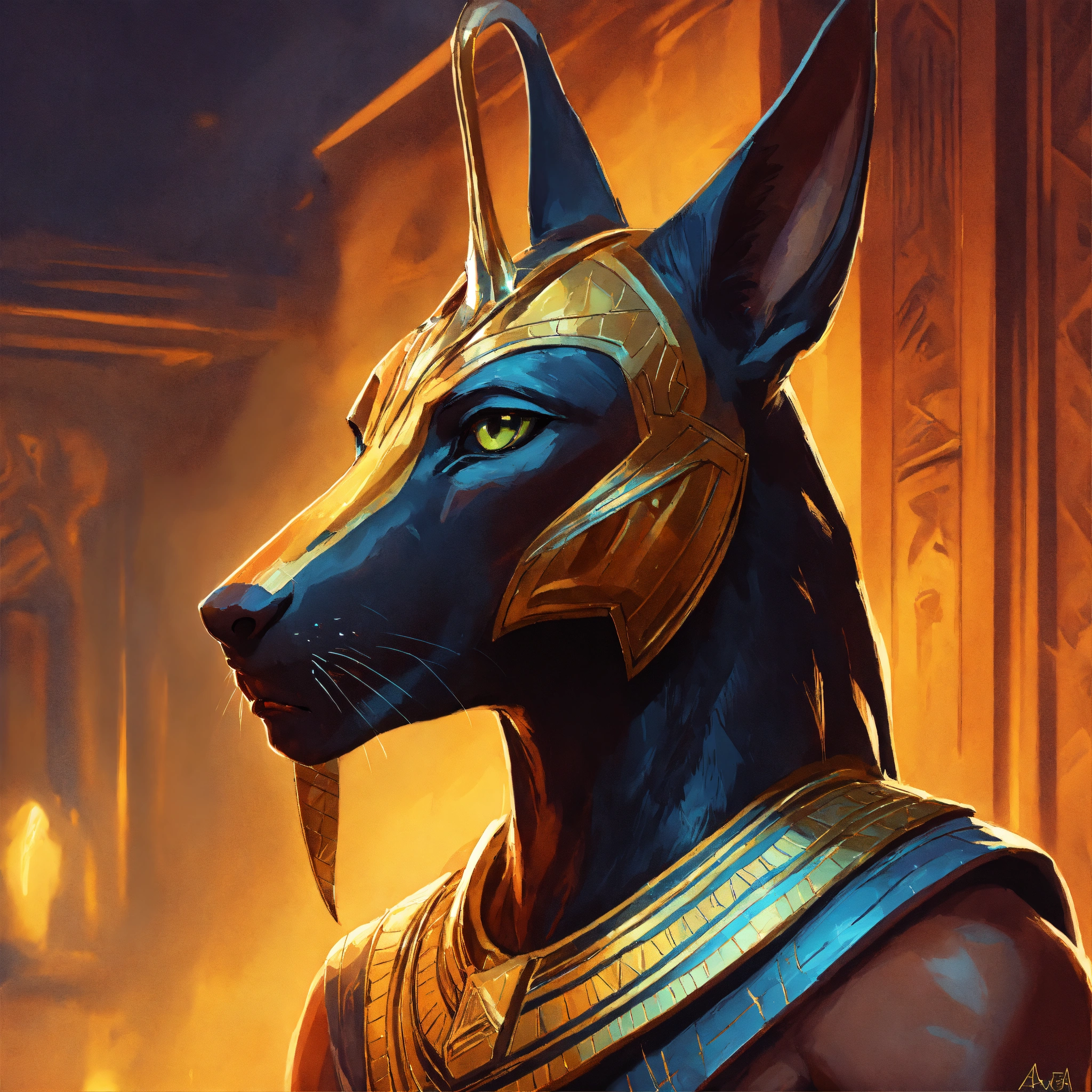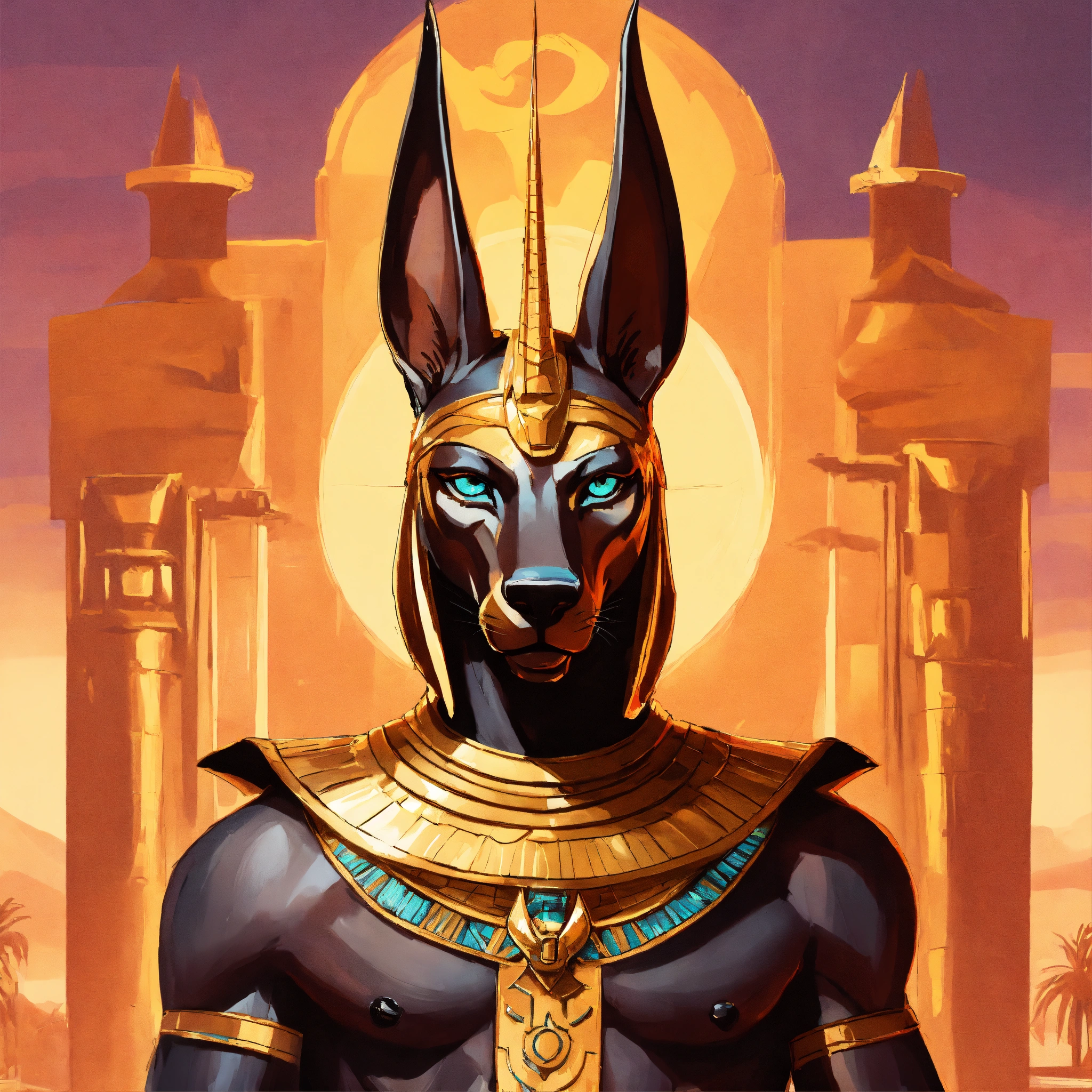 Anubis, from the movie gods of egypt, cartoon oil paint, 2d illustration style, sharp focus, bright color, digital paint character design, trending on artstation, high details, simple lines, retro art, art by argem