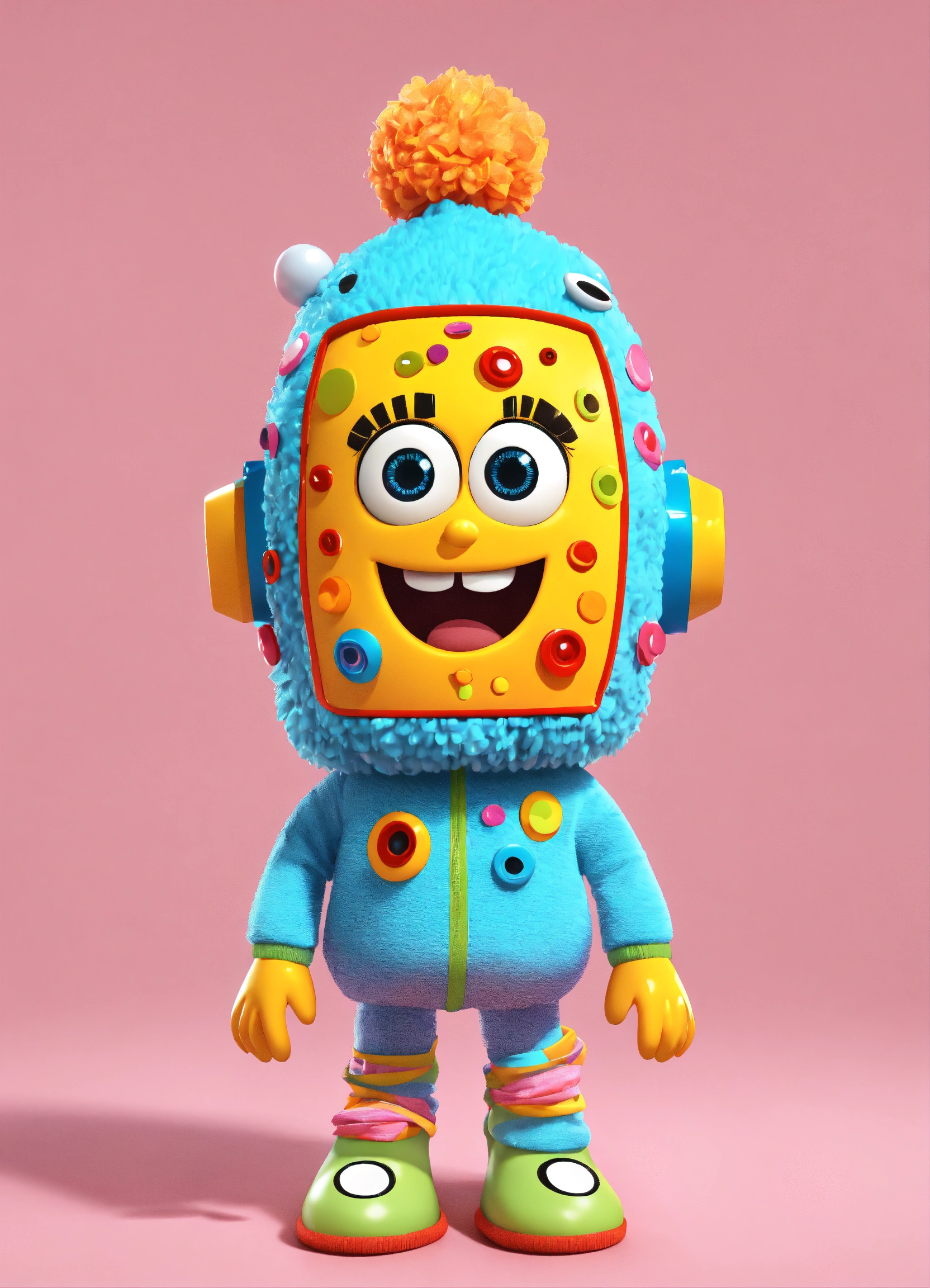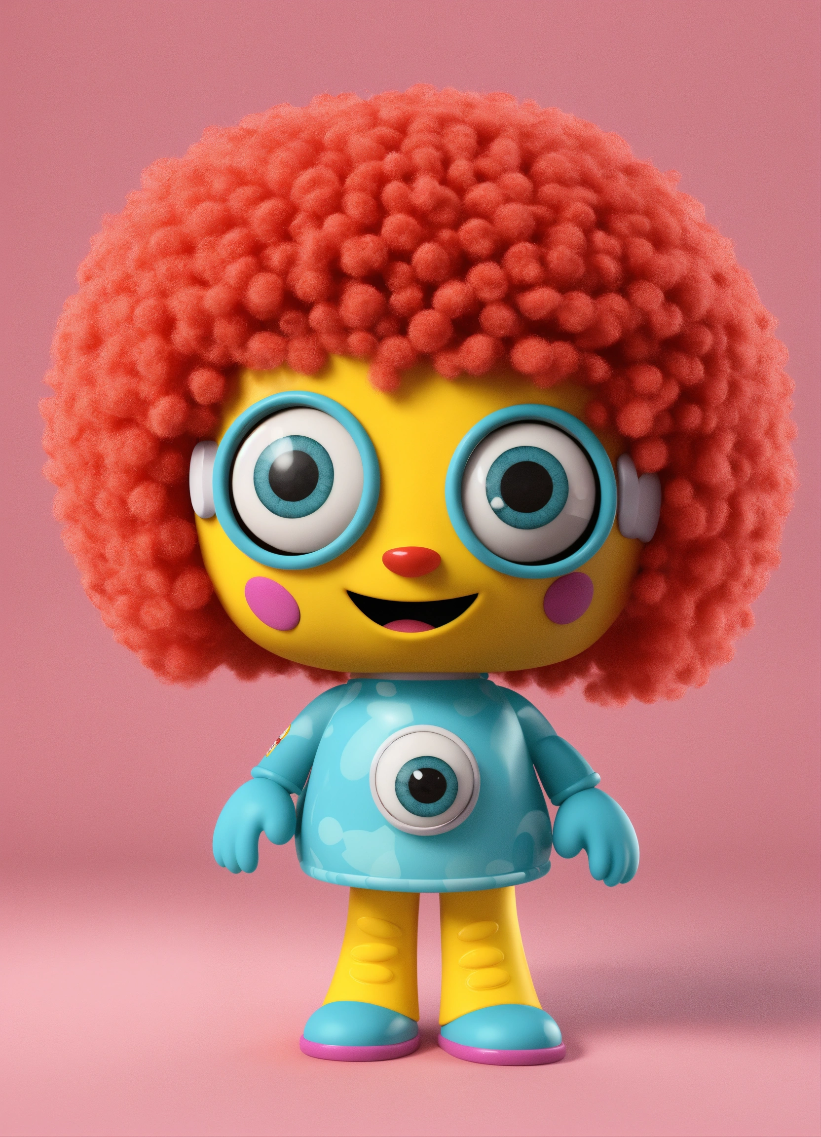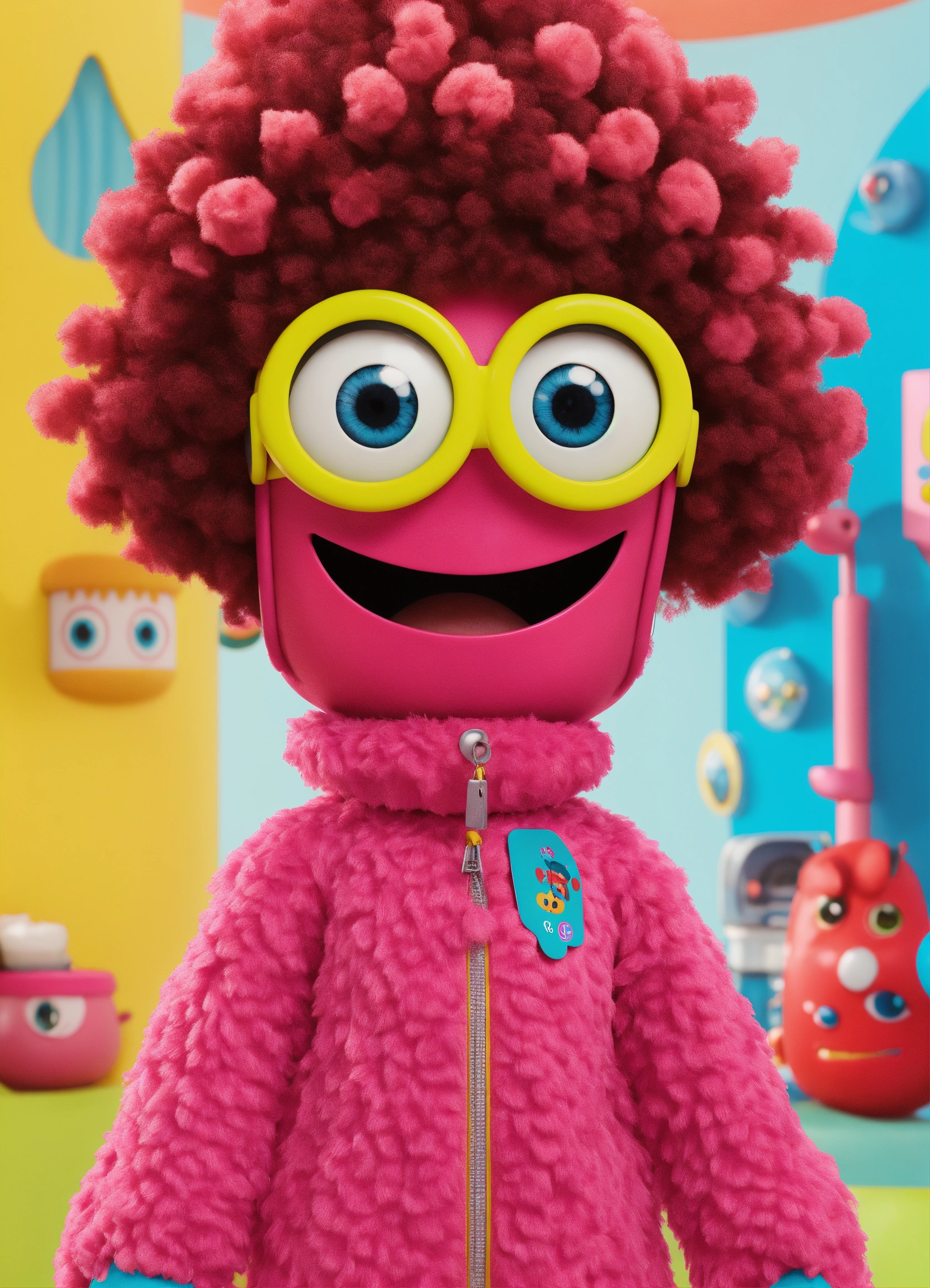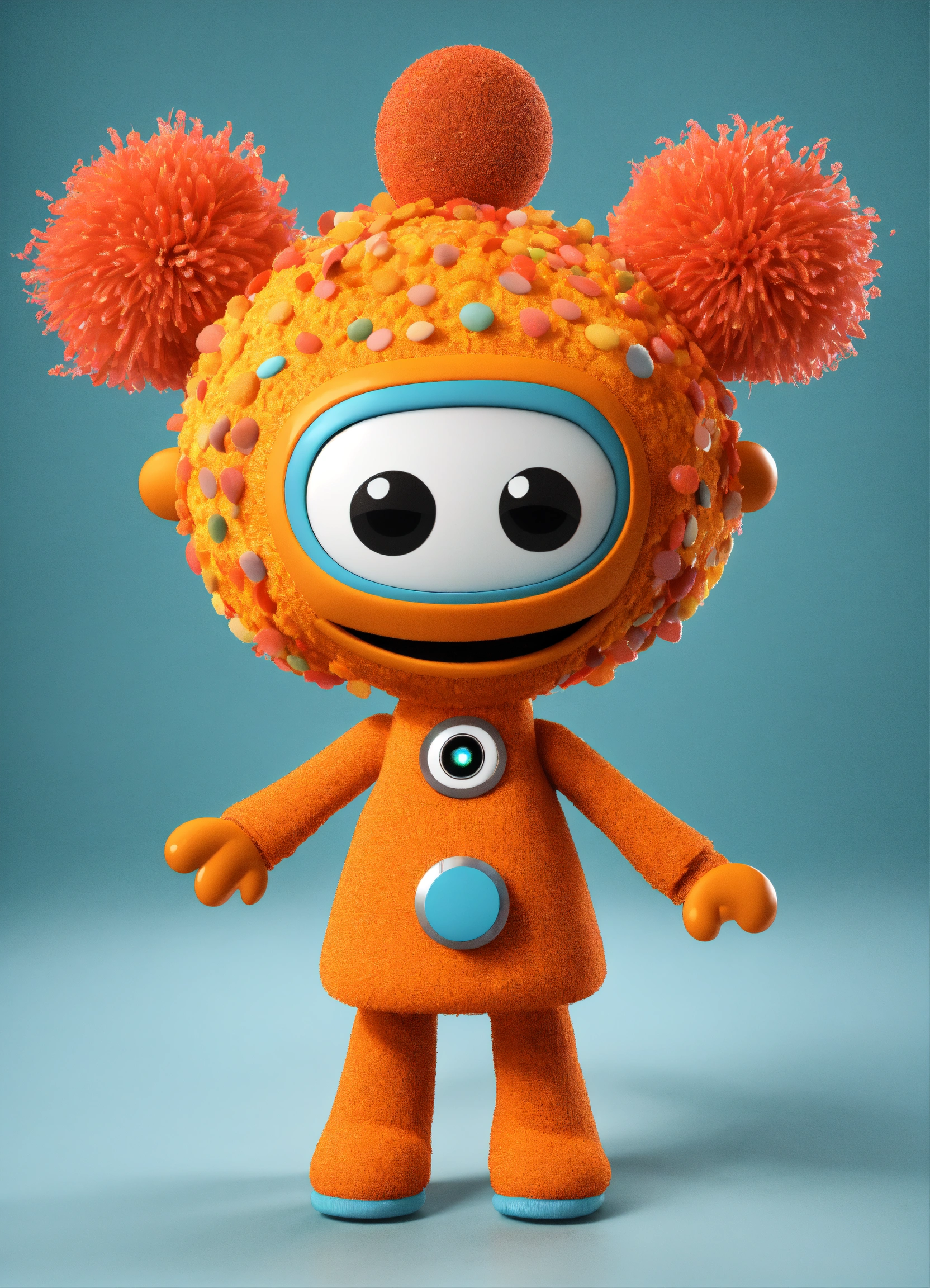 Create a cute yo gabba gabba female character with cute eyes, playful looking in front of the camera and smiling in 3d