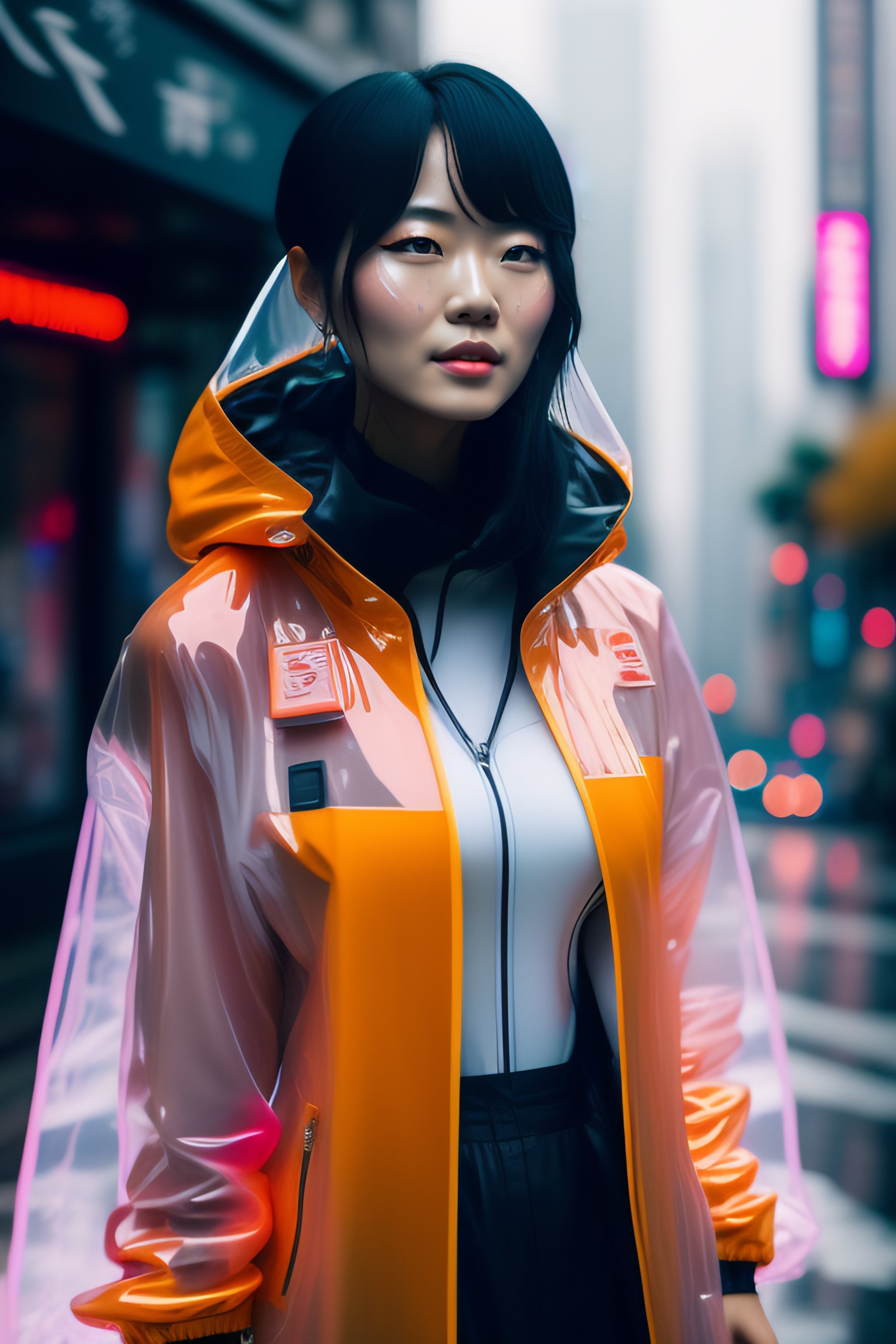 Kaori from akira wearing transparent raincoat