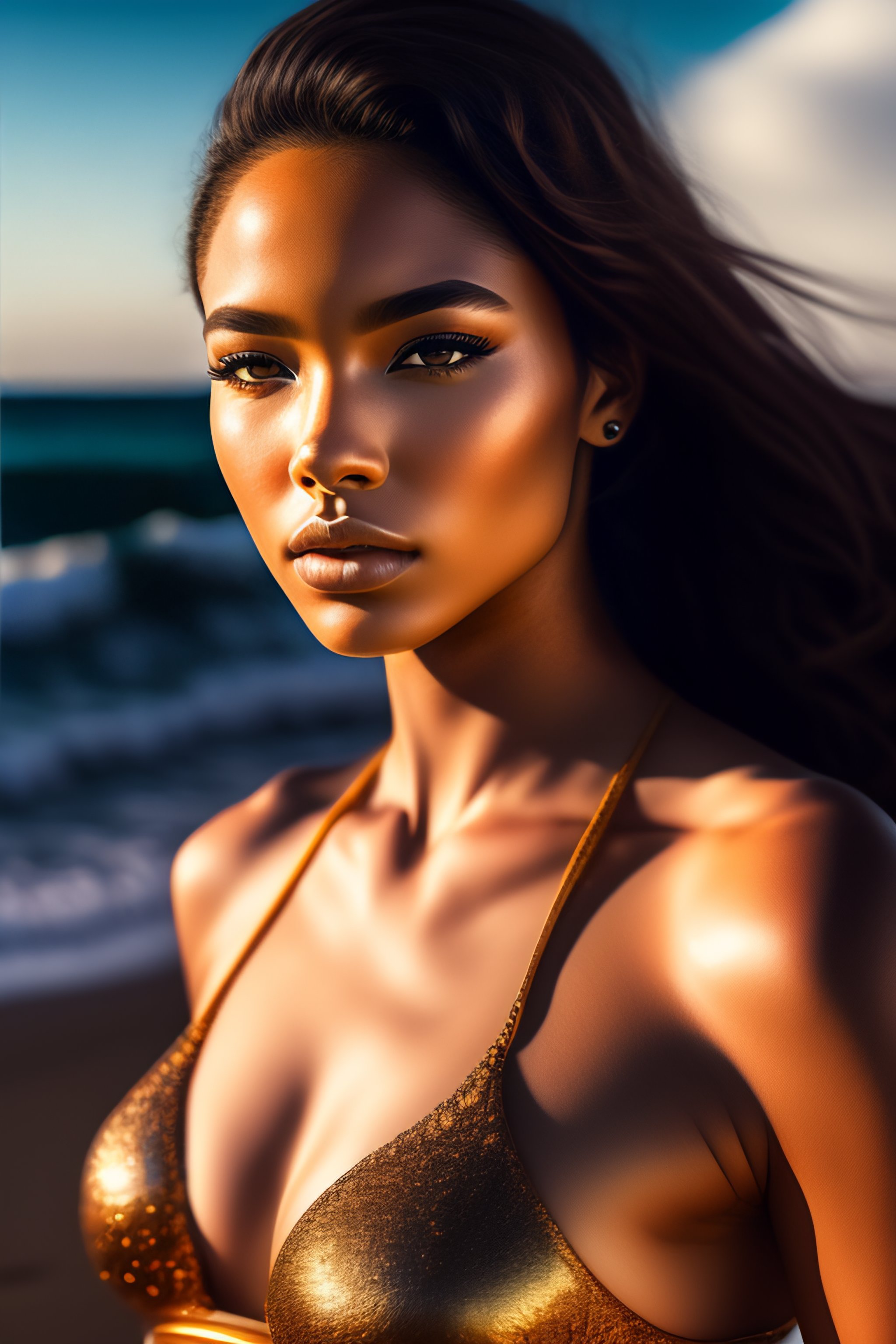 Wlop style 18 years old girla beach, telephoto, 5d, 32k, studio lighting, insanely detailed and intricate, hypermaximalist, elegant, ornate, hyper realistic, super detailed
