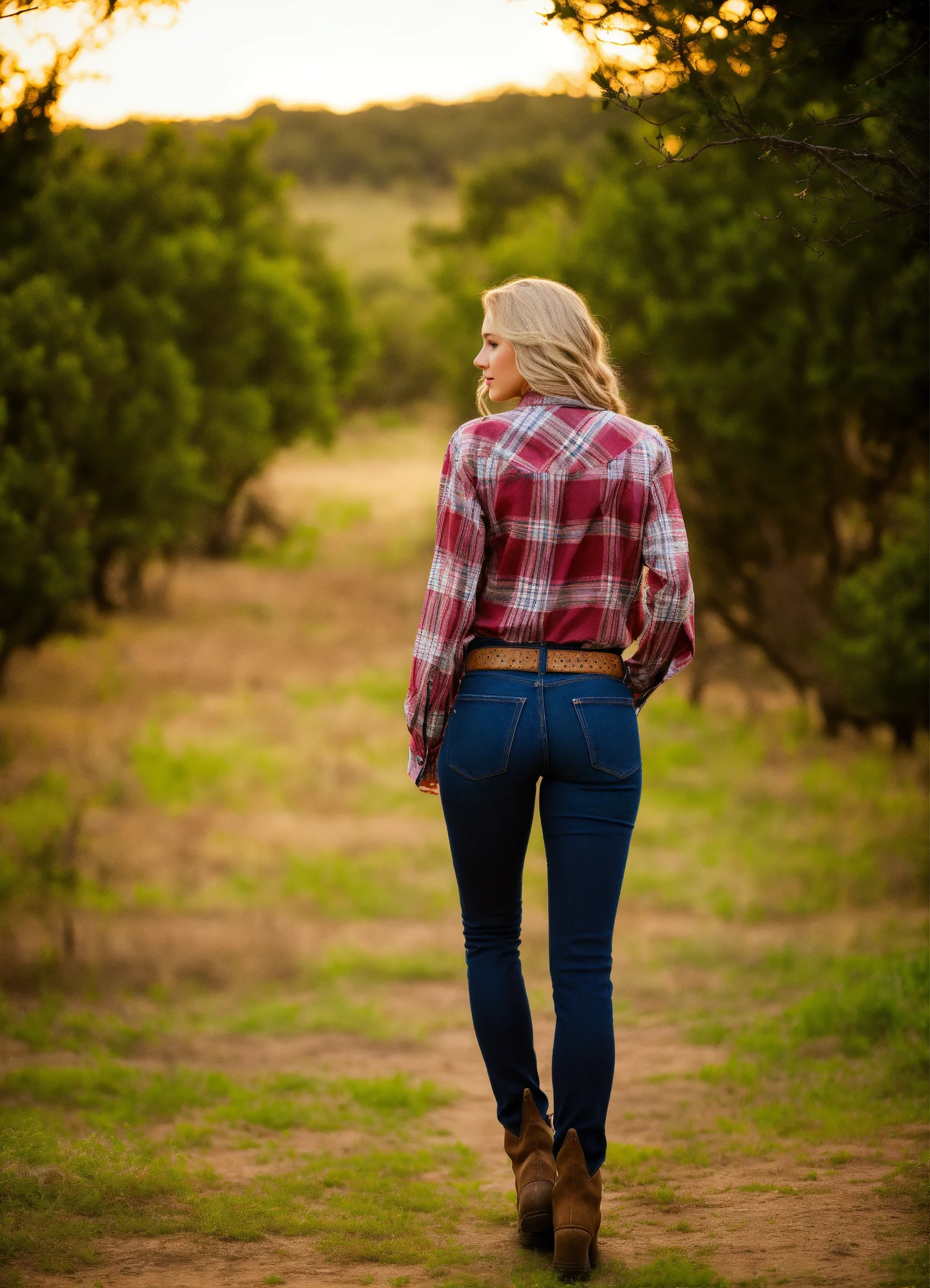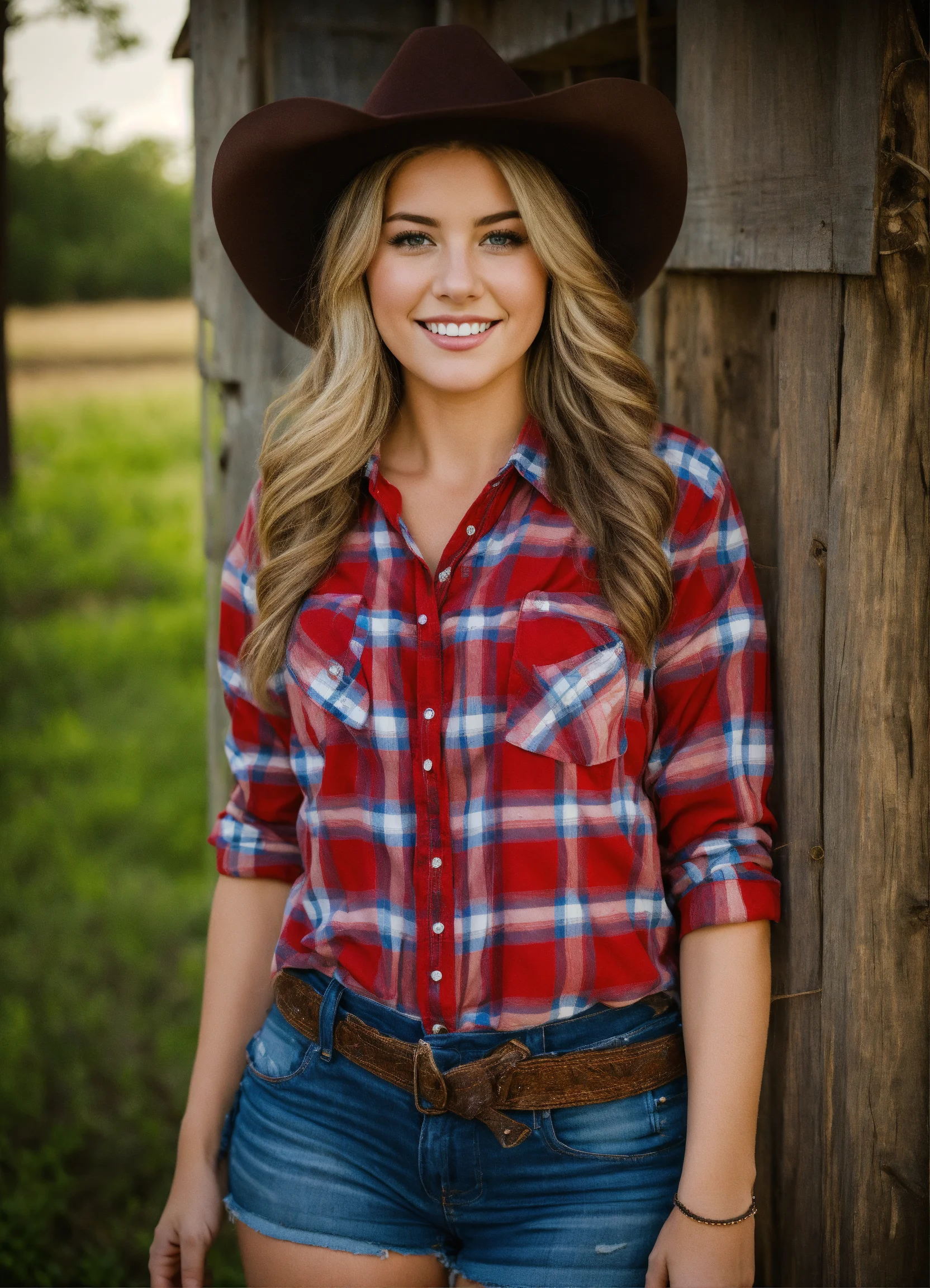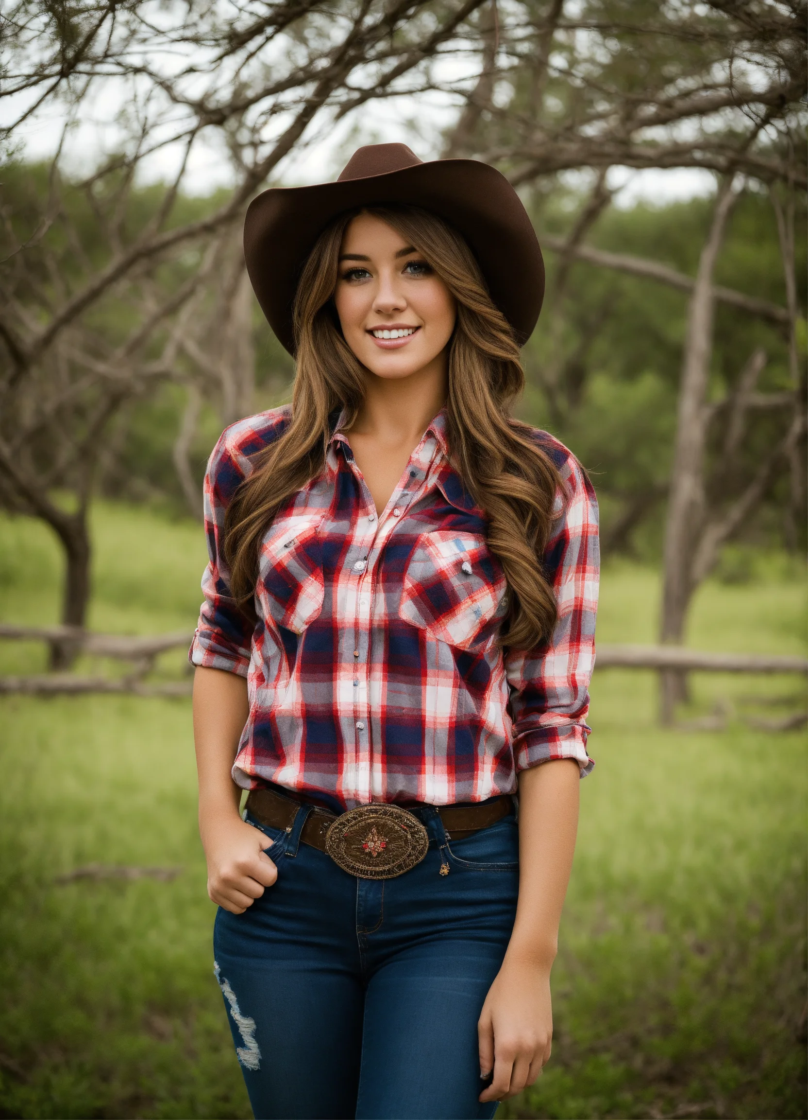 Texas country girl wearing a plaid shirt