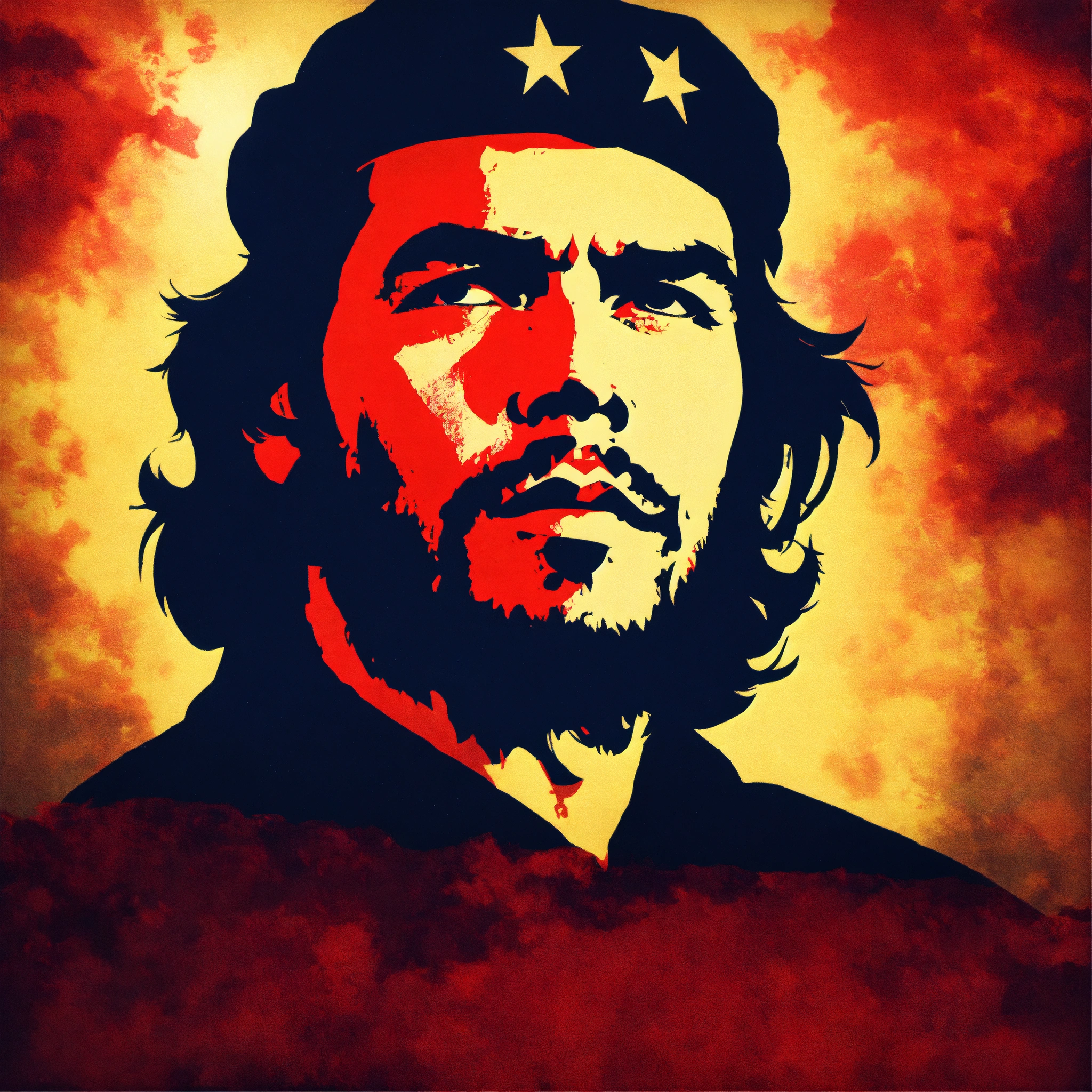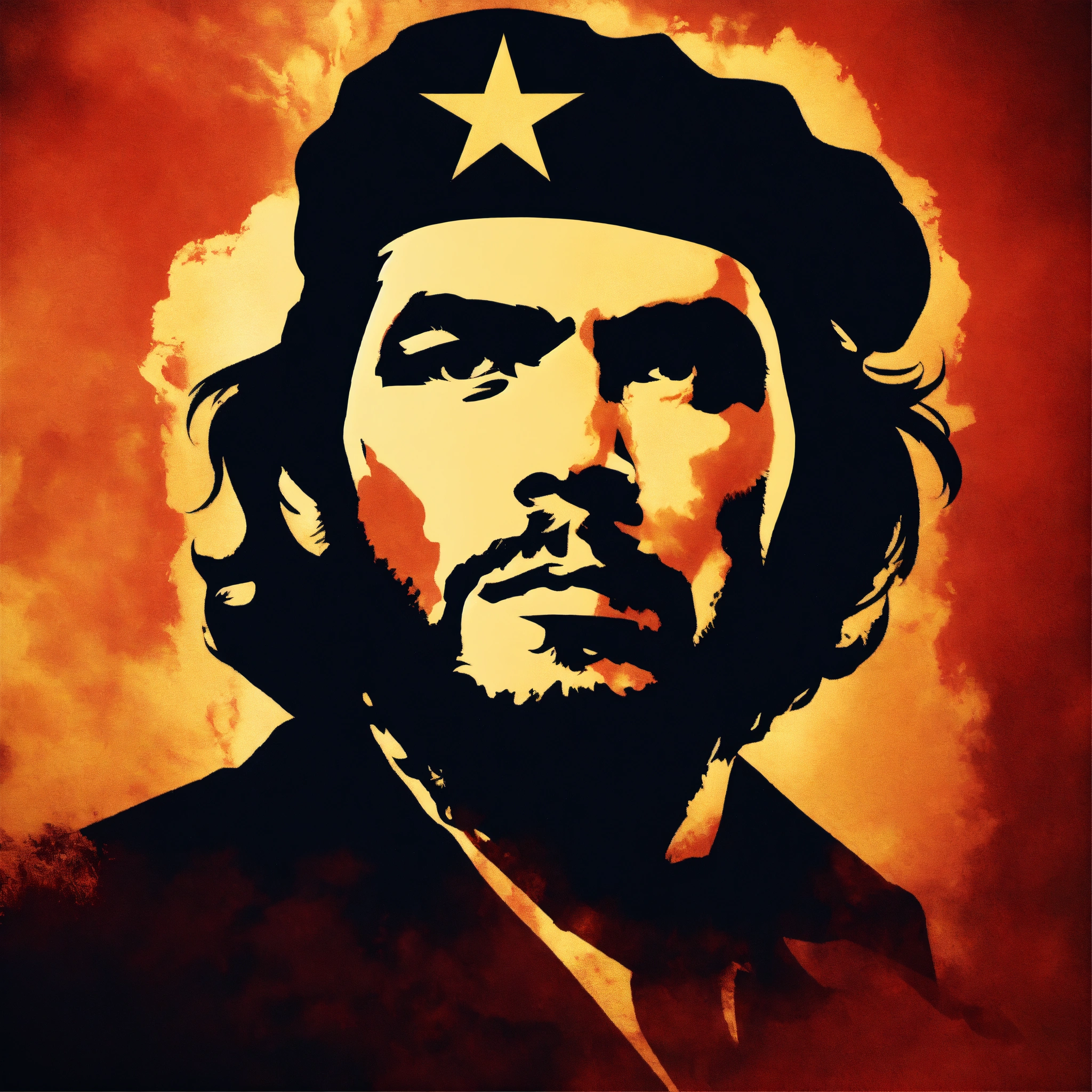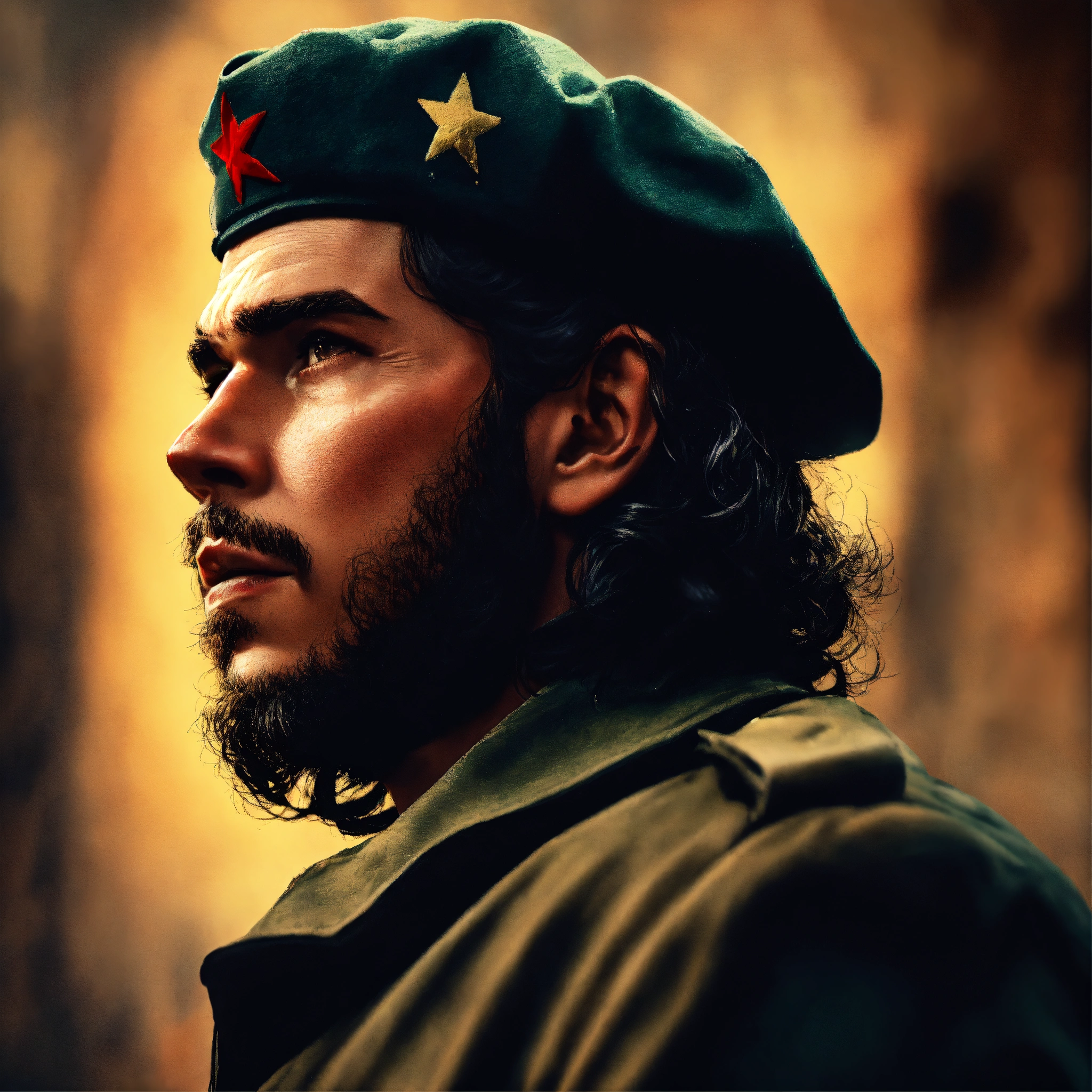 Che guevara, mirando a la cámara, gesto serio, backlight dramático, y el fondo totalmente oscuro, 4k, hiperrealismo