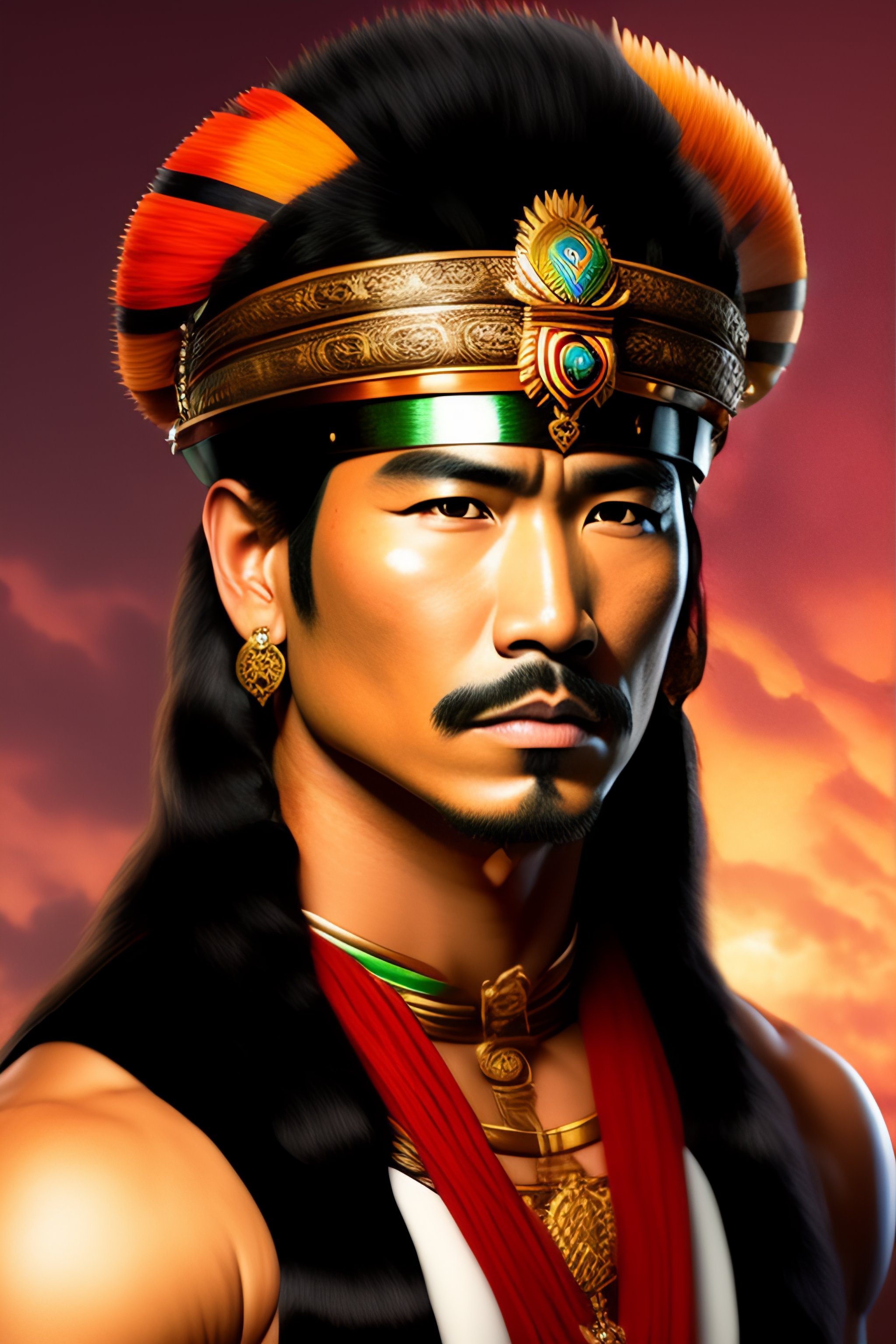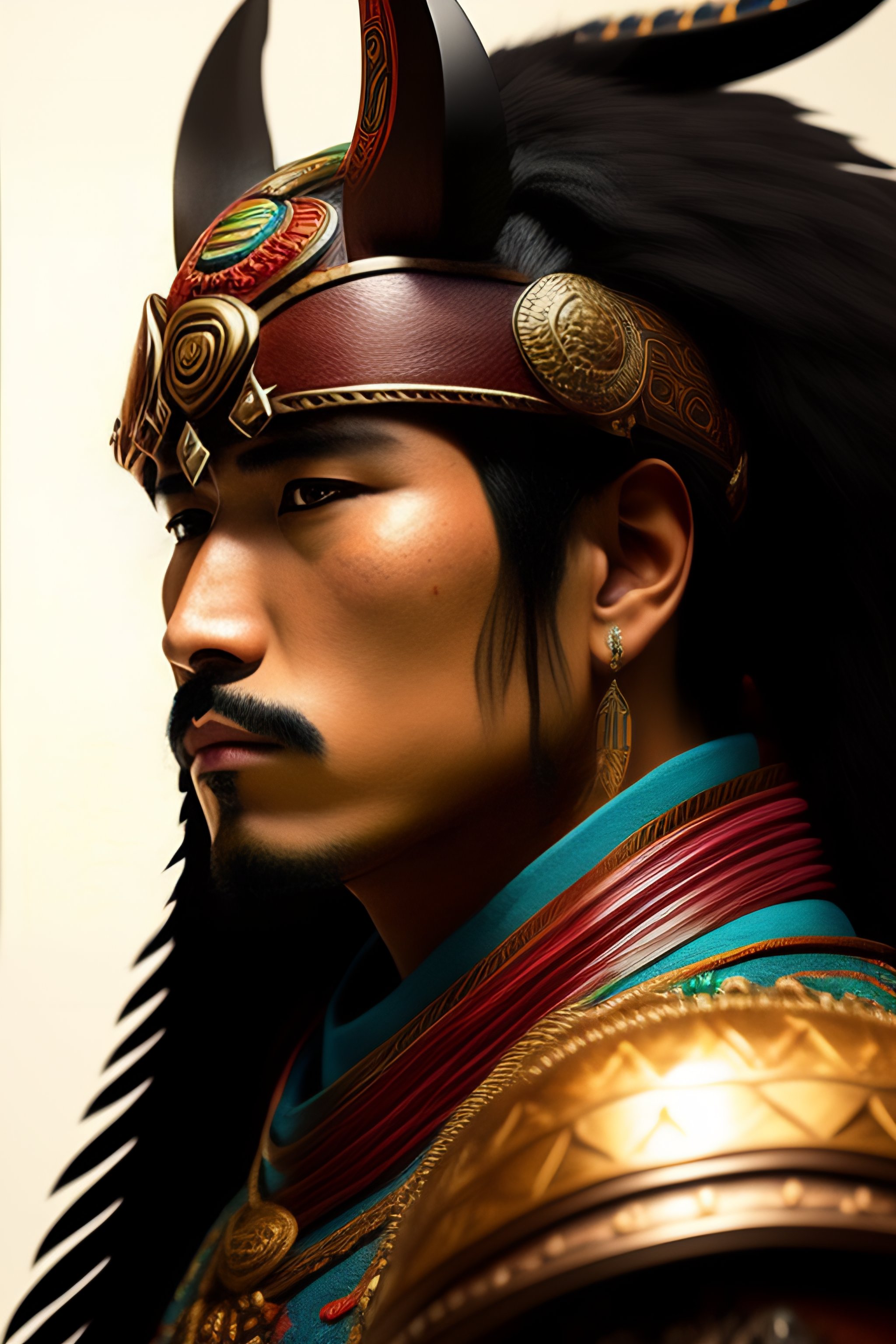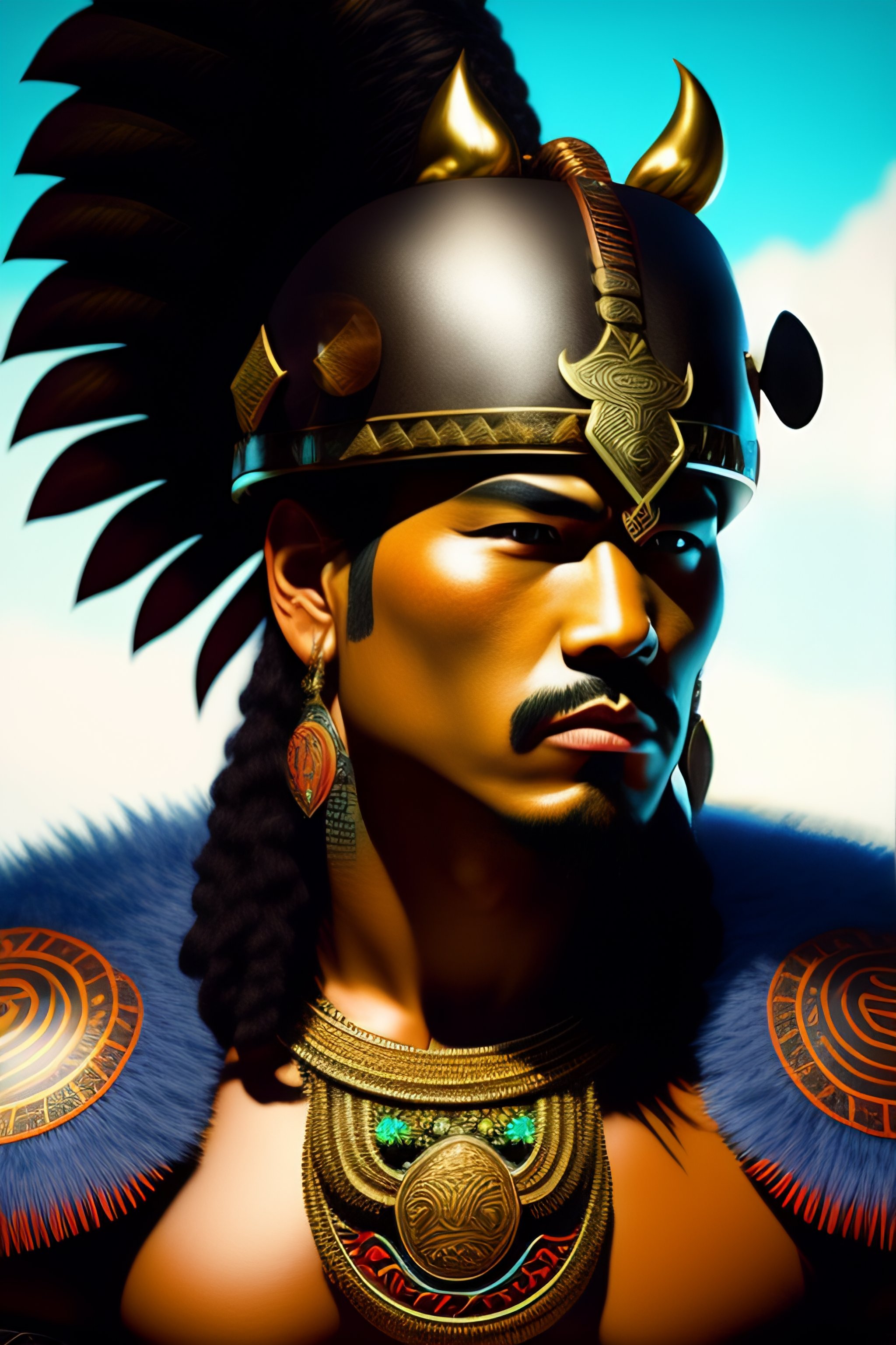 An anime style portrait of a mexican male mayan jaguar helmet warrior
