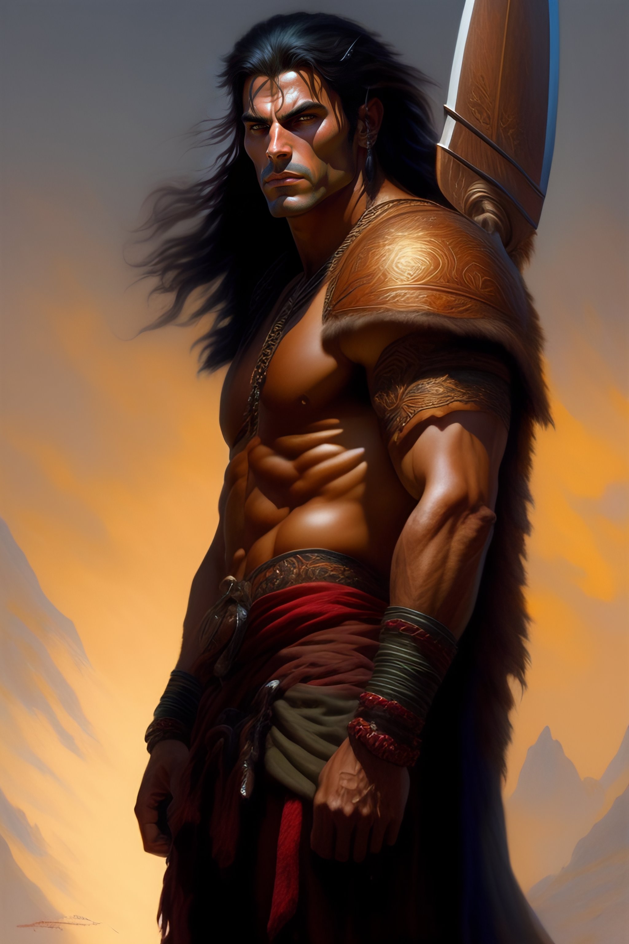 Berserker full body portrait, d&d style, axe, guy, berserker with pointed ears and teeths, skinny, photorealistic, highly detailed, artstation, smooth, sharp focus, art by michael whelan, artgerm, greg rutkowski and alphonse mucha