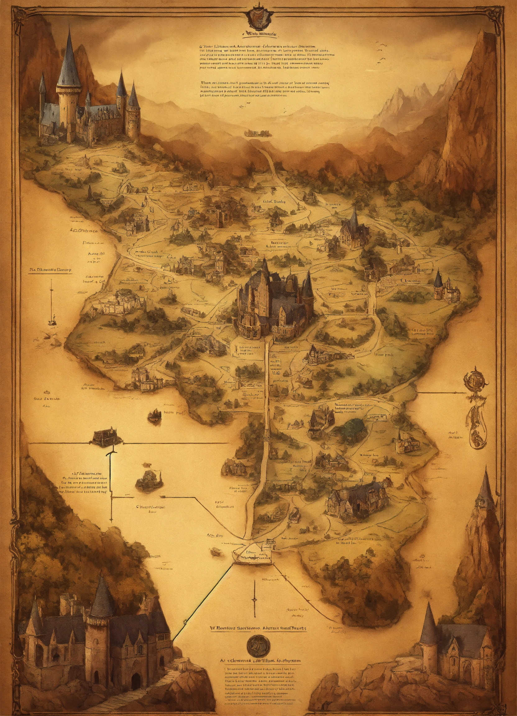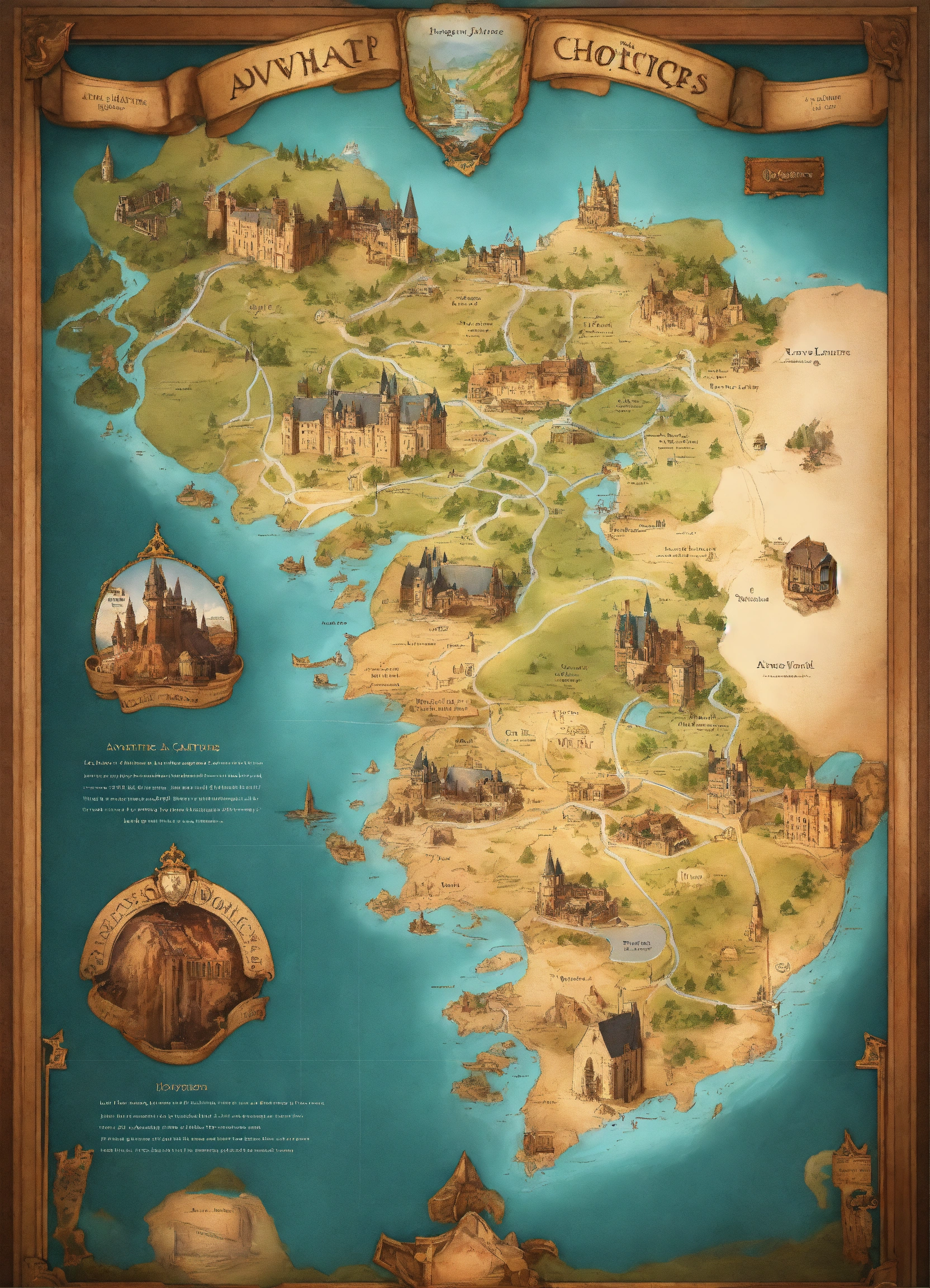 An image for a categories page on a website evocative of adventure and choices in a photographic hogwarts-like map style