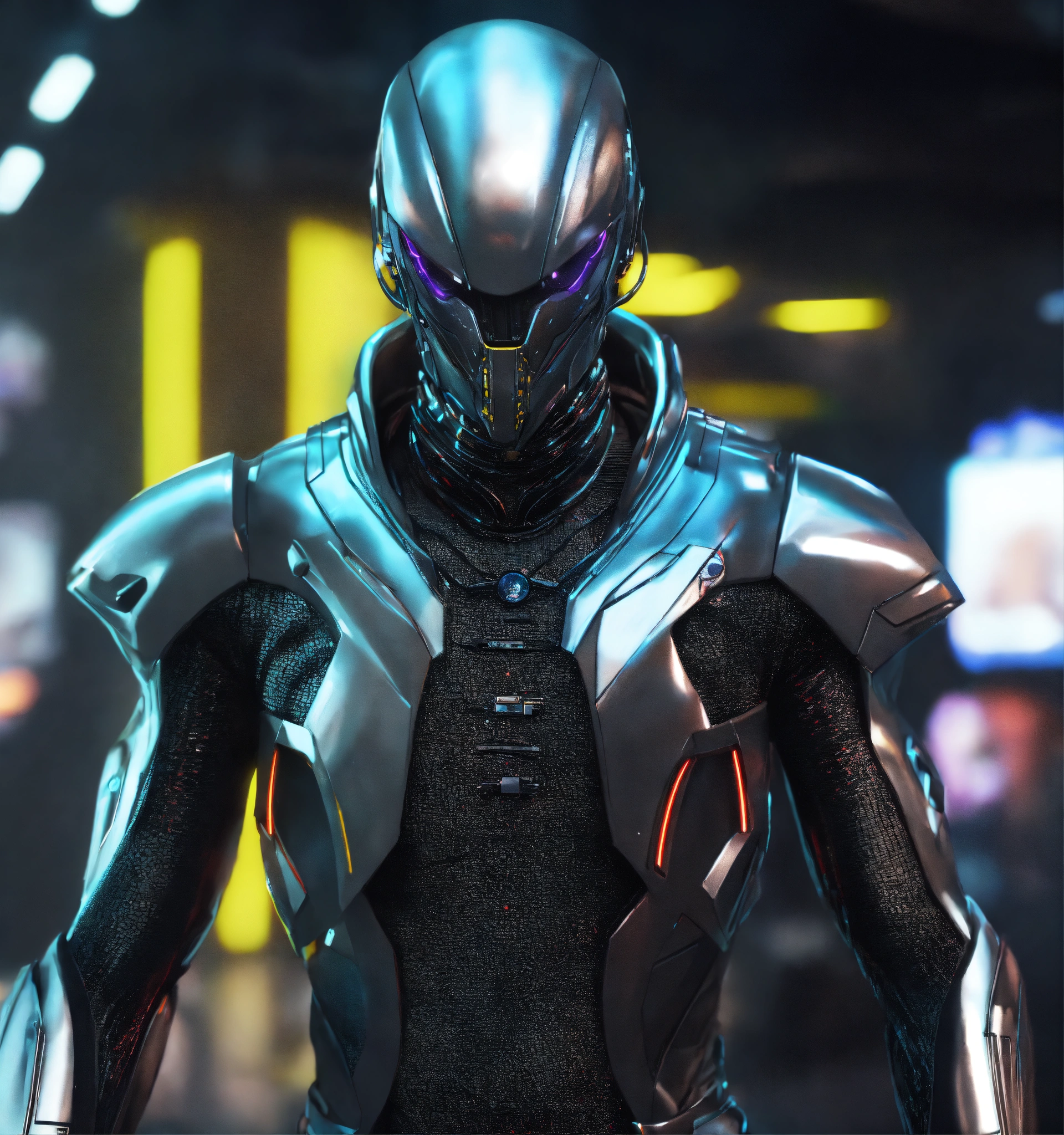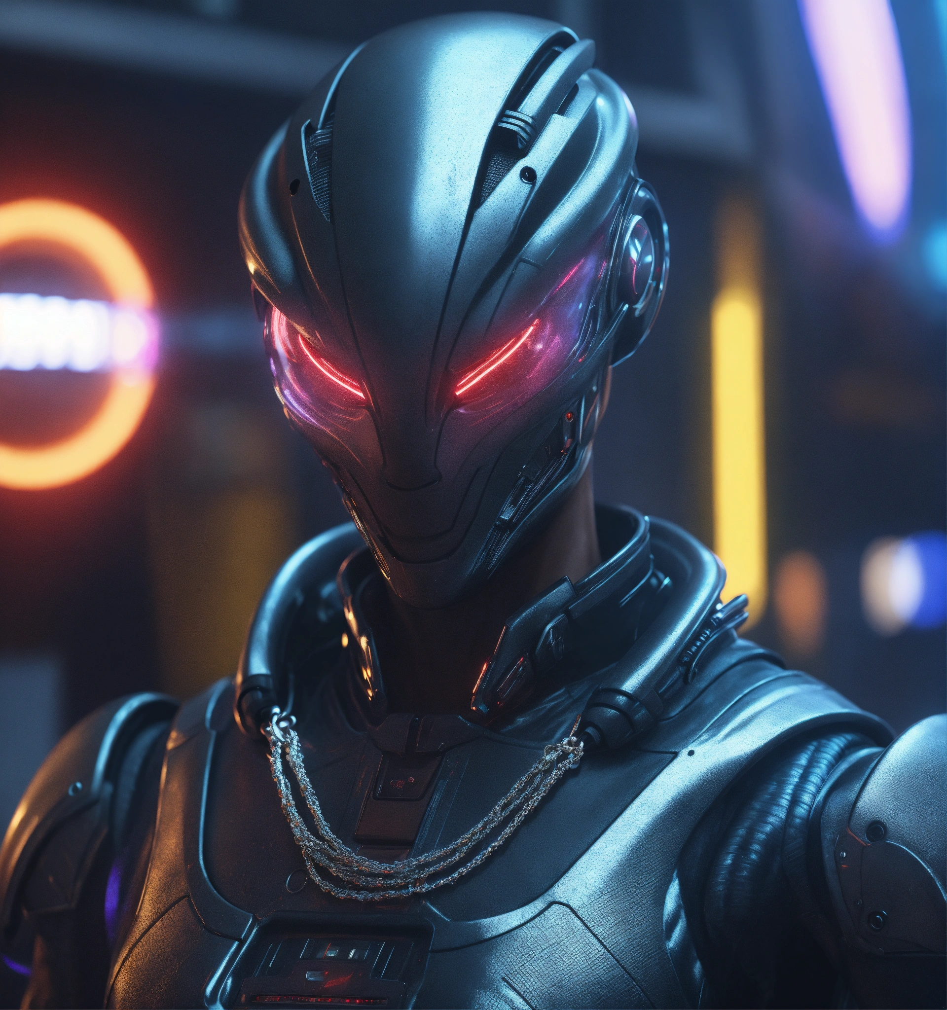 Zoom out from an tough male alien android cool gangster character pimpin futuristic dress clothes and jewelry, realistic, futuristic, sci-fi, 8k, unreal engine