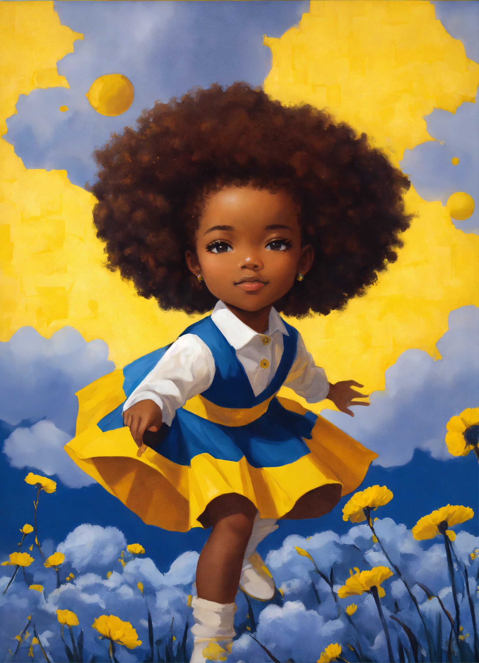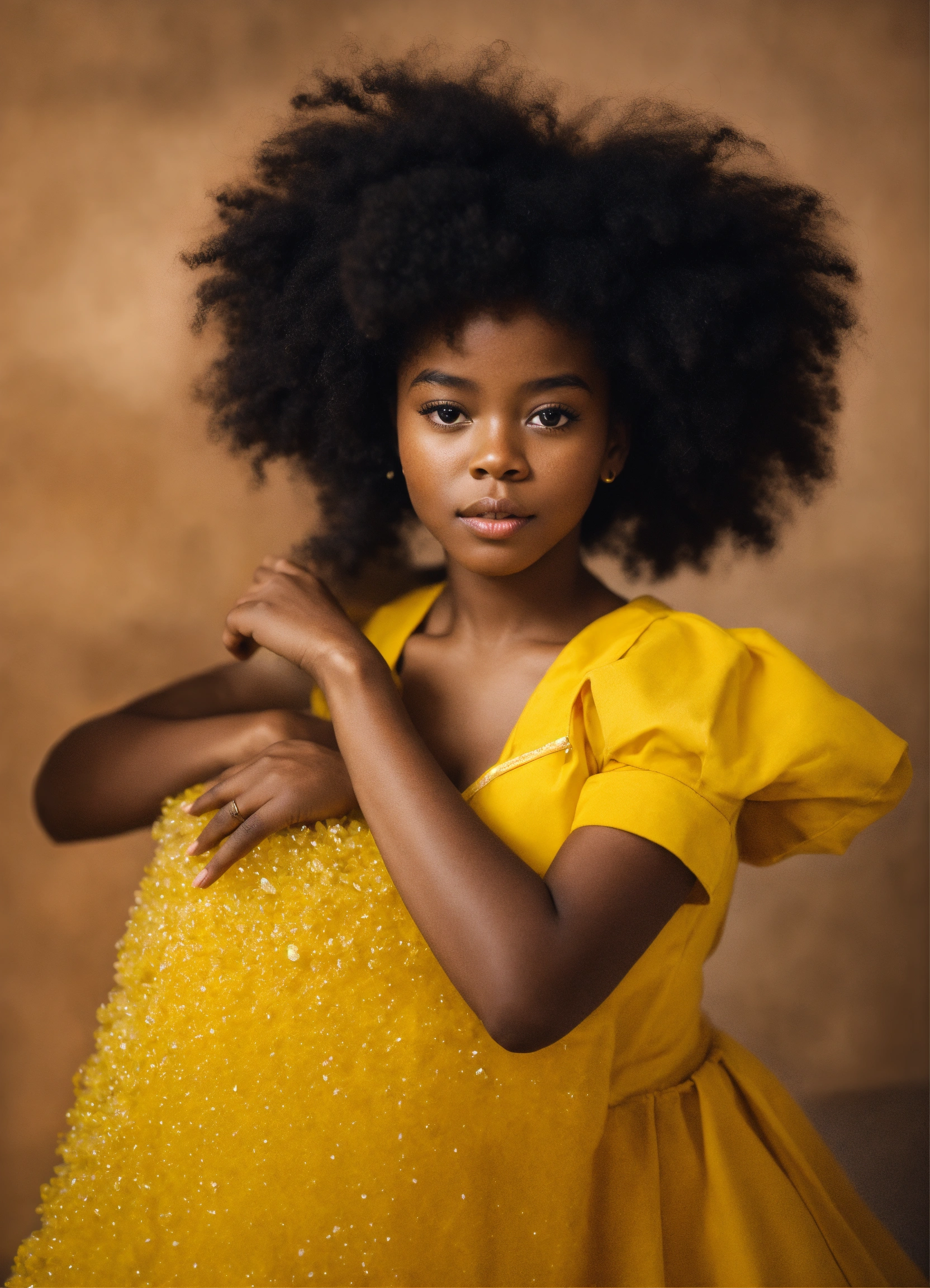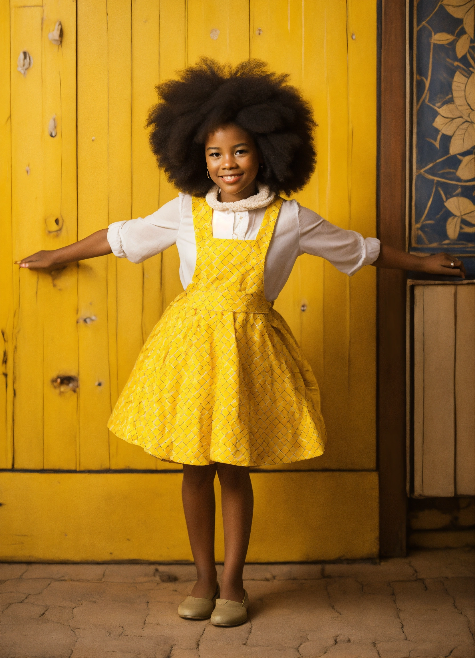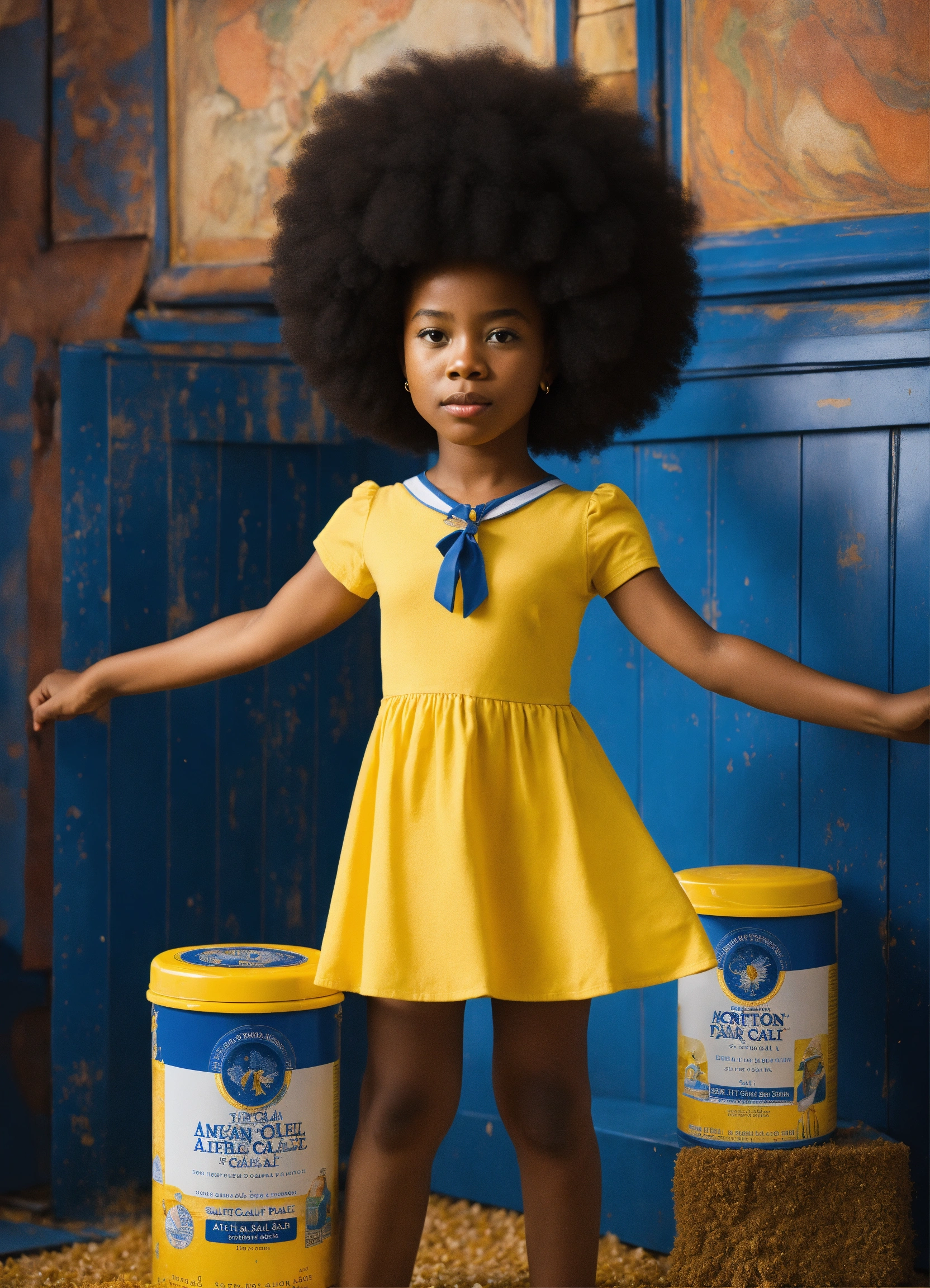 African american girl with afro as the morton salt girl in the traditional salt box pose