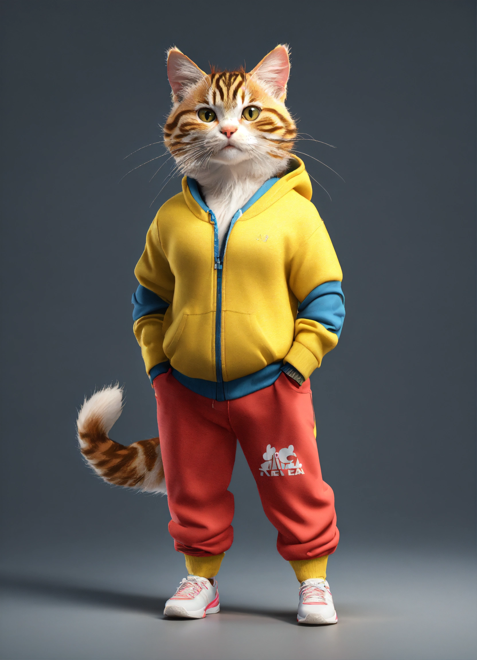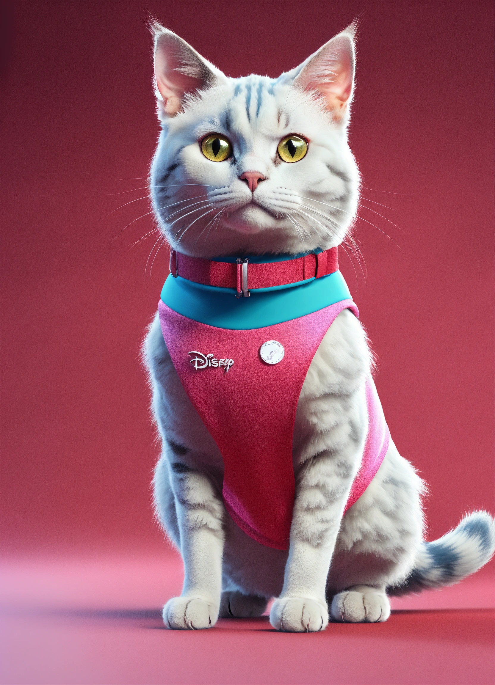 A cat with fitness wear, front view, studio photo, hyper realistic, fashion, photorealistic, 3d render, disney style