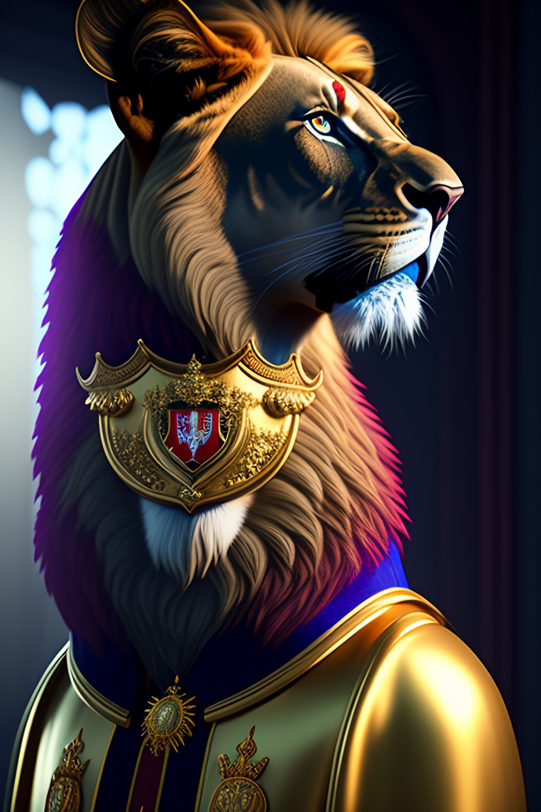 /imagine prompt: coat of arms + royal coat of arms + heraldic + front view + french coat of arms + lion in coat of arms + straight view + photorealistic + photorealism + ray tracing + unreal engine 5 + ultra detailed, 8k, hdr, hr --v 4