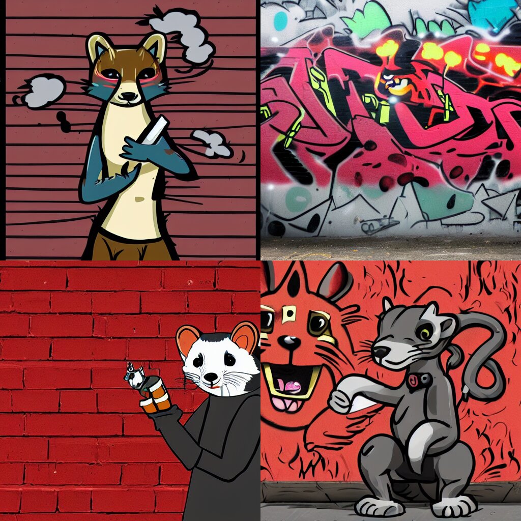 Furry _ fandom _ fursona ( red - and - black, weasel - ferret - stoat ), graffiti _ background ( smoke ), favela _ wall