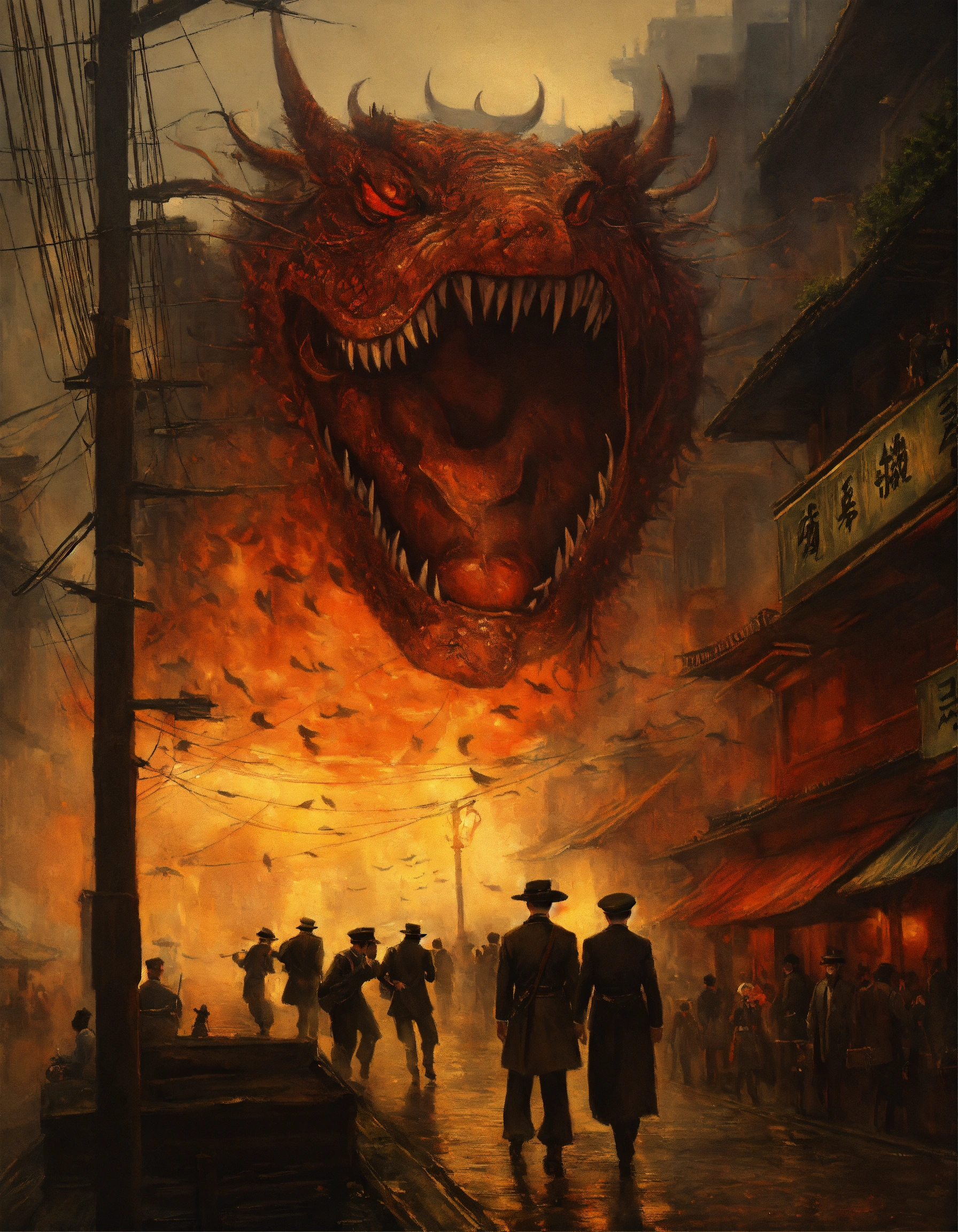 1926. shanghai. a contagion, a madness, a monster – no one knows for sure. the book opens with a mysterious creature crawling from the huangpu river and leaving gang members from both sides dead. the contagion spreads, with the infected ripping their own throats out. but the city is teaming with so much activity and debauchery that this spreading madness is largely ignored. only juliette and roma seem truly interested in finding the source of this disease decimating the gangs’ numbers.. oil painting