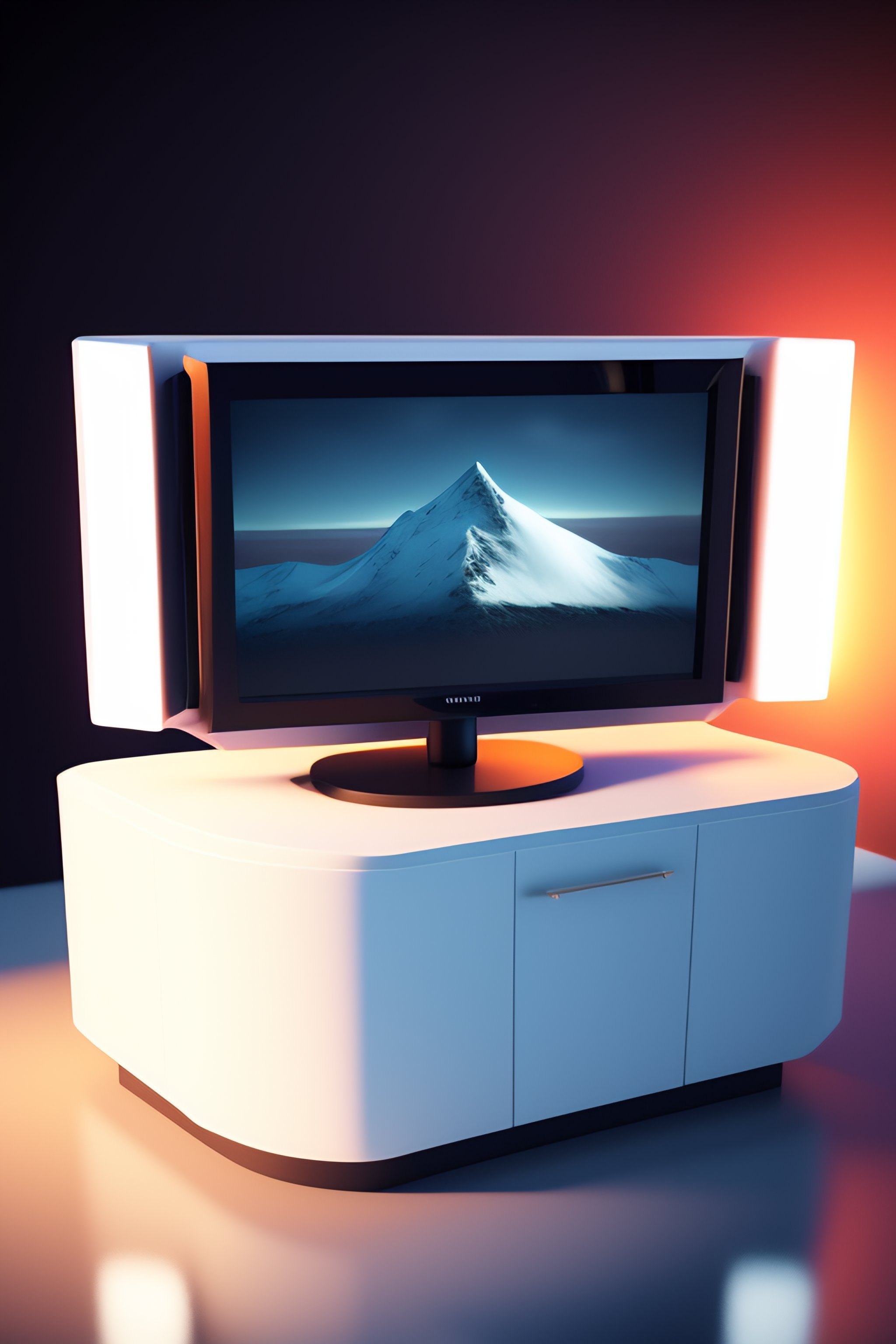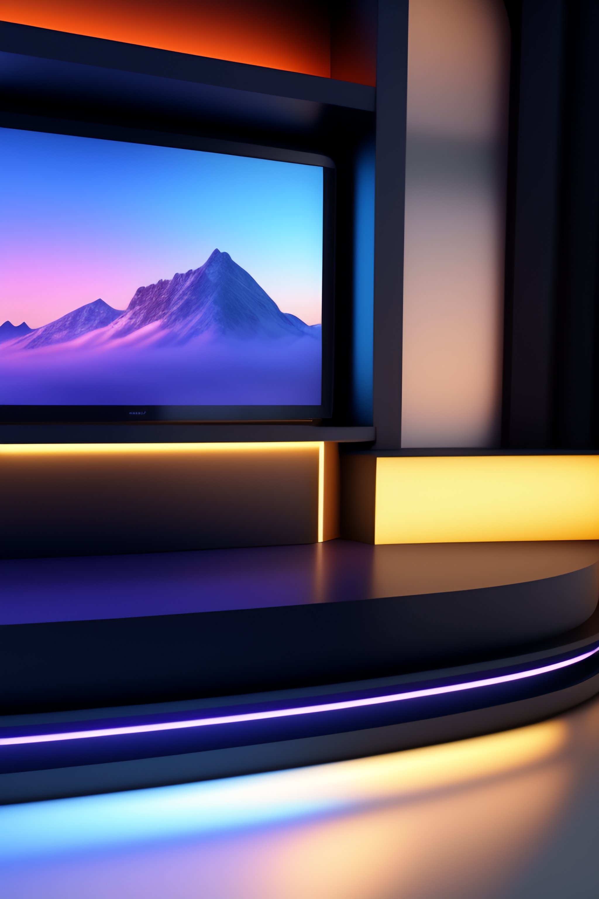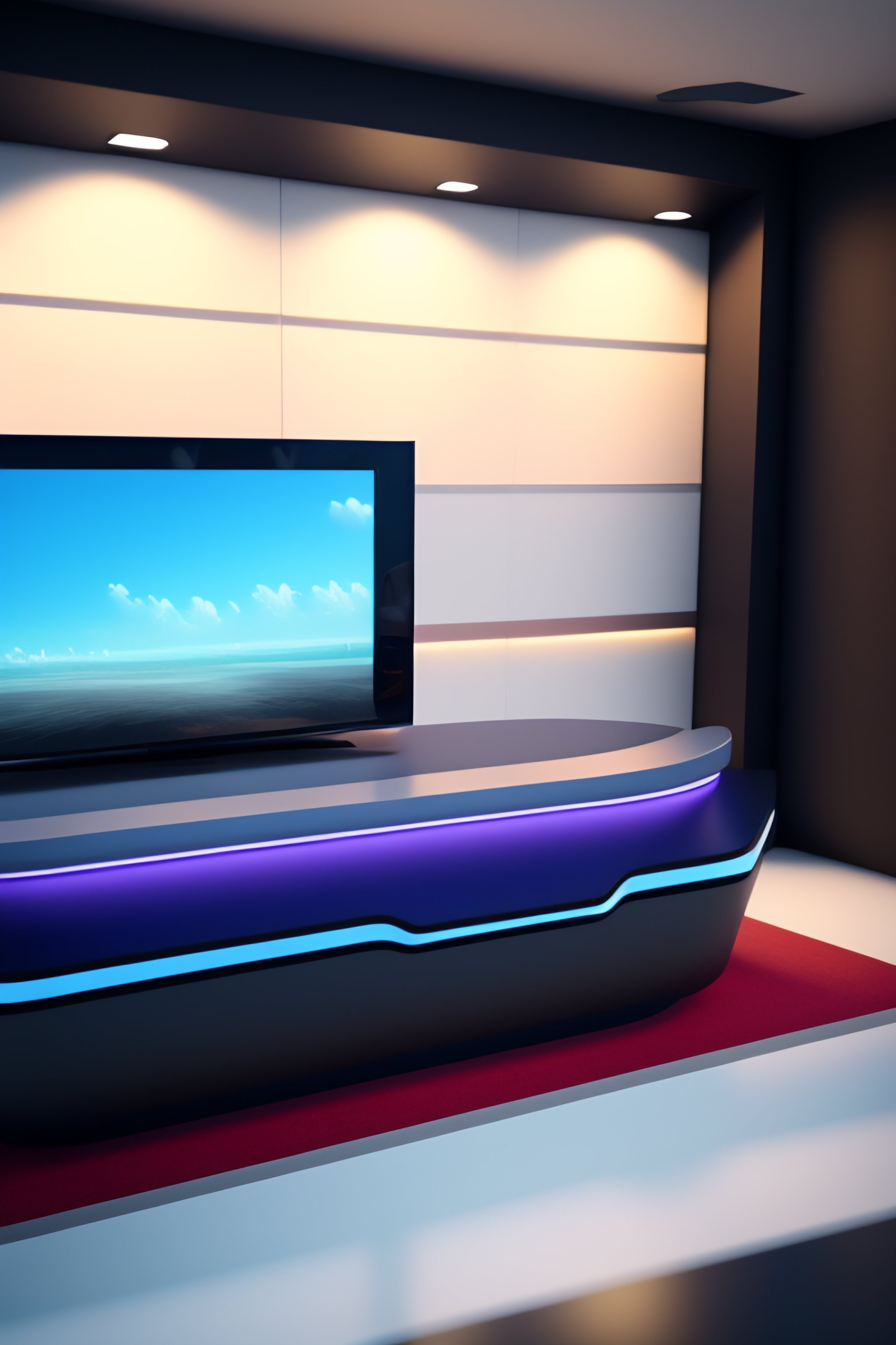 A low poly 3d model of a television news studio with a presenter giving the weather, unreal engine 5.1, octane render, blender, art station