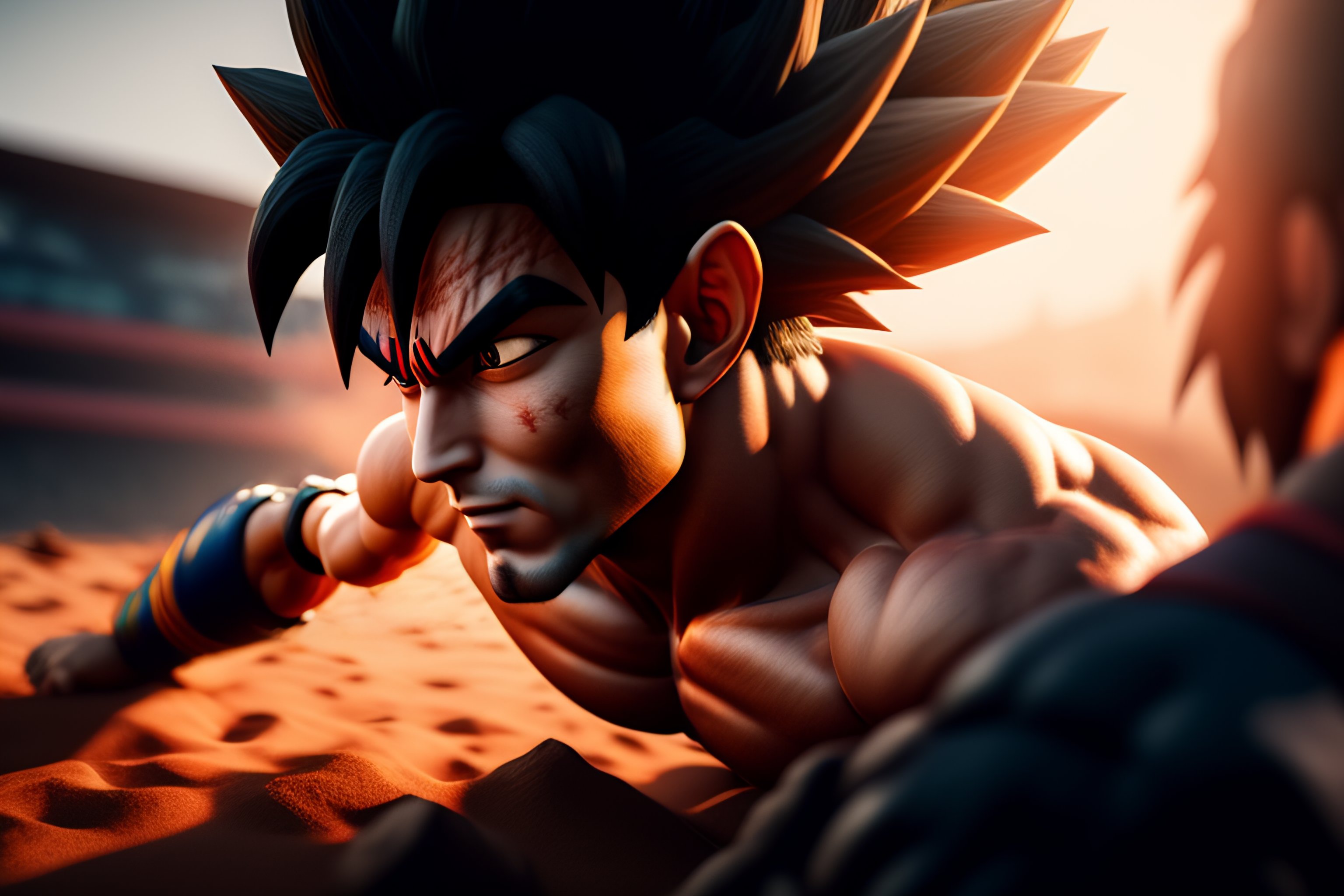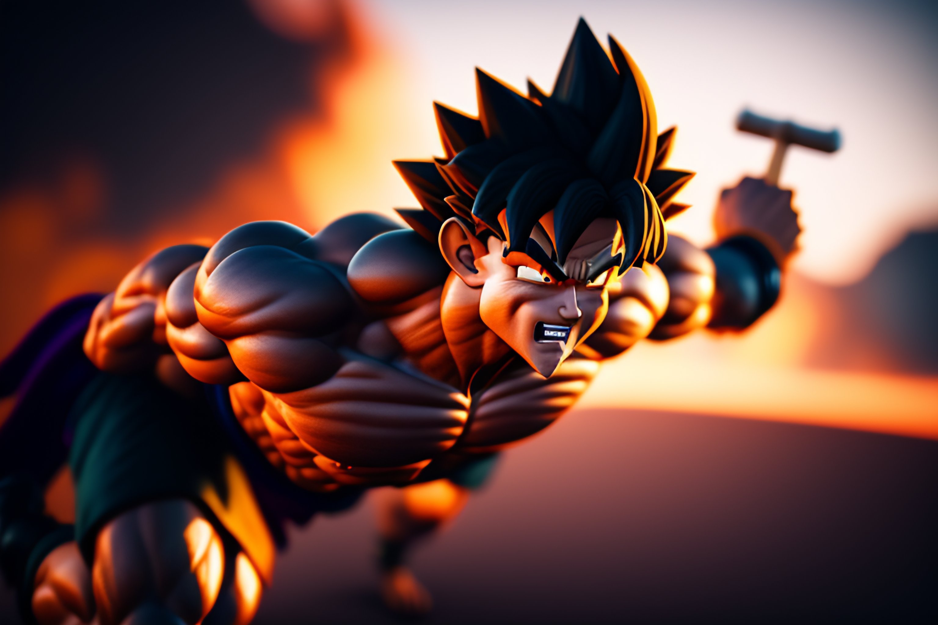 Goku pushups on a stick, manga, ultra realistic, concept art, intricate details, highly detailed, photorealistic, octane render, 8 k, unreal engine