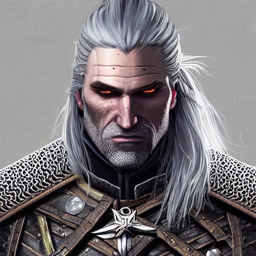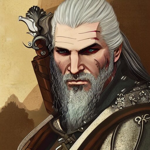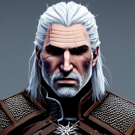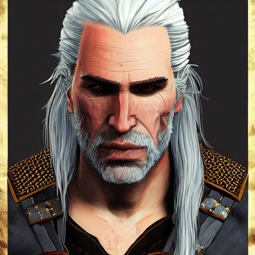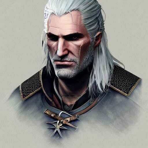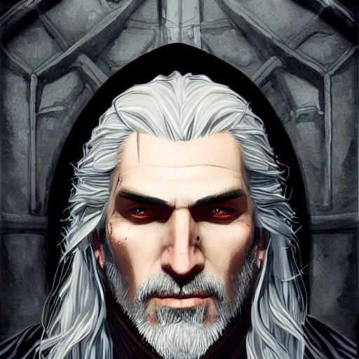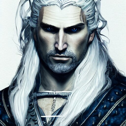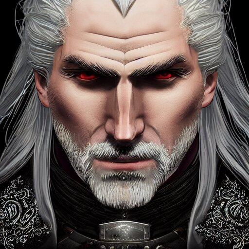 Portrait of geralt of rivia from the witcher 3, baroque style, elegant, beautiful, mesmerizing, concept art, fancy clothing, highly detailed, artstation, behance, deviantart, inspired by innocent manga, inspired by castlevania concept art, trending, ayami kojima, shinichi sakamoto