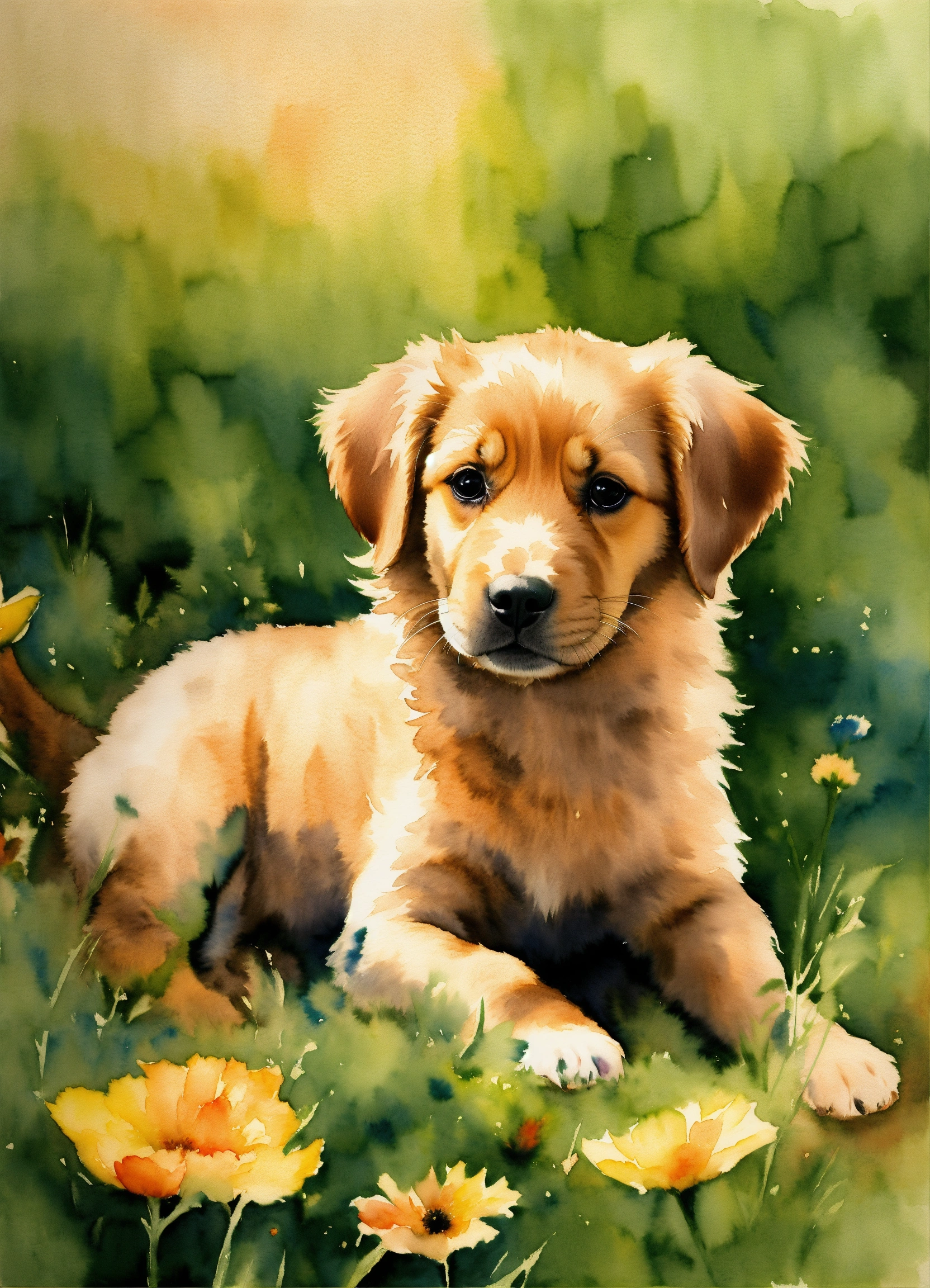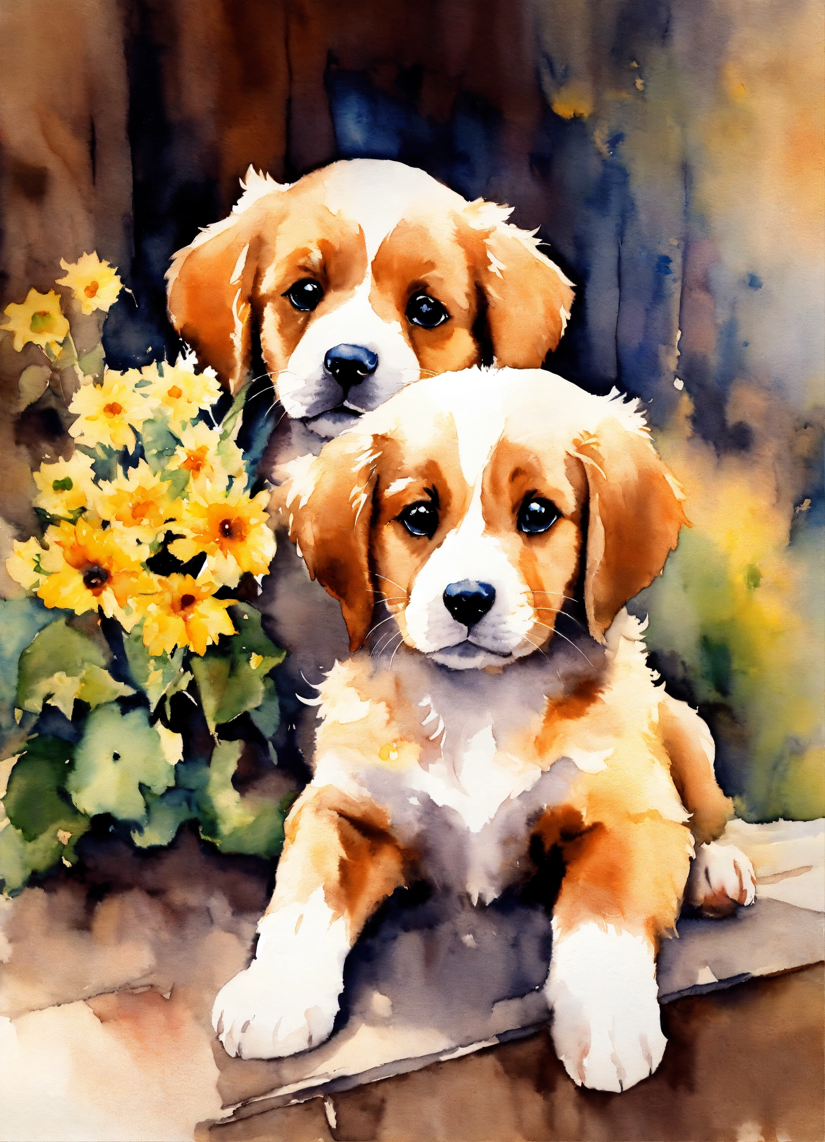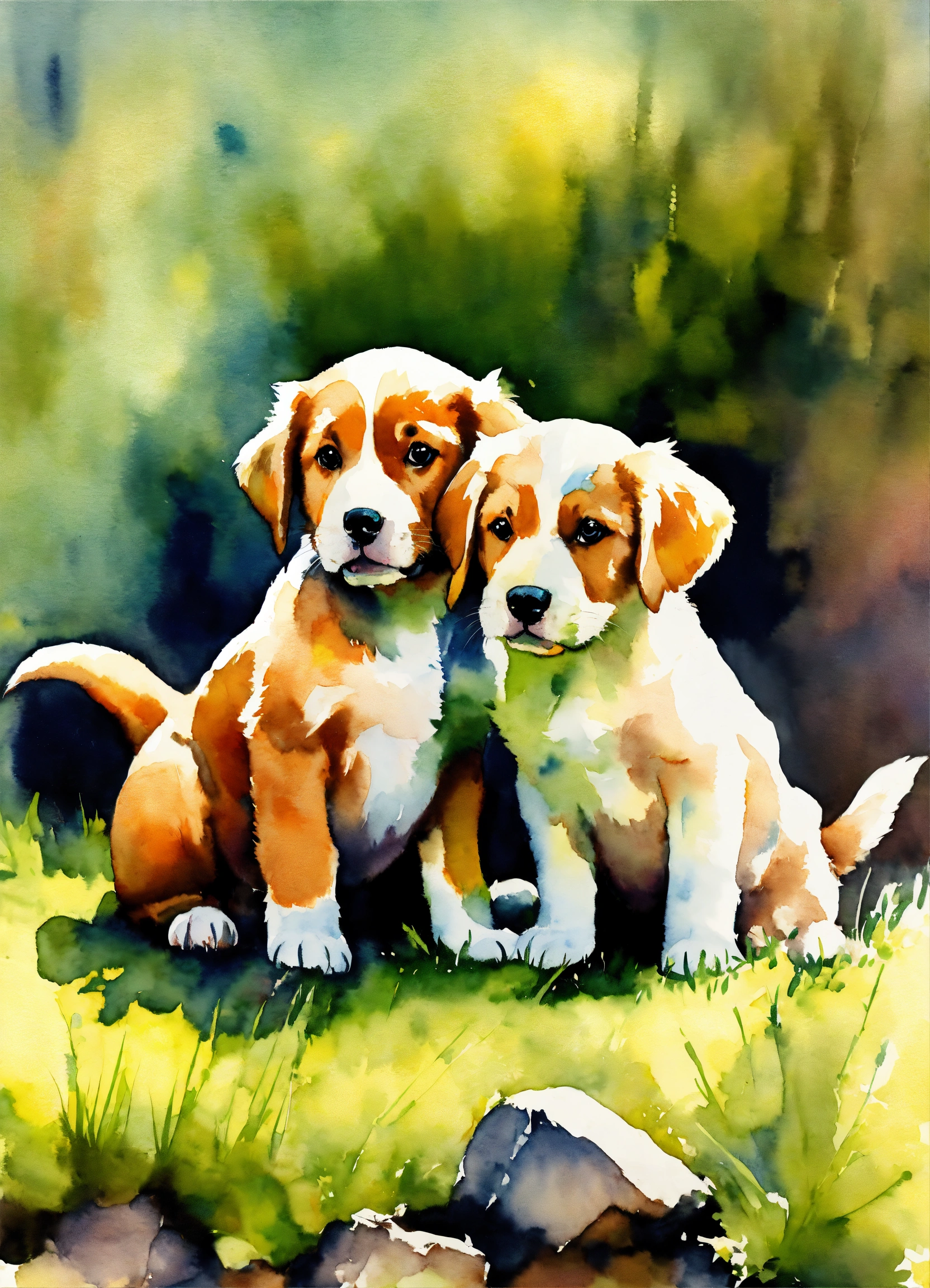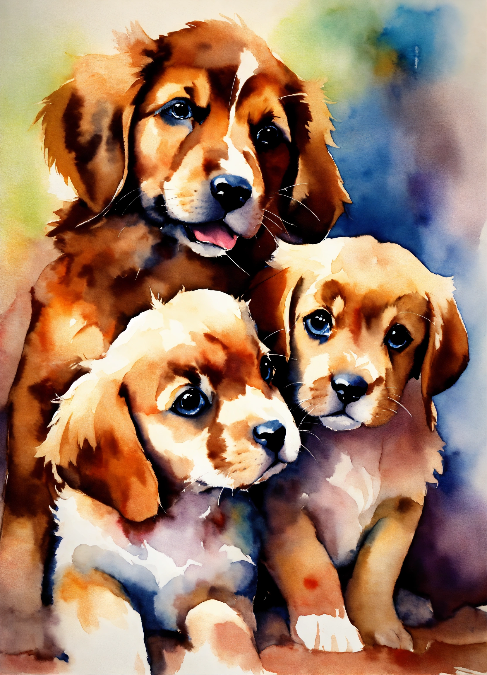 Watercolors painting puppies