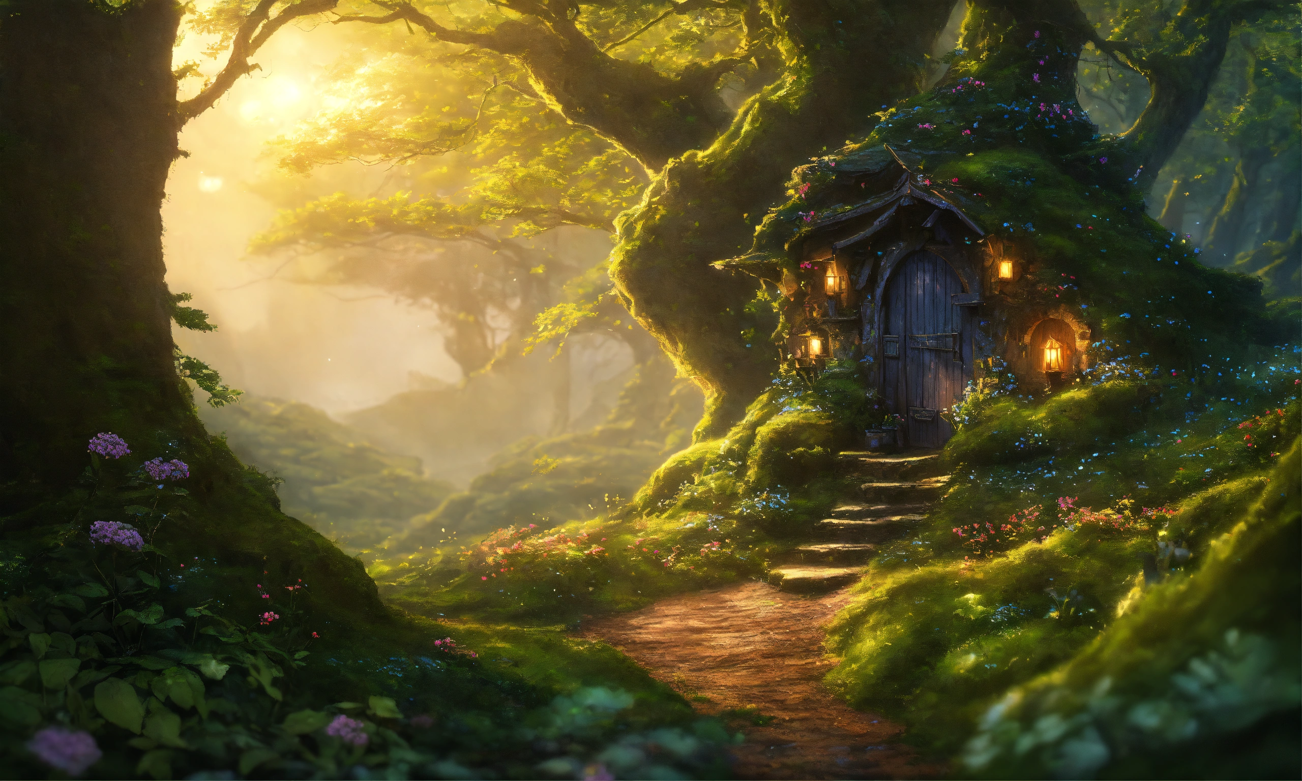 Epic shot of a fairy forest in ireland, ultra detailed, ultra cozy, digital painting, little photorealistic, sharp focus, magical healing place, evening atmosphere. ultra cozy and inviting, wish to be there. very detailed, arty, should rank high on youtube for a dream trip.
