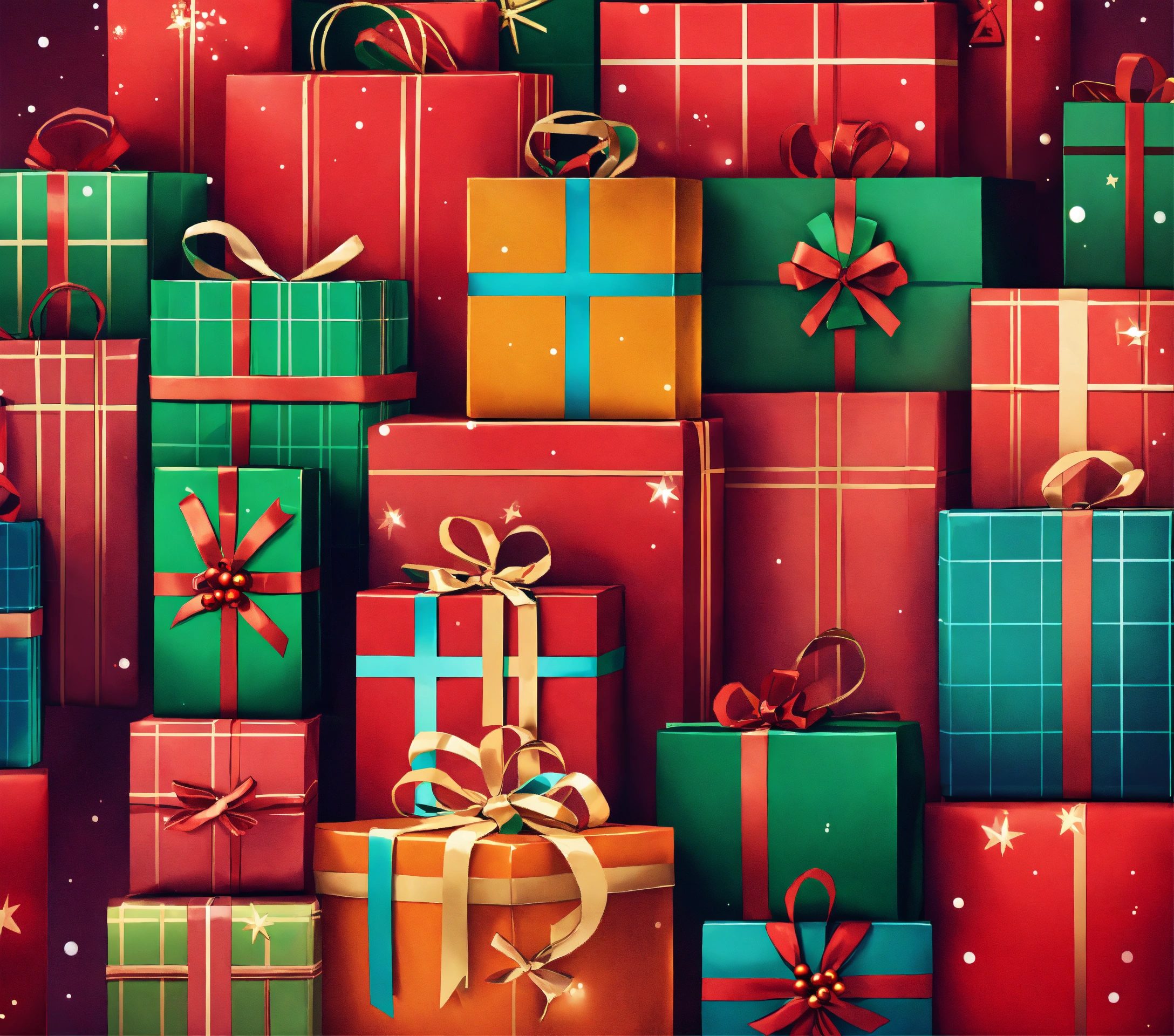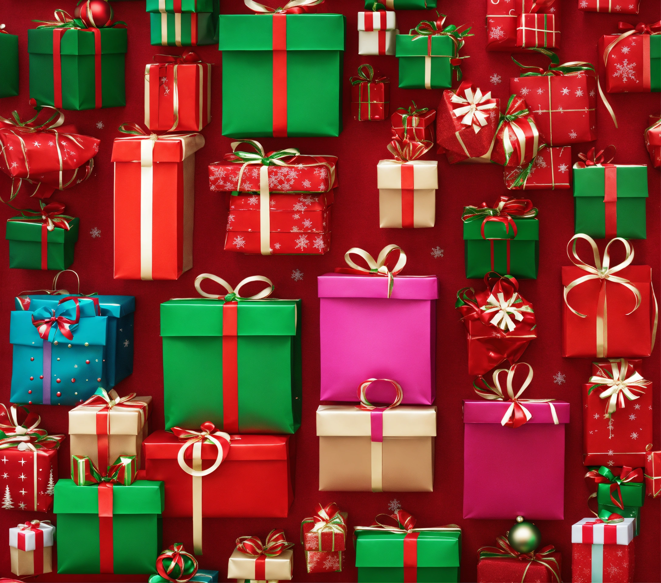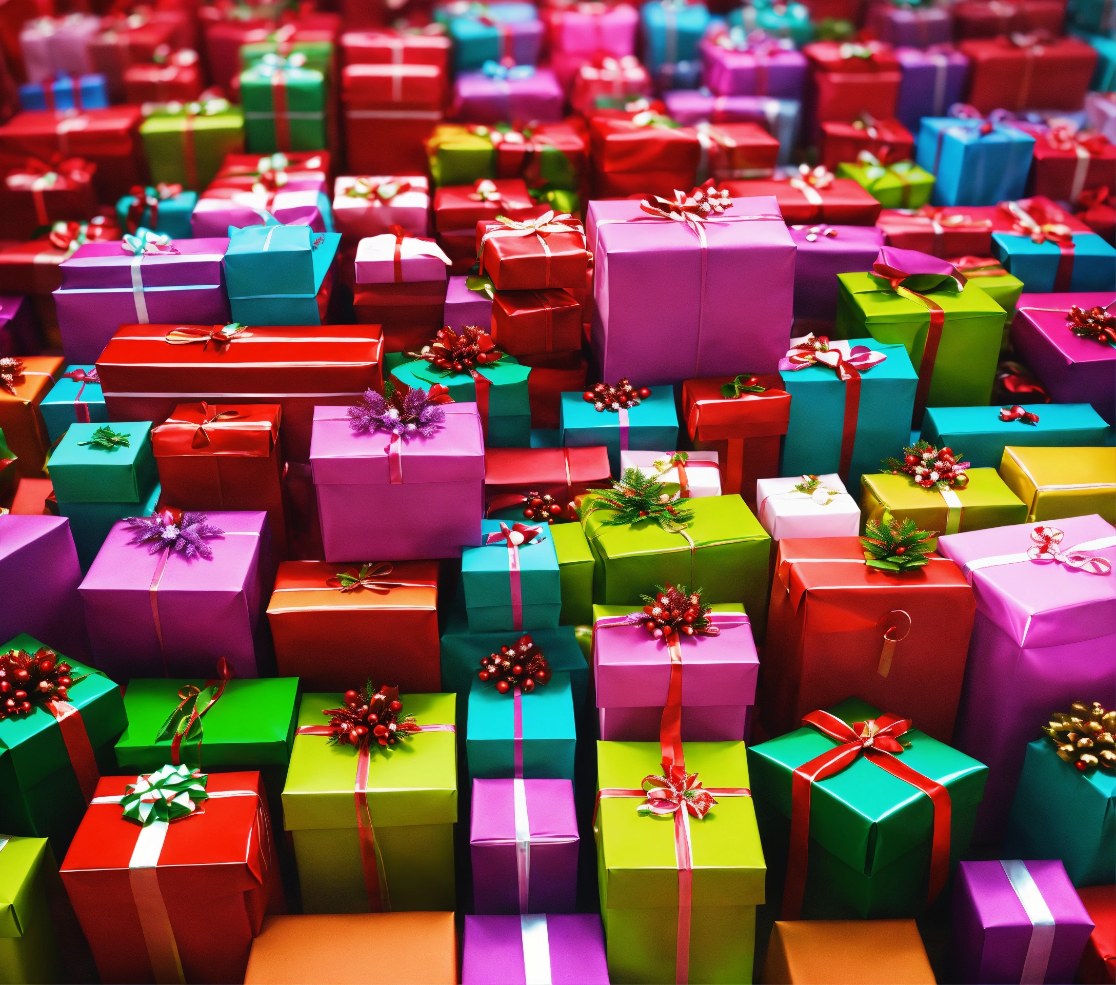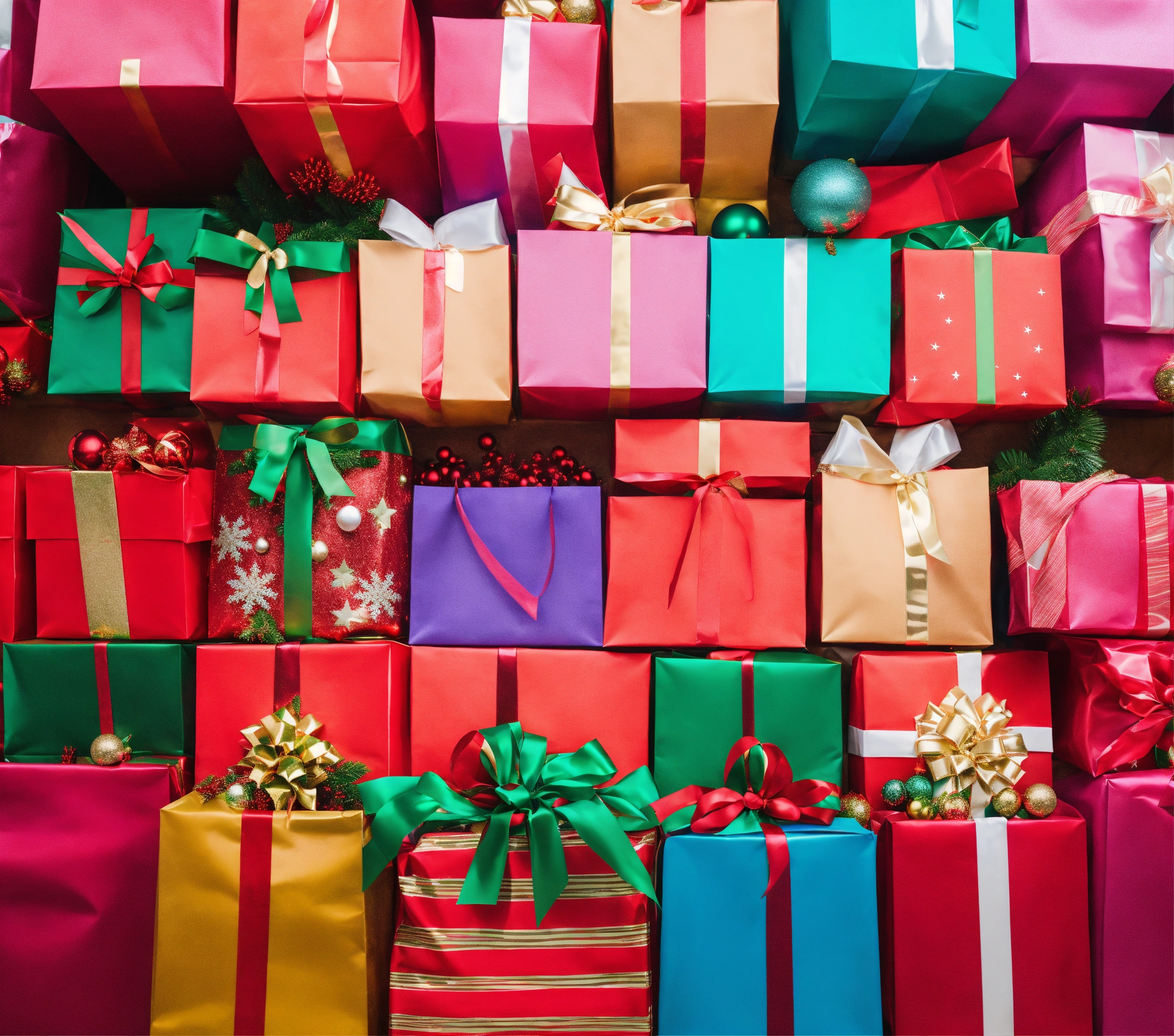 full screen of shopping bags full of christmas presents. add christmas decorations