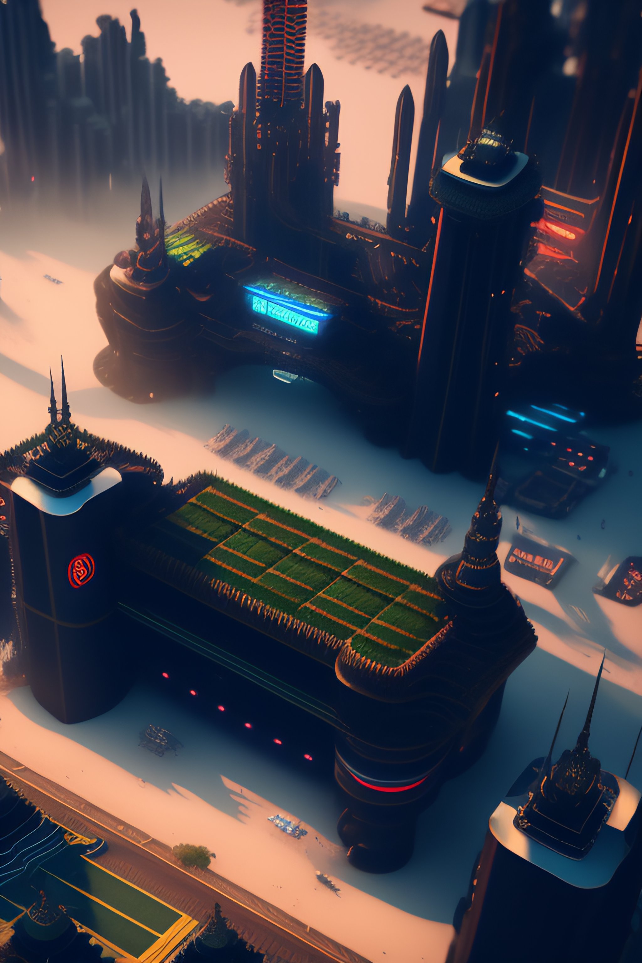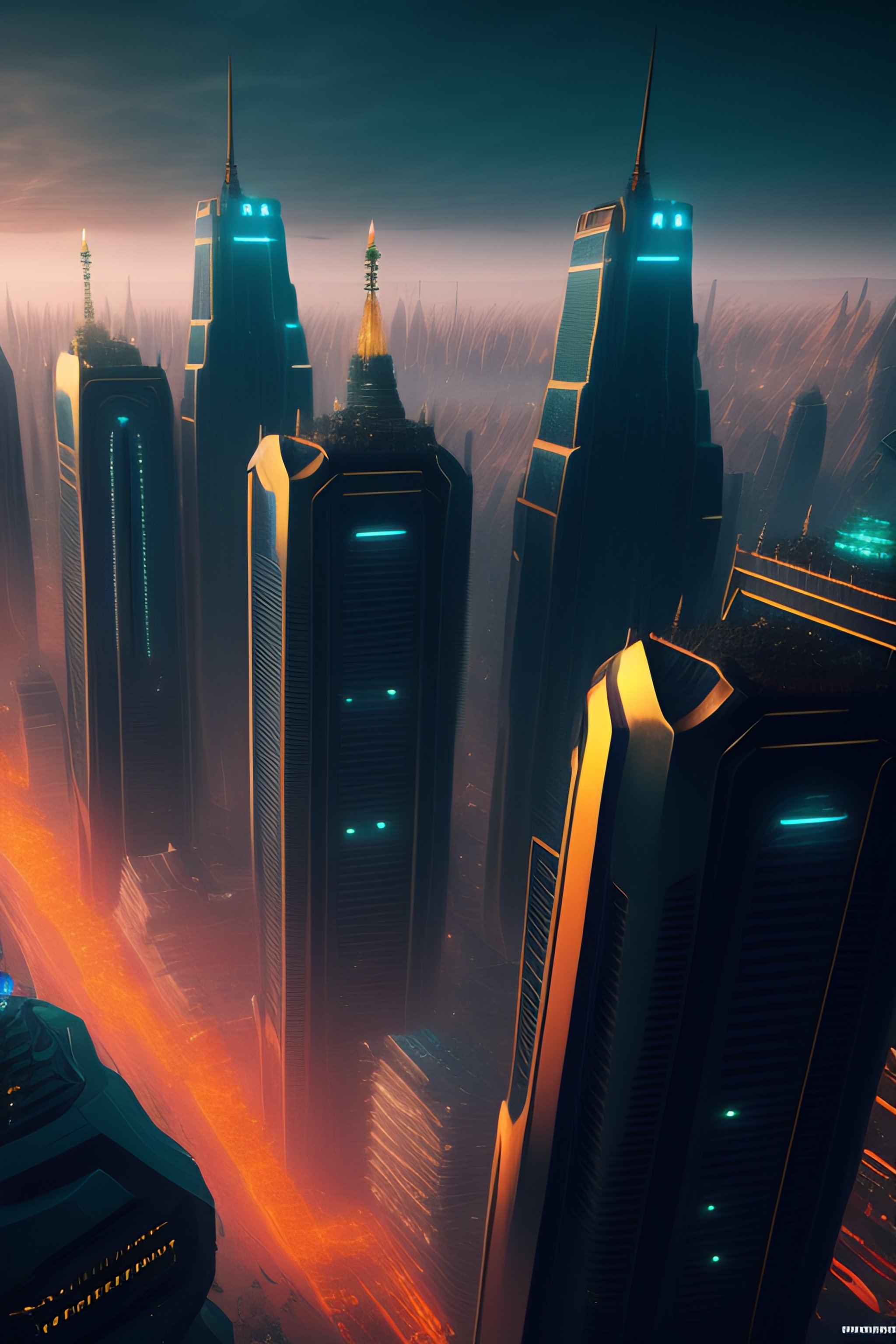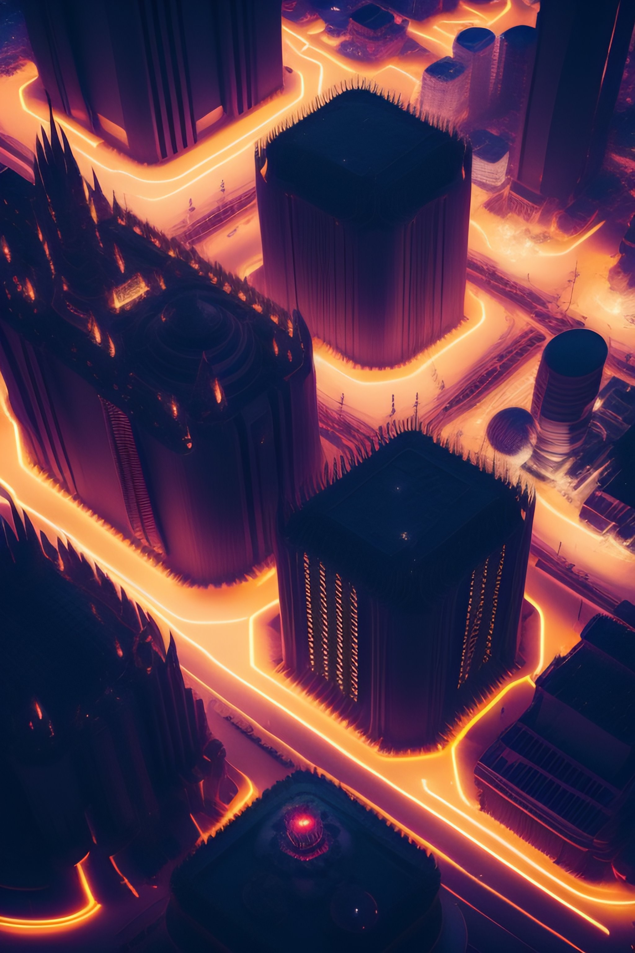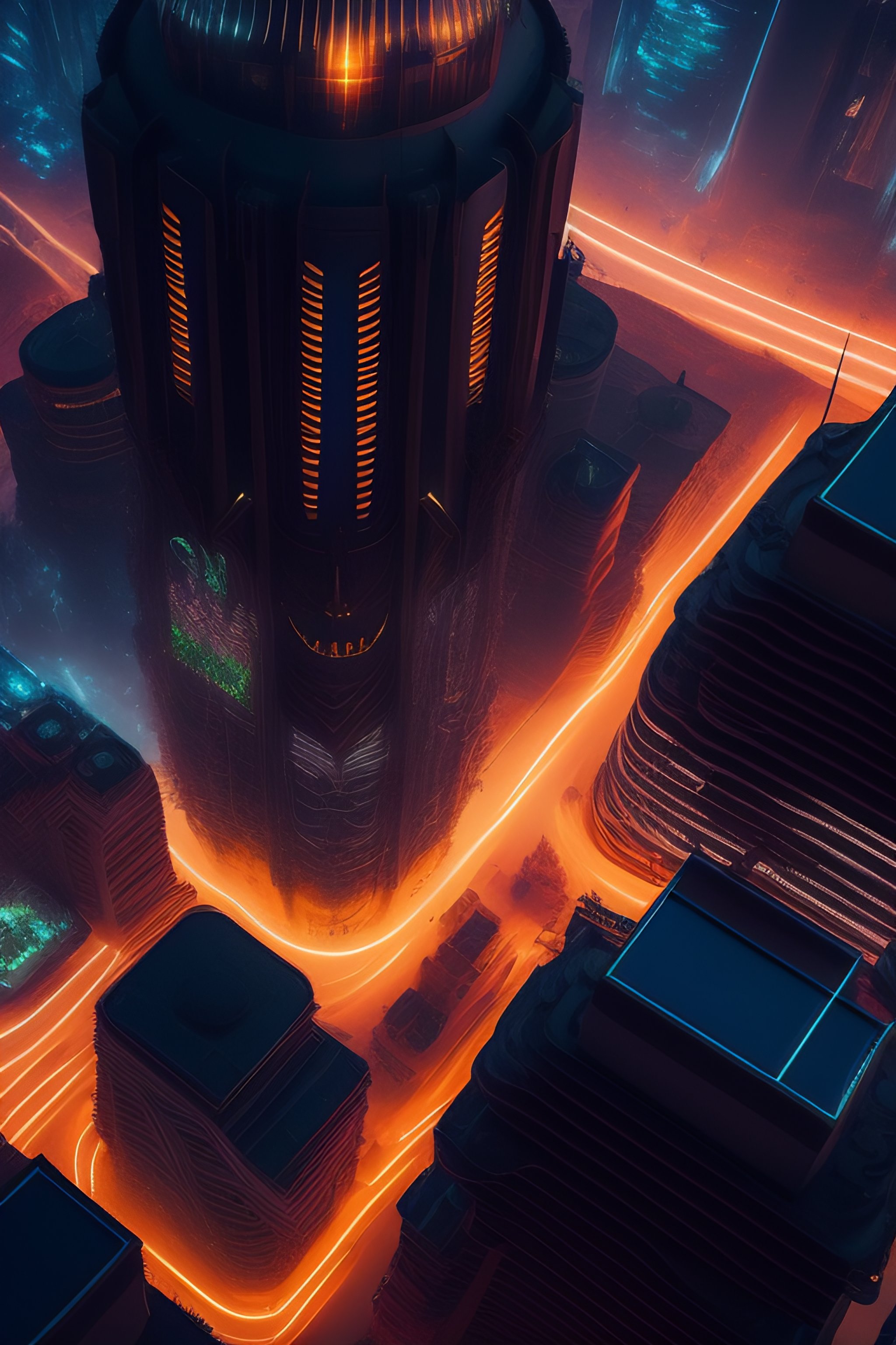 Top view, drone footage, lovecraftian, demon hunter, cyber samurai, on cyberpunk city, futuristic armor and weapons 8k