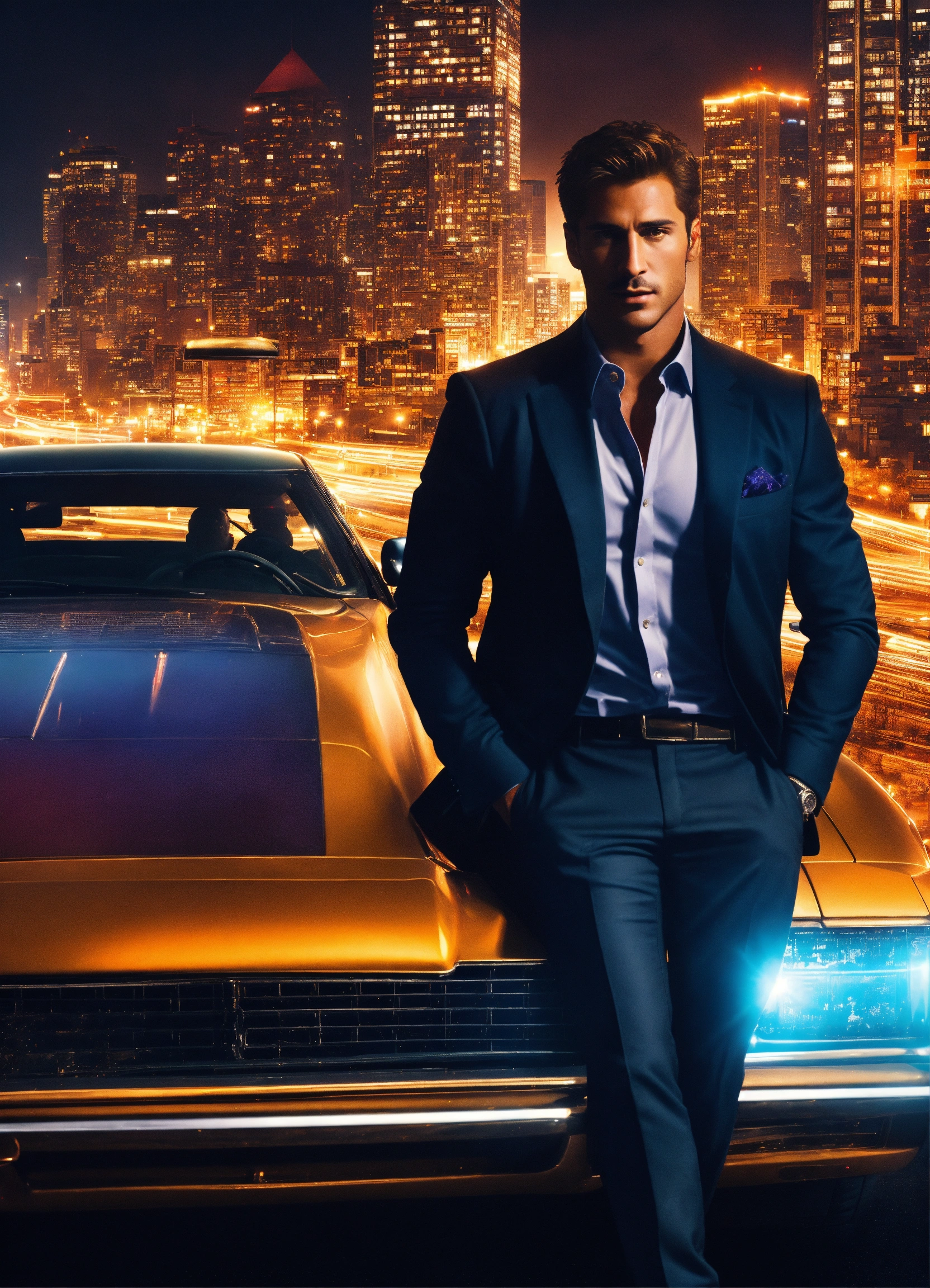 Create a captivating book cover design background that conveys the theme of psychopath, sociopath, romance, betrayal, lust, drugs, wealth, genre of mystery/ phycological thriller, romance . with shadows and lights effect, with exotic sports cars cars with city lights in the background, wealth, money, guns, the story is about two mens obsession with money, control, power, manipulation. the protagonists have everything to lose if found, and jail for both. the protagonists are wealthy, cultured, unscrupulous. and one is tormented by his psychological battle of wanting to be good versus his greed and crystallized personality disorder. he falls in love with a beautiful, inquisitive artist who begins to question where all his money and belongings come from. she hires a private detective agency who become hot on his trail - and he begins to hunt the hunters. many twists, betrayals and surprises as the chase continues.