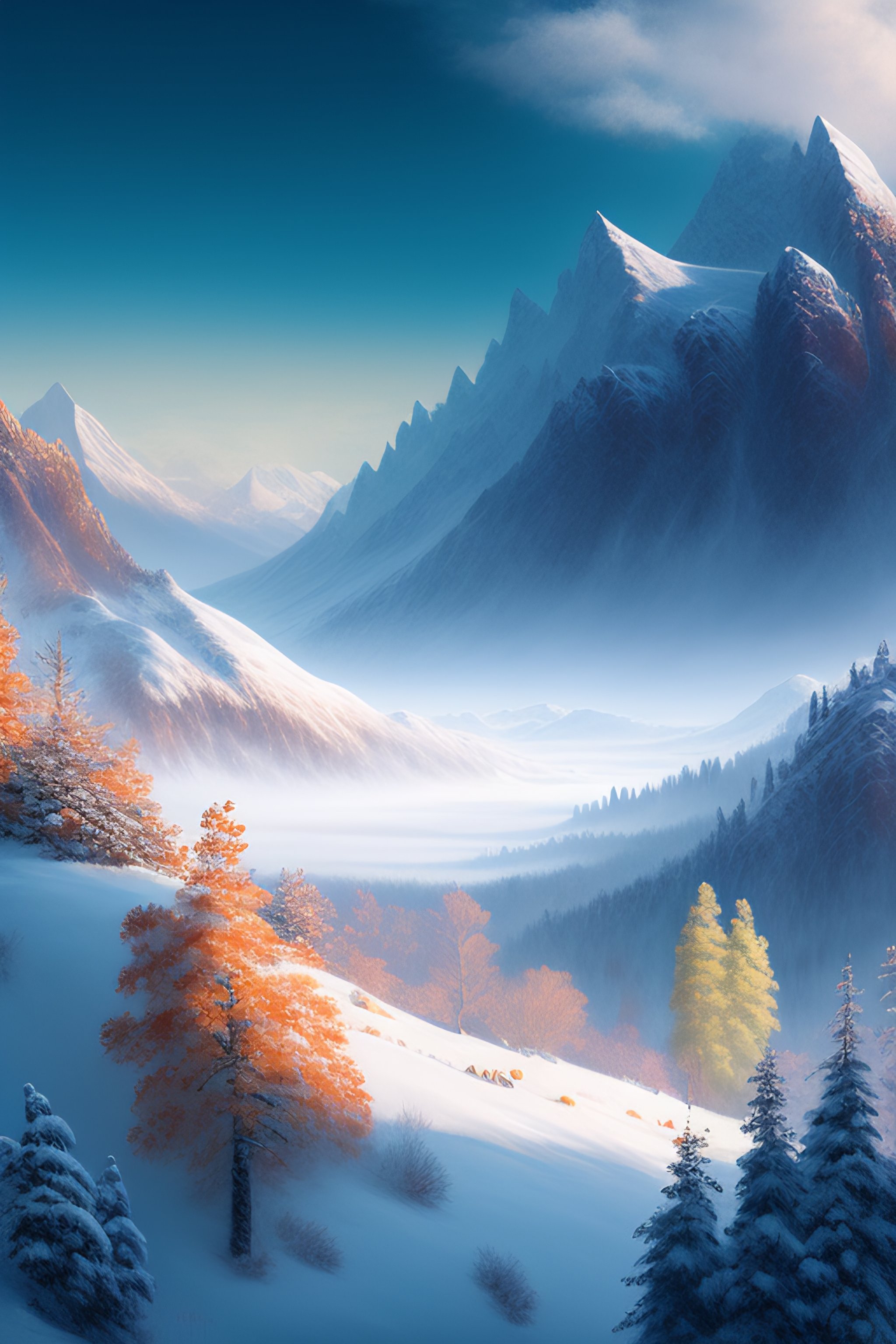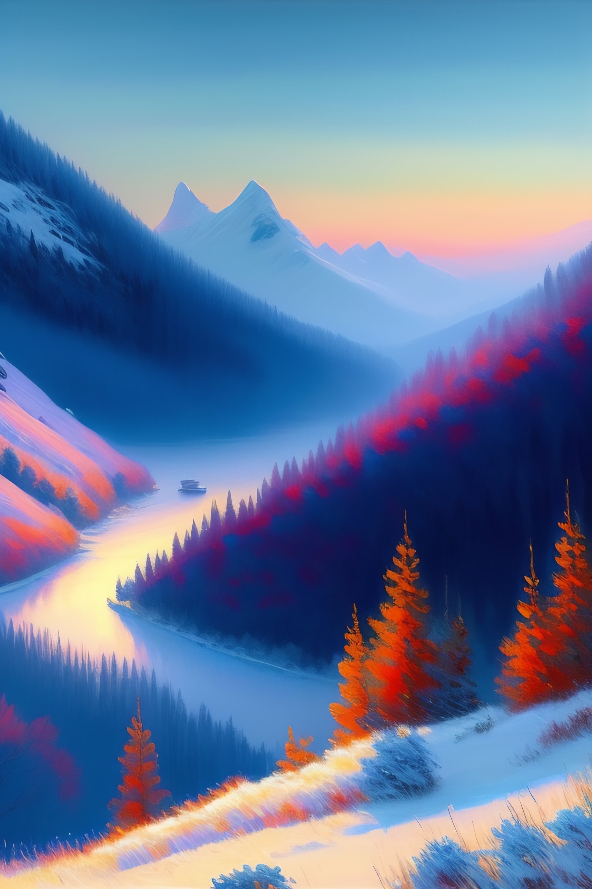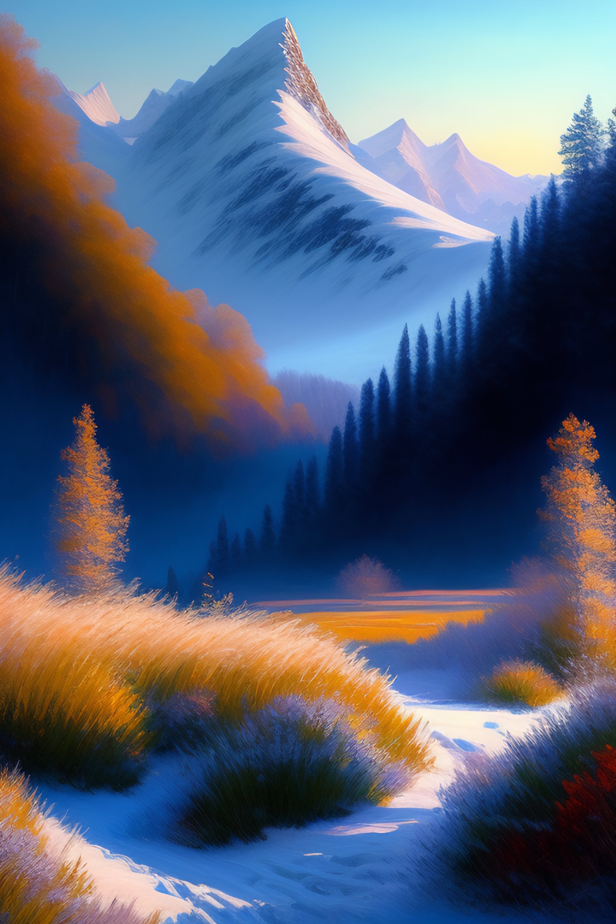 Monet style snowy mountain landscape high detail