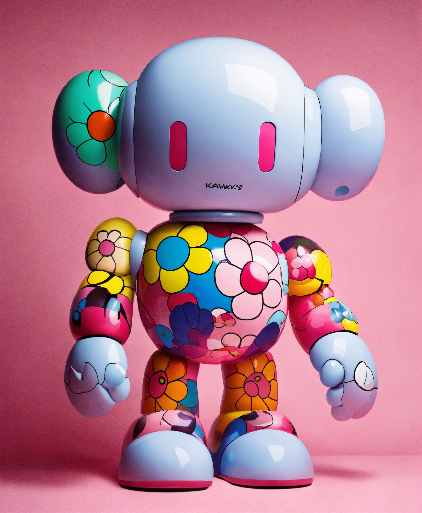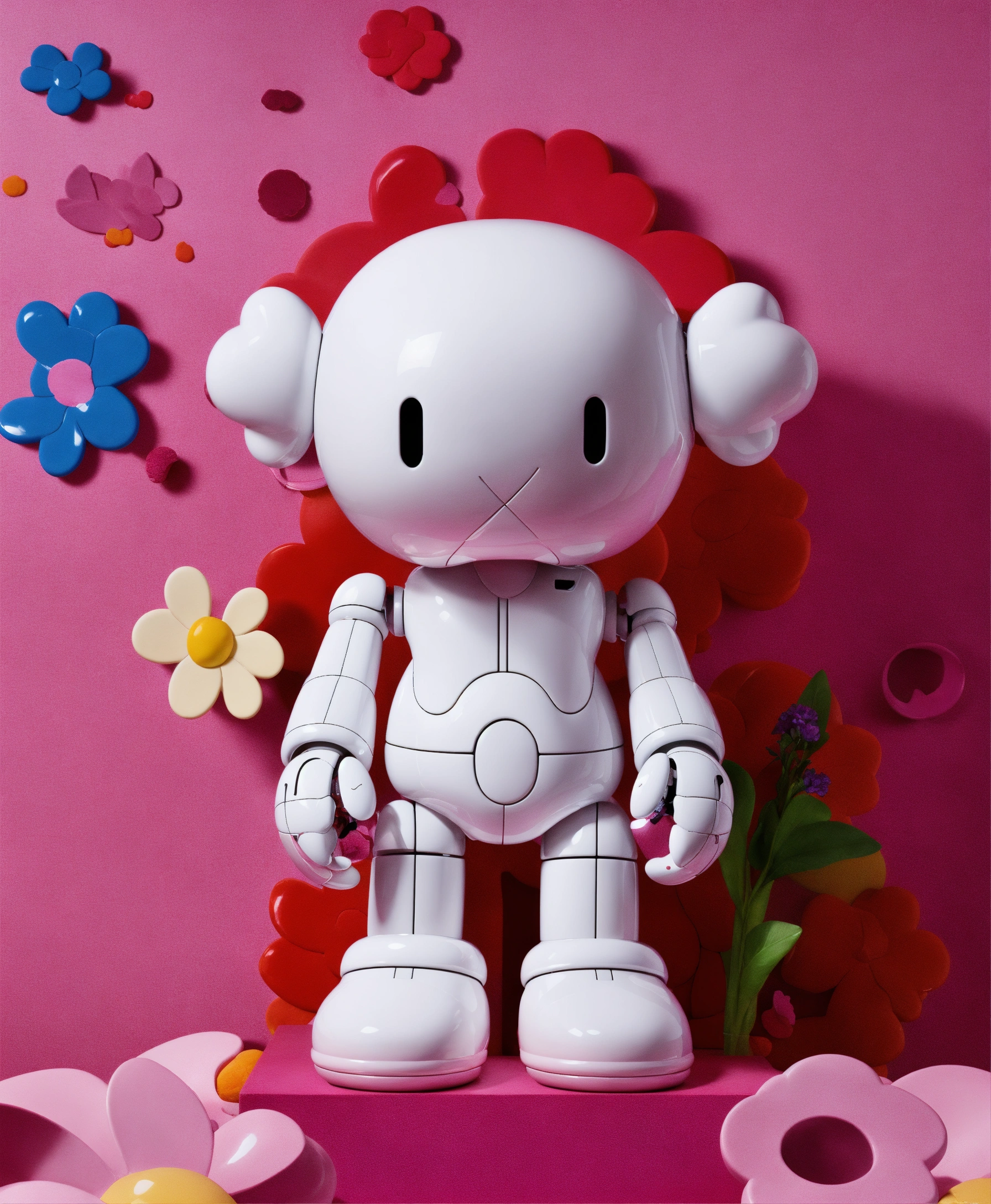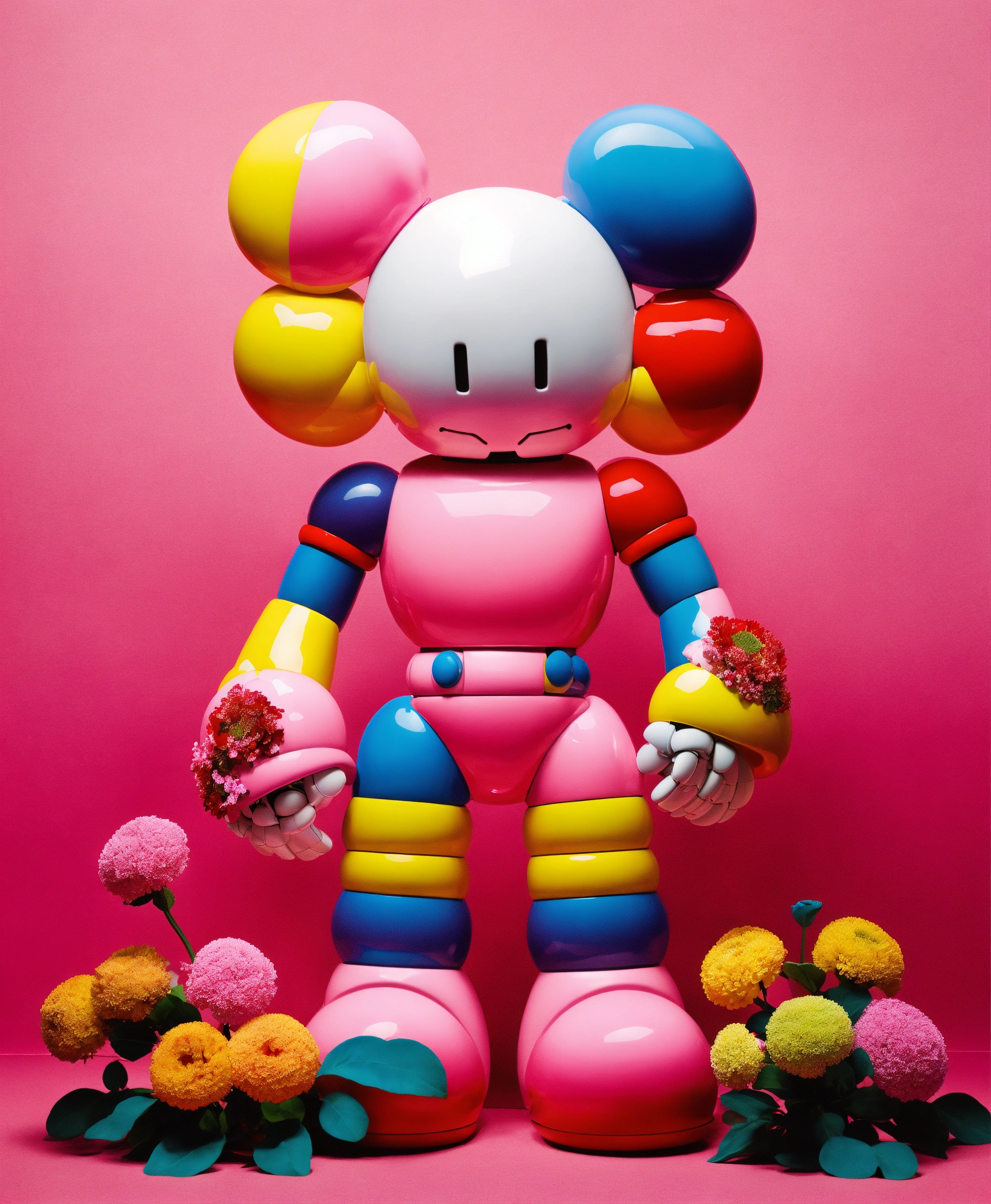Kaws flowers robot jeff koons murakami ceramics pop art pink background